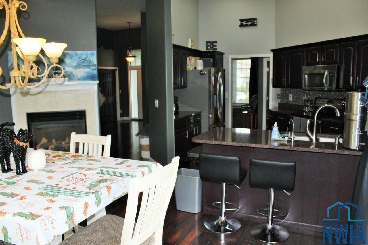 Custom built move in ready 5 bedroom 3 bath home in the meadows with an attached 2 stall garage and great curb appeal. This property is situated on a corner lot close offering plenty of privacy from neighbors and close proximity to walking trails and parks. The open concept main level features a spacious living room with 12ft vaulted ceilings and a see though fireplace into the kitchen. To the left of the main entry is a bonus room that can be used as a seating area or office space that opens to the living room. Kitchen boasts granite counter tops, tile backsplash, and stainless steel appliances. The dining room opens to the kitchen with sliders to the patio and 13ft cathedral ceilings. The master suite has a full bath with a whirlpool tub and a huge 12×5 walk in closet. To complete the main level there are two additional bedrooms, a full bath, and a laundry room with a sink. The fully finished lower level features a spacious family room with plenty of natural light and a back wet bar. Basement amenities also include a game room / workout area, two large bedrooms, and a full bath with dual vanities. The backyard setting is great for entertaining with plenty of privacy, a large paver patio, and a gas fire pit. Recent updates include a brand new roof, new washer / dryer, as well as a new water heater, water softener, and dishwasher. This home is move in ready so Don’t Delay!