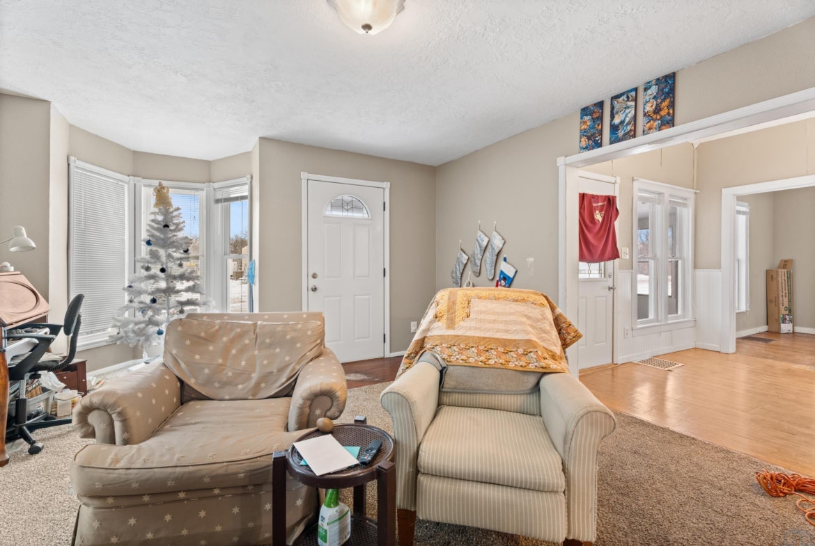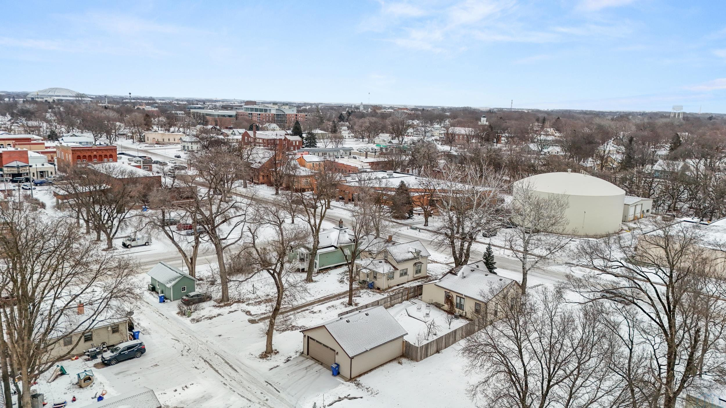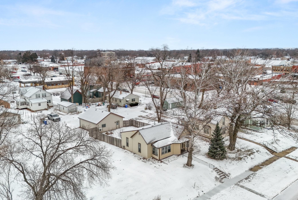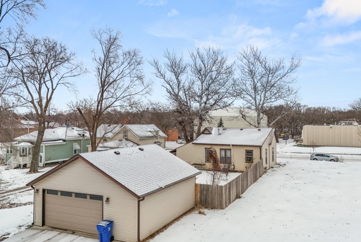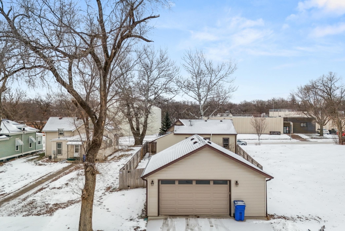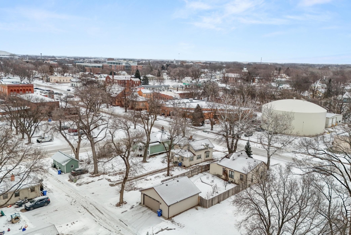 Charming, historic home in the heart of downtown Vermillion! This unique 3-bedroom, 2-bath property is within walking distance to downtown, the public library, and the university. Updates include kitchen, bathrooms, basement, furnace, water heater, newer roof and gutters, heated garage, and fenced yard. The insulated 26′ x 28′ garage is heated and cooled with attic storage and flexible space for a studio, office, or entertaining. Move-in ready!