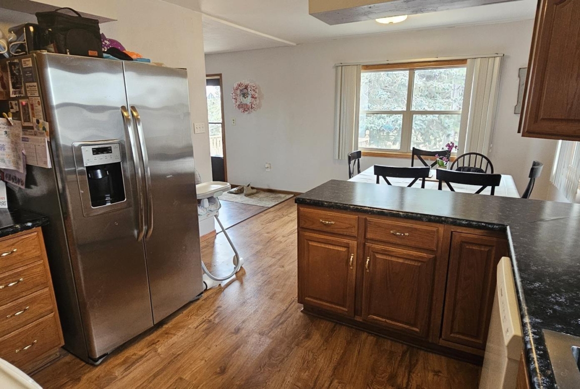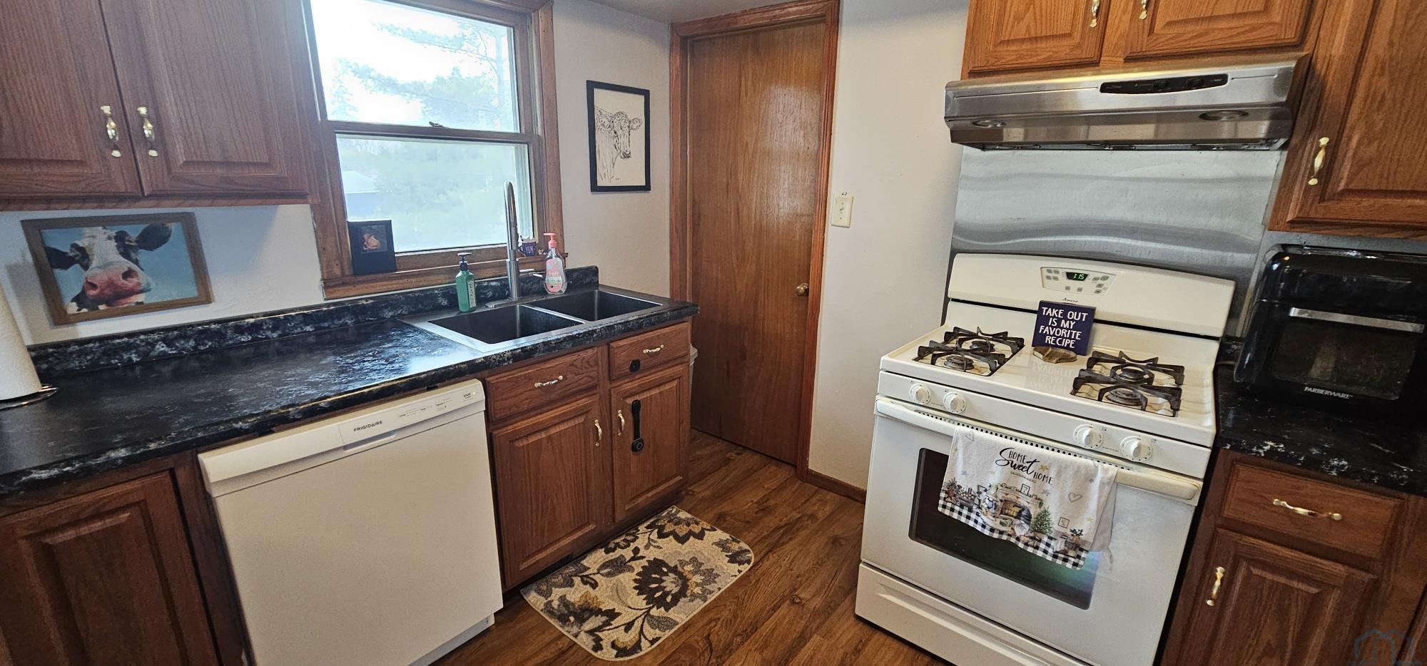 Adorable Lake Cottage with Walkout Basement & Scenic Views This charming lake cottage offers 2 bedrooms and 1 bathroom with a walkout basement featuring a family room and bonus room—perfect for extra living space, guests, 3rd bedroom (NO EGRESS) or a home office. Main floor features roomy living room (NEW flooring 2024) and open concept dining to kitchen. Tuck under garage and extra space workshop room with convenient access to family room. The home has NOT been affected by flooding and is truly move-in ready with tons of NEW! Featuring NEW exterior paint, NEW front door and NEW front windows, NEW interior paint, NEW roof (2024)and NEW flooring. NEW a/c unit (2025), NEW outlets, NEW vents, NEW showerhead (2024), NEW front windows (2024), NEW kitchen light fixtu.res and NEWLY painted deck. NEW exterior door from basement will be installed. Enjoy peaceful mornings and evenings watching wildlife on the lake and exploring the nearby Adams Nature Preserve, all while being within walking distance to Dakota Valley Schools. A rare opportunity to enjoy lake living, nature, and convenience all in one cozy package