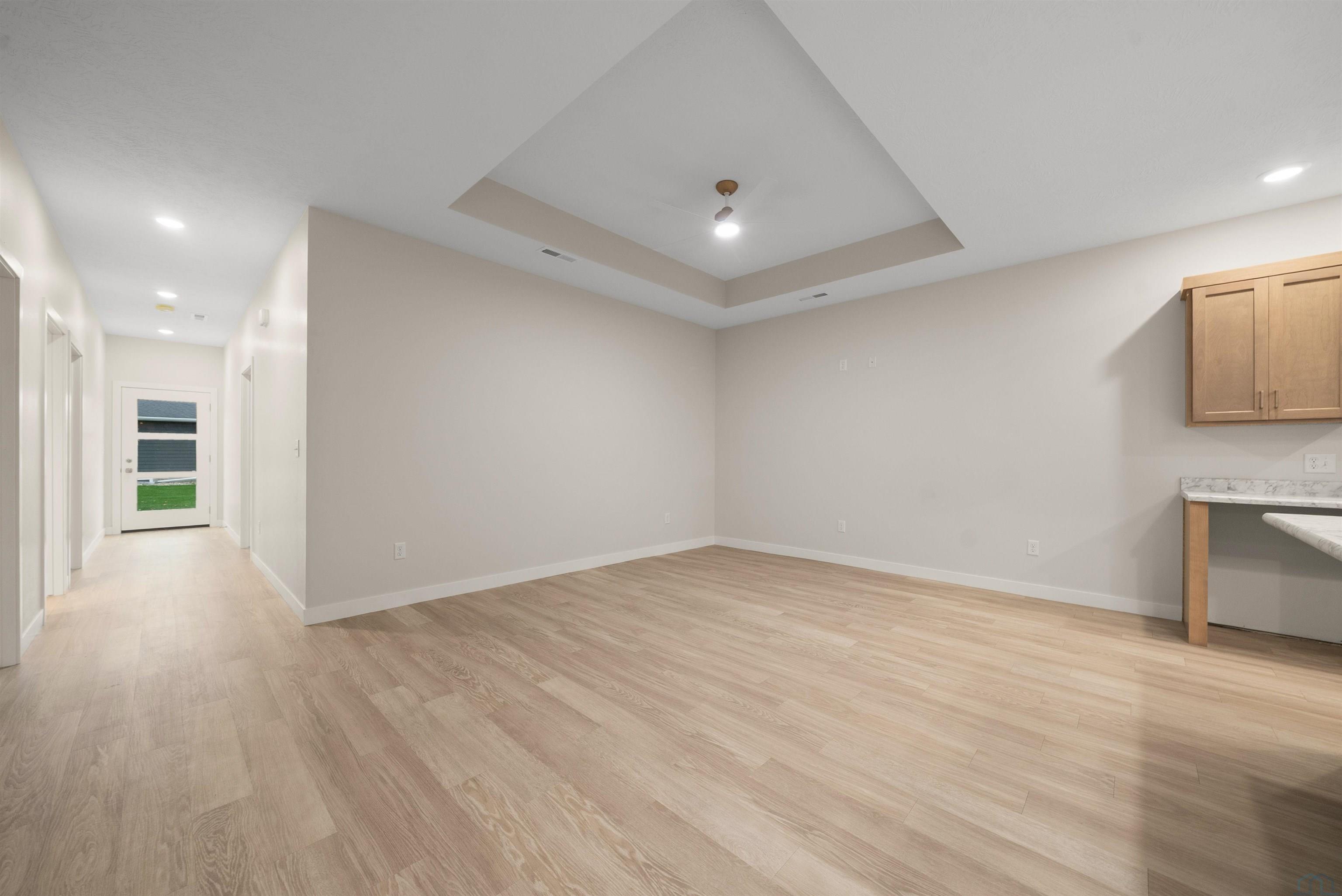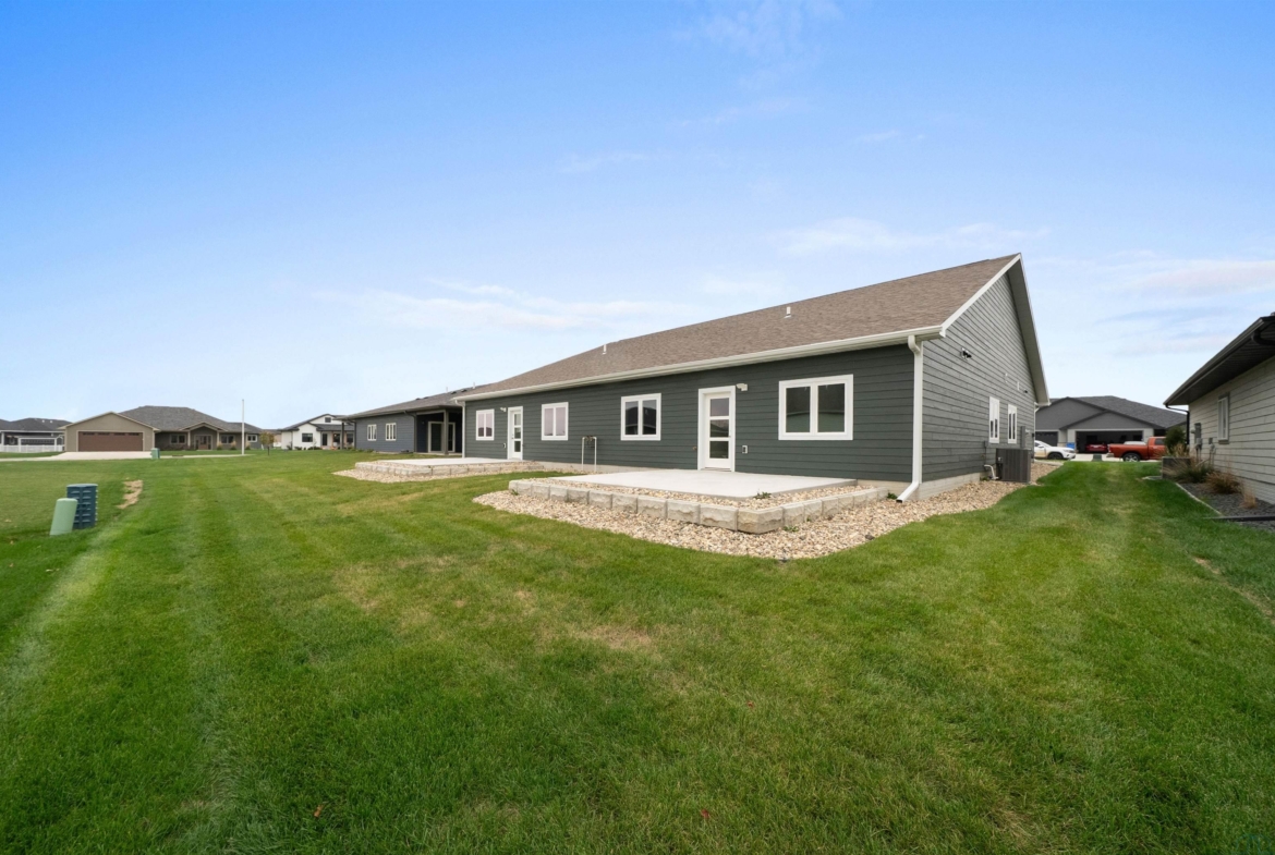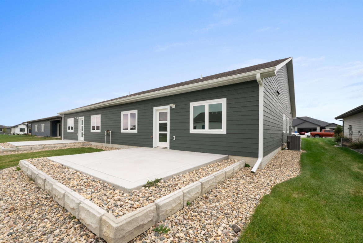 Step into style and comfort with this stunning, brand-new construction twin home, featuring a convenient slab-on-grade design. This home is thoughtfully designed for modern living with an open-concept layout that seamlessly connects the kitchen, dining, and living areas. The kitchen is a chef’s delight, offering abundant cabinetry, a spacious island, and a large pantry cabinet with pull-out drawers—perfect for both everyday meals and entertaining. Throughout the home, you’ll appreciate stylish touches like three-panel doors and a 10-foot tray ceiling in the living room. The main floor laundry room is conveniently located with a pocket door and provides extra storage with additional cabinets and counter space. Your primary suite is a true retreat, boasting a luxurious walk-in onyx shower, double vanities with ample counter space, and a pocket door leading to a spacious walk-in closet. Across the hall, you’ll find two additional bedrooms, both with double closets, and a full bath complete with a linen cabinet. The finished two-stall garage features a modern garage door and a service door for easy access. Outside, enjoy a tasteful patio and a fully landscaped yard with sod and a sprinkler system. This home also includes high-efficiency windows and is prepped for in-floor heating. Located in the beautiful Bliss Pointe development, this quality-built home by AMS Building Systems is a must-see! Interior photos and video are of 1220 side only. Both 1220 and 1222 Zitkala-sa currently available.