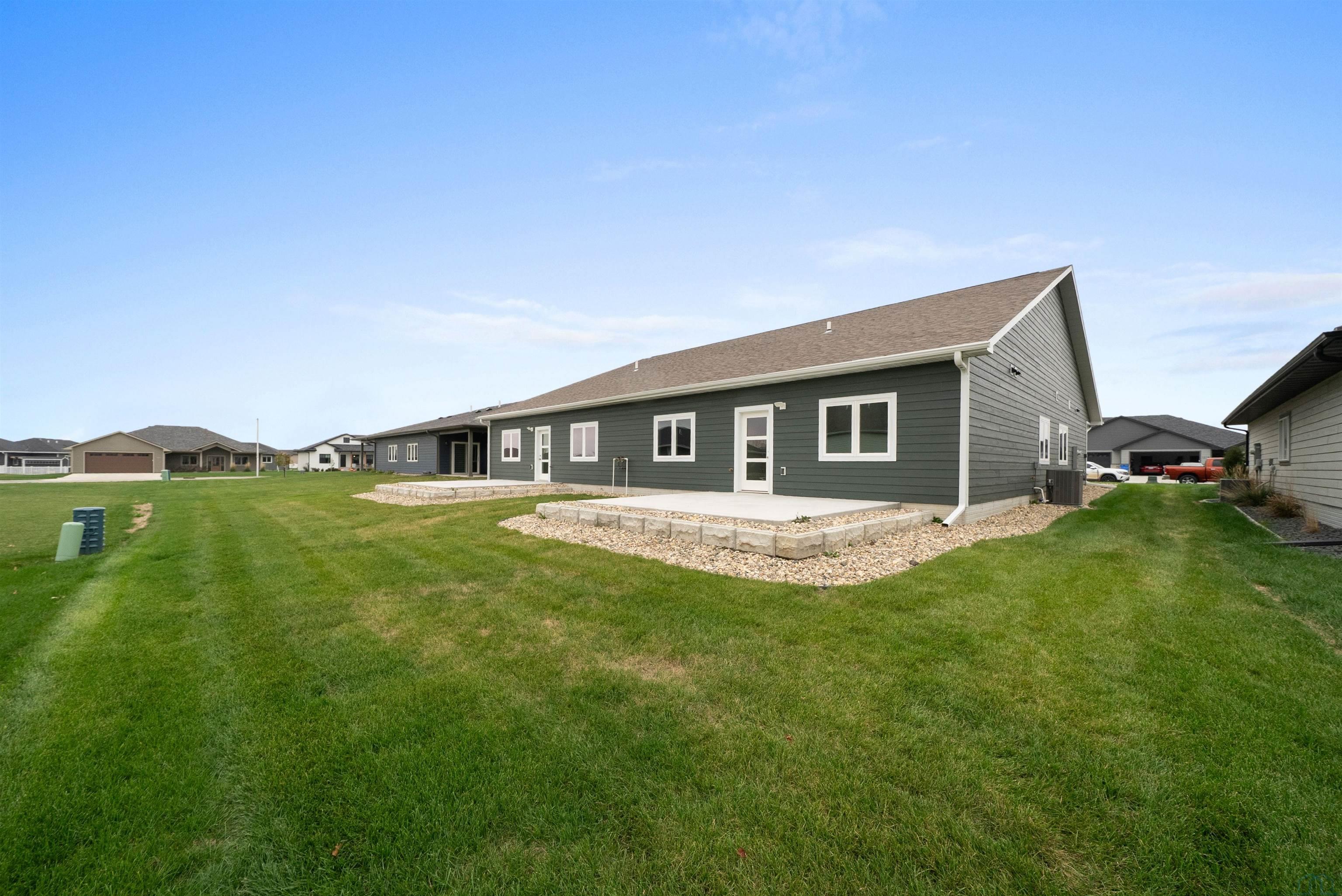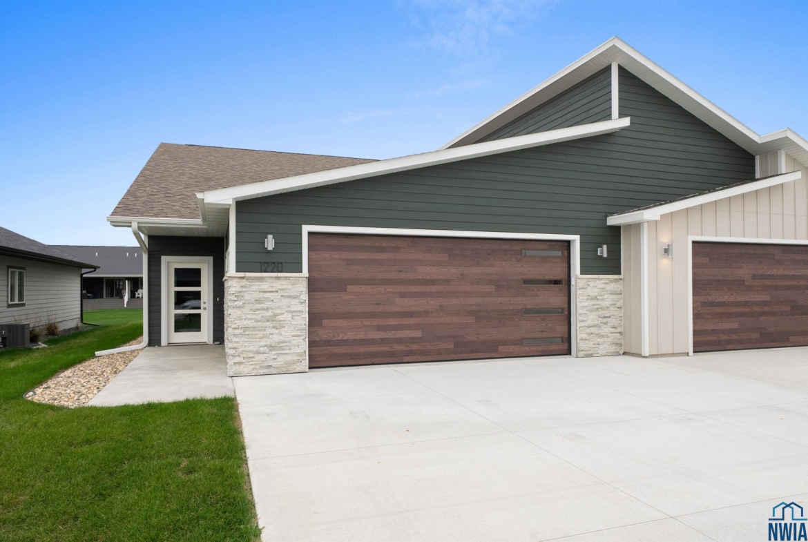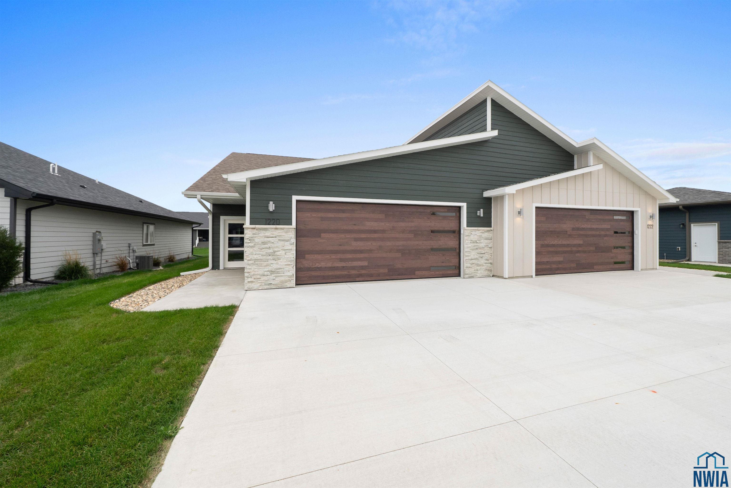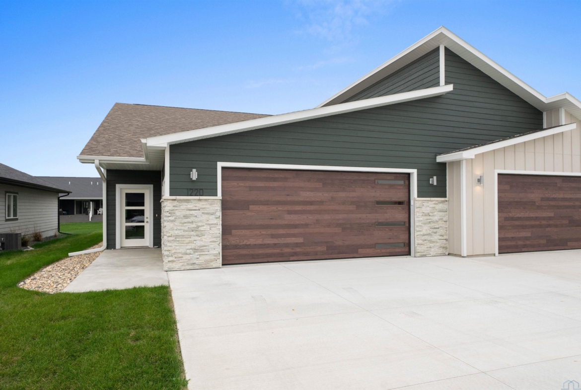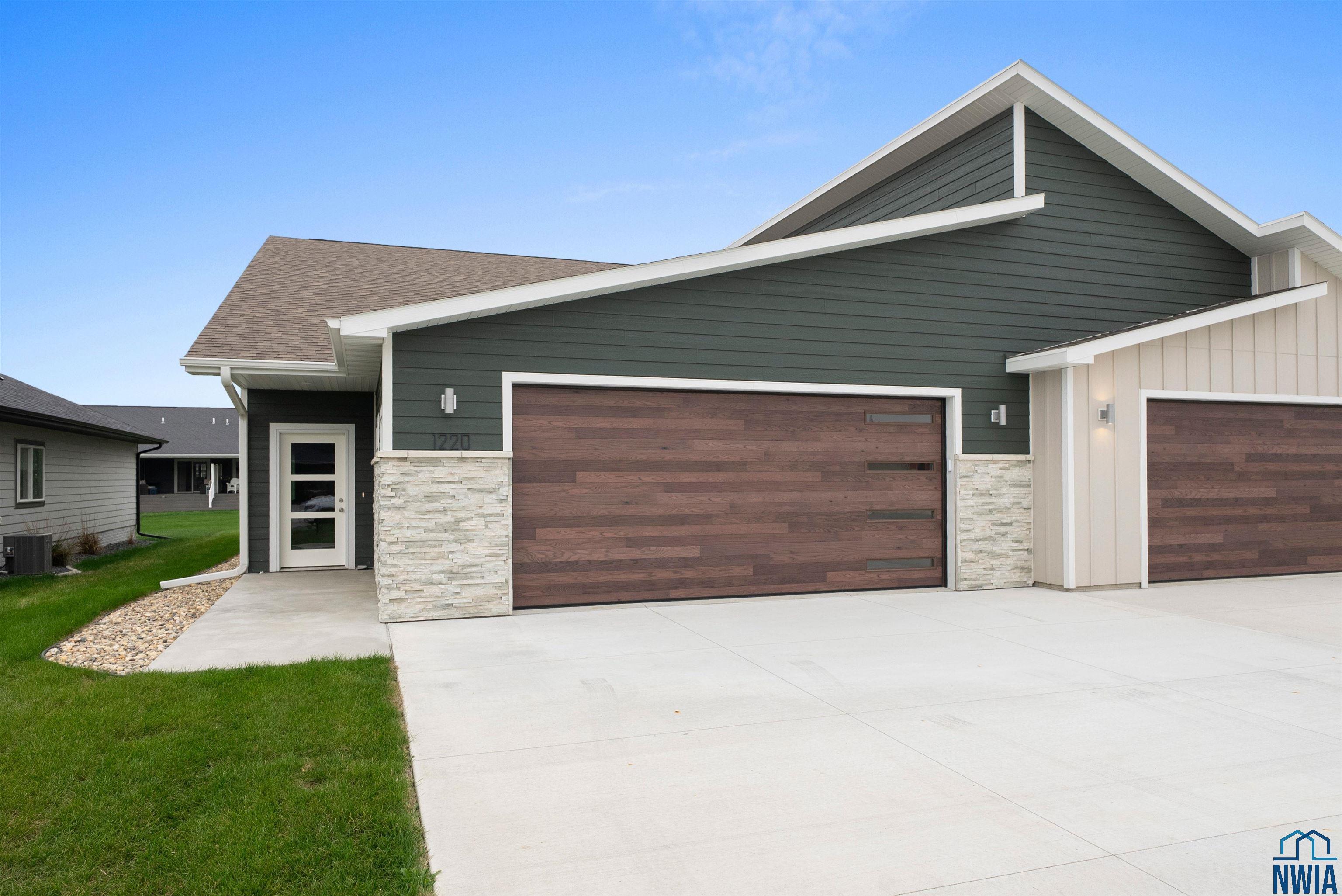 Step into style and comfort with this stunning, brand-new construction twin home, featuring a convenient slab-on-grade design. This home is thoughtfully designed for modern living with an open-concept layout that seamlessly connects the kitchen, dining, and living areas. The kitchen is a chef’s delight, offering abundant cabinetry, a spacious island, and a large pantry cabinet with pull-out drawers—perfect for both everyday meals and entertaining. Throughout the home, you’ll appreciate stylish touches like three-panel doors and a 10-foot tray ceiling in the living room. The main floor laundry room is conveniently located with a pocket door and provides extra storage with additional cabinets and counter space. Your primary suite is a true retreat, boasting a luxurious walk-in onyx shower, double vanities with ample counter space, and a pocket door leading to a spacious walk-in closet. Across the hall, you’ll find two additional bedrooms, both with double closets, and a full bath complete with a linen cabinet. The finished two-stall garage features a modern garage door and a service door for easy access. Outside, enjoy a tasteful patio and a fully landscaped yard with sod and a sprinkler system. This home also includes high-efficiency windows and is prepped for in-floor heating. Located in the beautiful Bliss Pointe development, this quality-built home by AMS Building Systems is a must-see! Interior photos and video are of 1220 side only. Both 1220 and 1222 Zitkala-sa currently available.