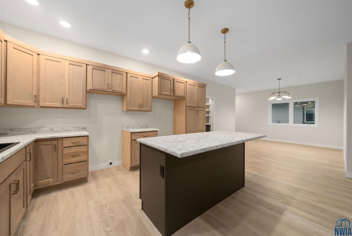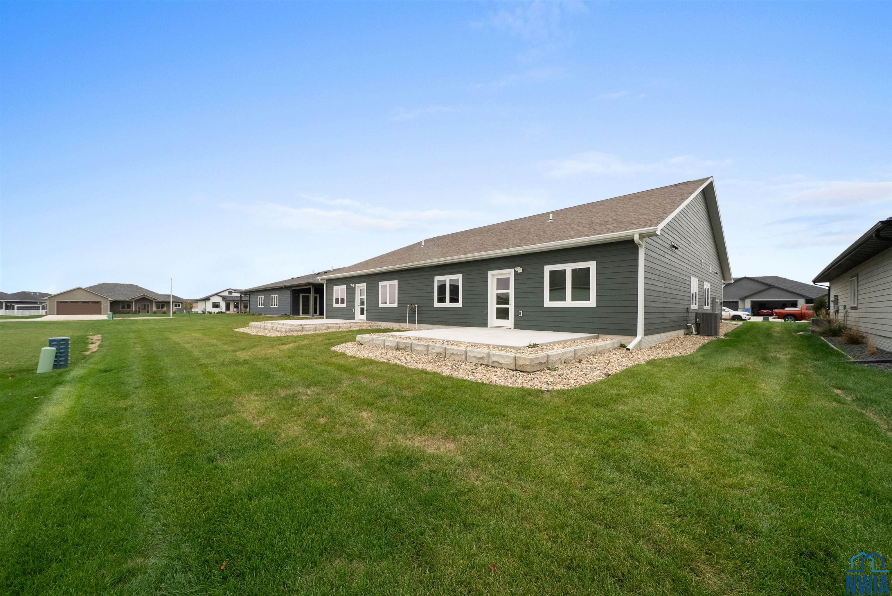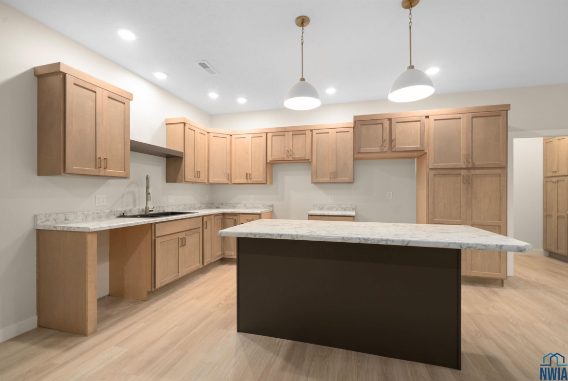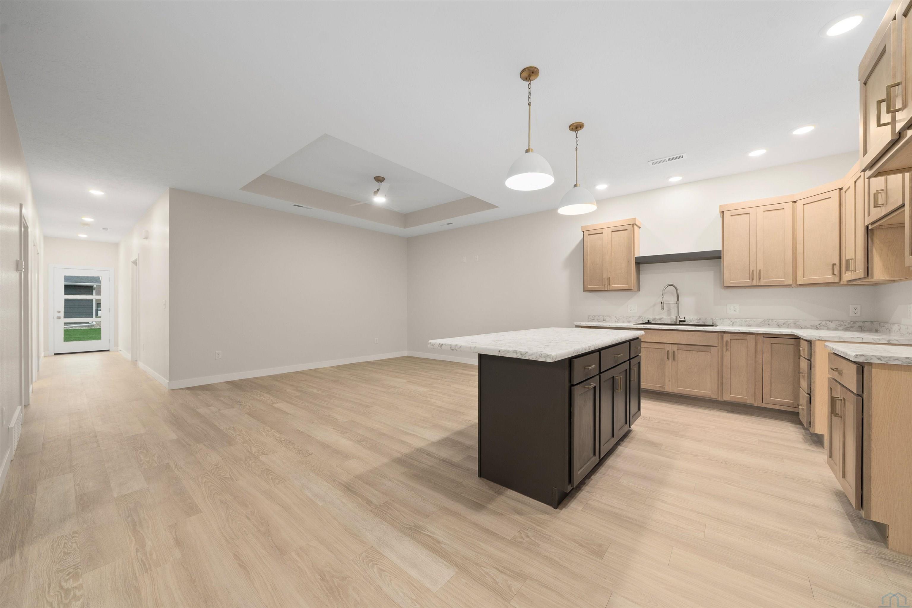 Step into style and comfort with this stunning, brand-new construction twin home, featuring a convenient slab-on-grade design. This home is thoughtfully designed for modern living with an open-concept layout that seamlessly connects the kitchen, dining, and living areas. The kitchen is a chef’s delight, offering abundant cabinetry, a spacious island, and a large pantry cabinet with pull-out drawers—perfect for both everyday meals and entertaining. Throughout the home, you’ll appreciate stylish touches like three-panel doors and a 10-foot tray ceiling in the living room. The main floor laundry room is conveniently located with a pocket door and provides extra storage with additional cabinets and counter space. Your primary suite is a true retreat, boasting a luxurious walk-in onyx shower, double vanities with ample counter space, and a pocket door leading to a spacious walk-in closet. Across the hall, you’ll find two additional bedrooms, both with double closets, and a full bath complete with a linen cabinet. The finished two-stall garage features a modern garage door and a service door for easy access. Outside, enjoy a tasteful patio and a fully landscaped yard with sod and a sprinkler system. This home also includes high-efficiency windows and is prepped for in-floor heating. Located in the beautiful Bliss Pointe development, this quality-built home by AMS Building Systems is a must-see! Interior photos and video are of 1220 side only. Both 1220 and 1222 Zitkala-sa currently available.