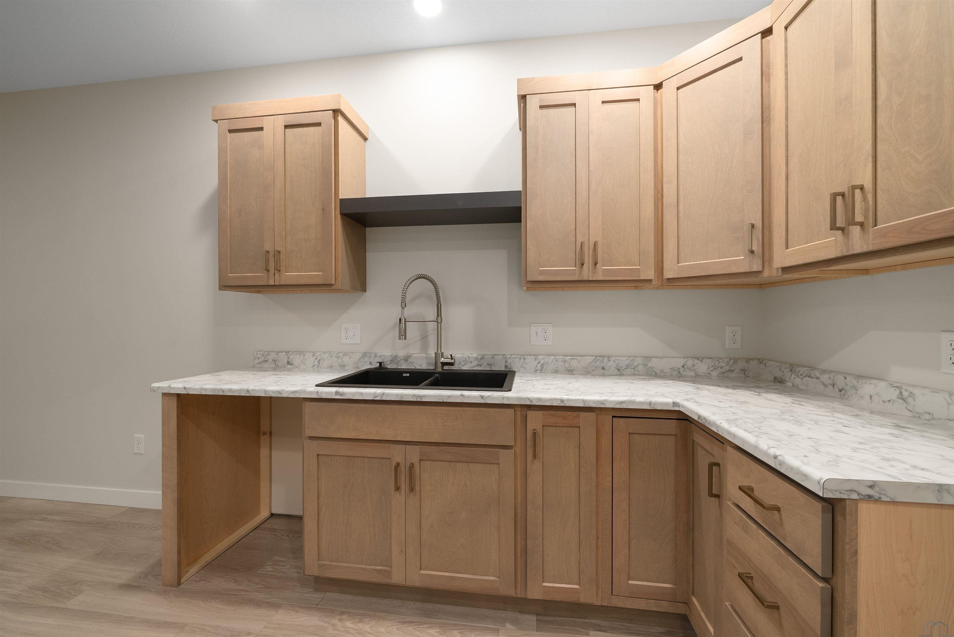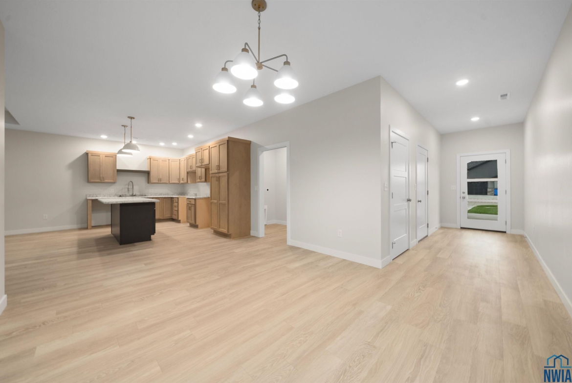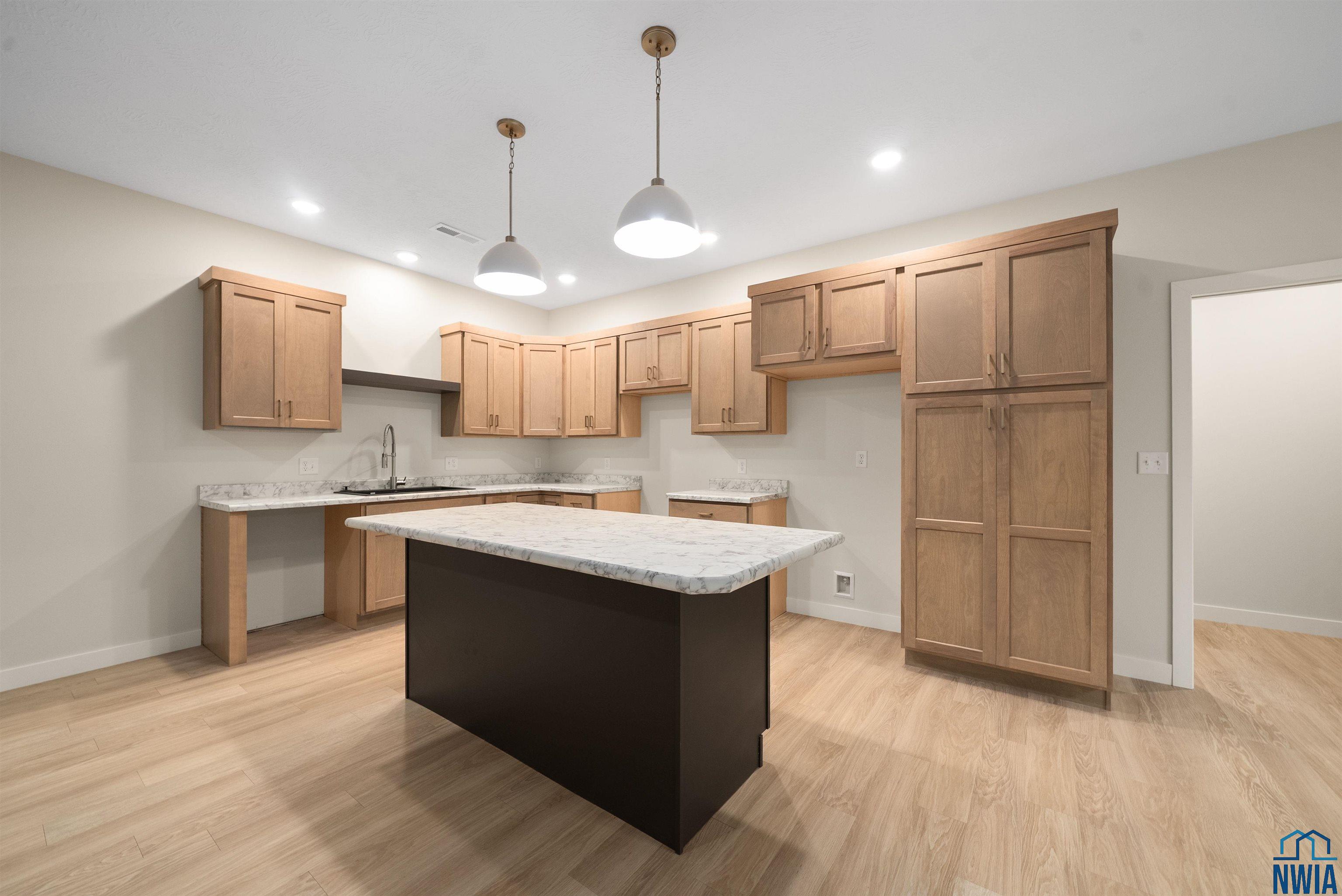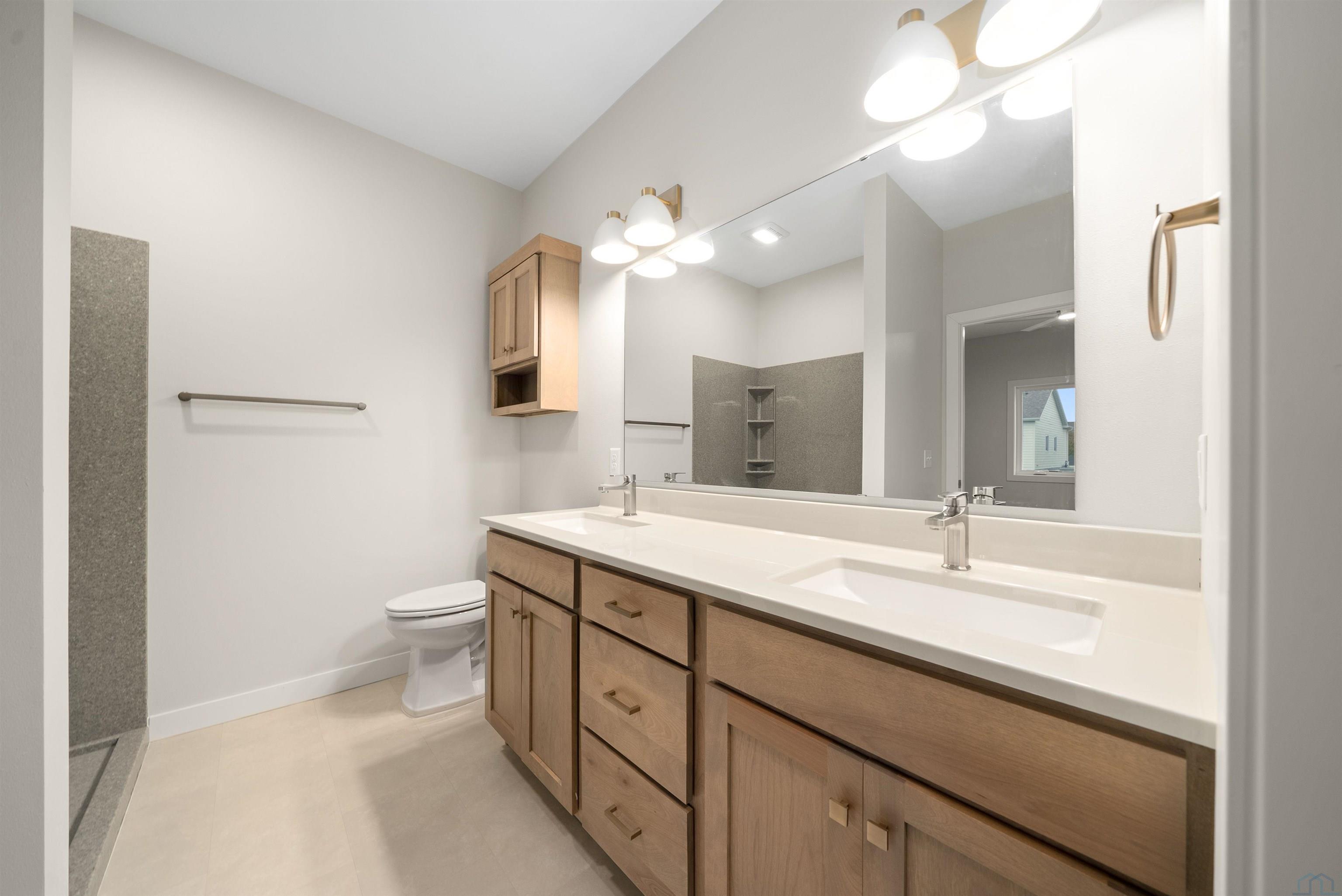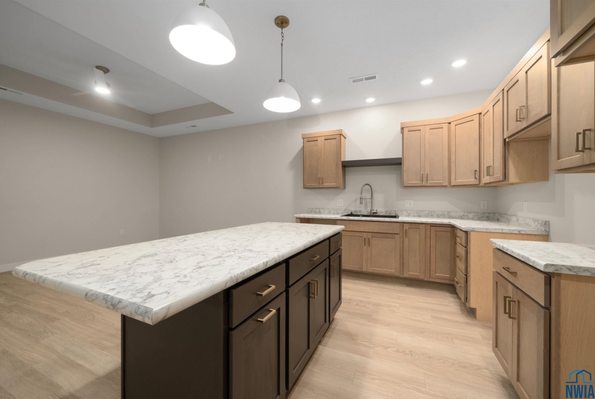 Step into style and comfort with this stunning, brand-new construction twin home, featuring a convenient slab-on-grade design. This home is thoughtfully designed for modern living with an open-concept layout that seamlessly connects the kitchen, dining, and living areas. The kitchen is a chef’s delight, offering abundant cabinetry, a spacious island, and a large pantry cabinet with pull-out drawers—perfect for both everyday meals and entertaining. Throughout the home, you’ll appreciate stylish touches like three-panel doors and a 10-foot tray ceiling in the living room. The main floor laundry room is conveniently located with a pocket door and provides extra storage with additional cabinets and counter space. Your primary suite is a true retreat, boasting a luxurious walk-in onyx shower, double vanities with ample counter space, and a pocket door leading to a spacious walk-in closet. Across the hall, you’ll find two additional bedrooms, both with double closets, and a full bath complete with a linen cabinet. The finished two-stall garage features a modern garage door and a service door for easy access. Outside, enjoy a tasteful patio and a fully landscaped yard with sod and a sprinkler system. This home also includes high-efficiency windows and is prepped for in-floor heating. Located in the beautiful Bliss Pointe development, this quality-built home by AMS Building Systems is a must-see! Interior photos and video are of 1220 side only. Both 1220 and 1222 Zitkala-sa currently available.