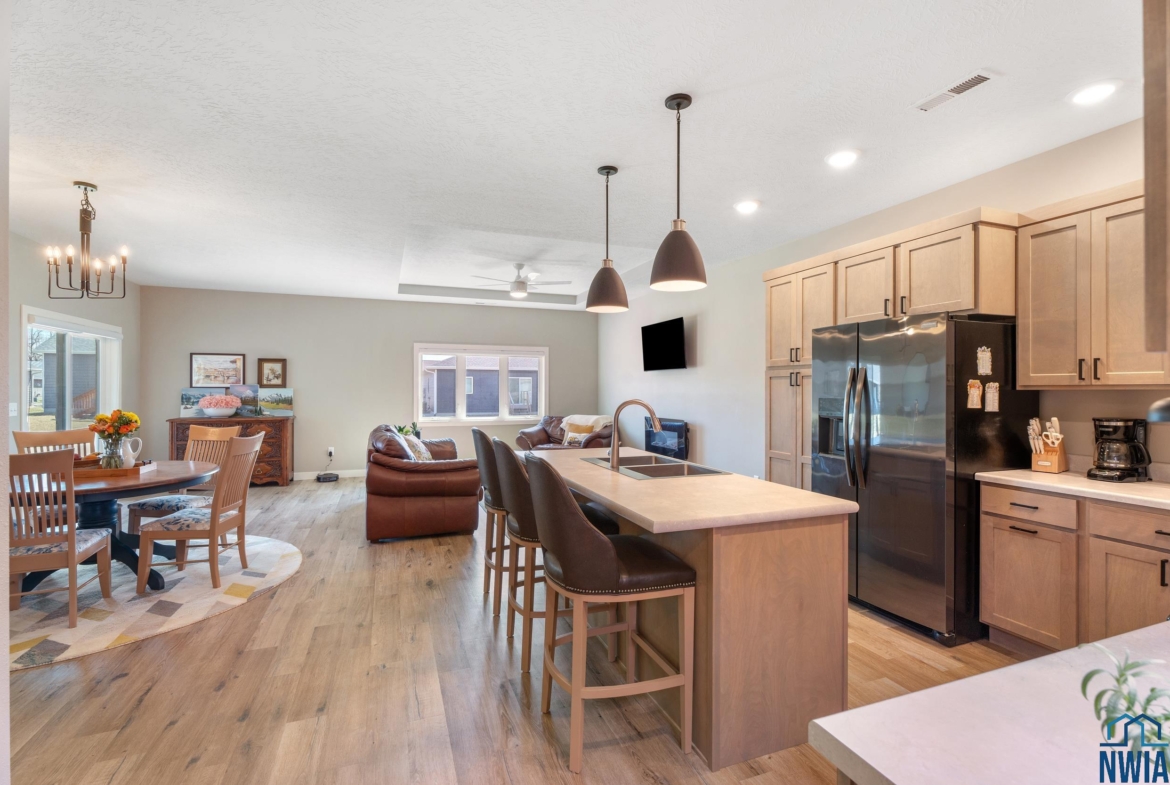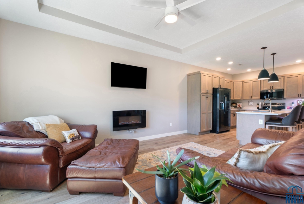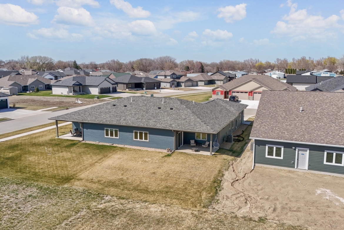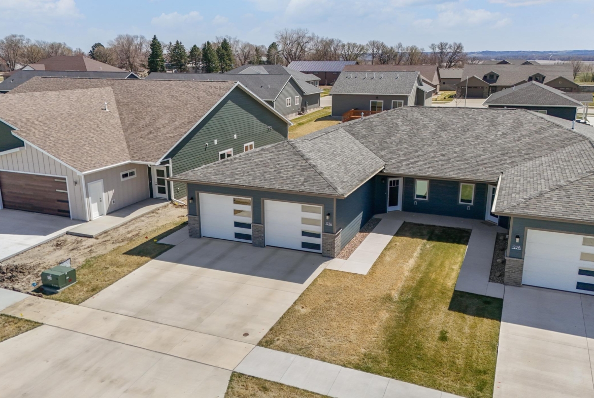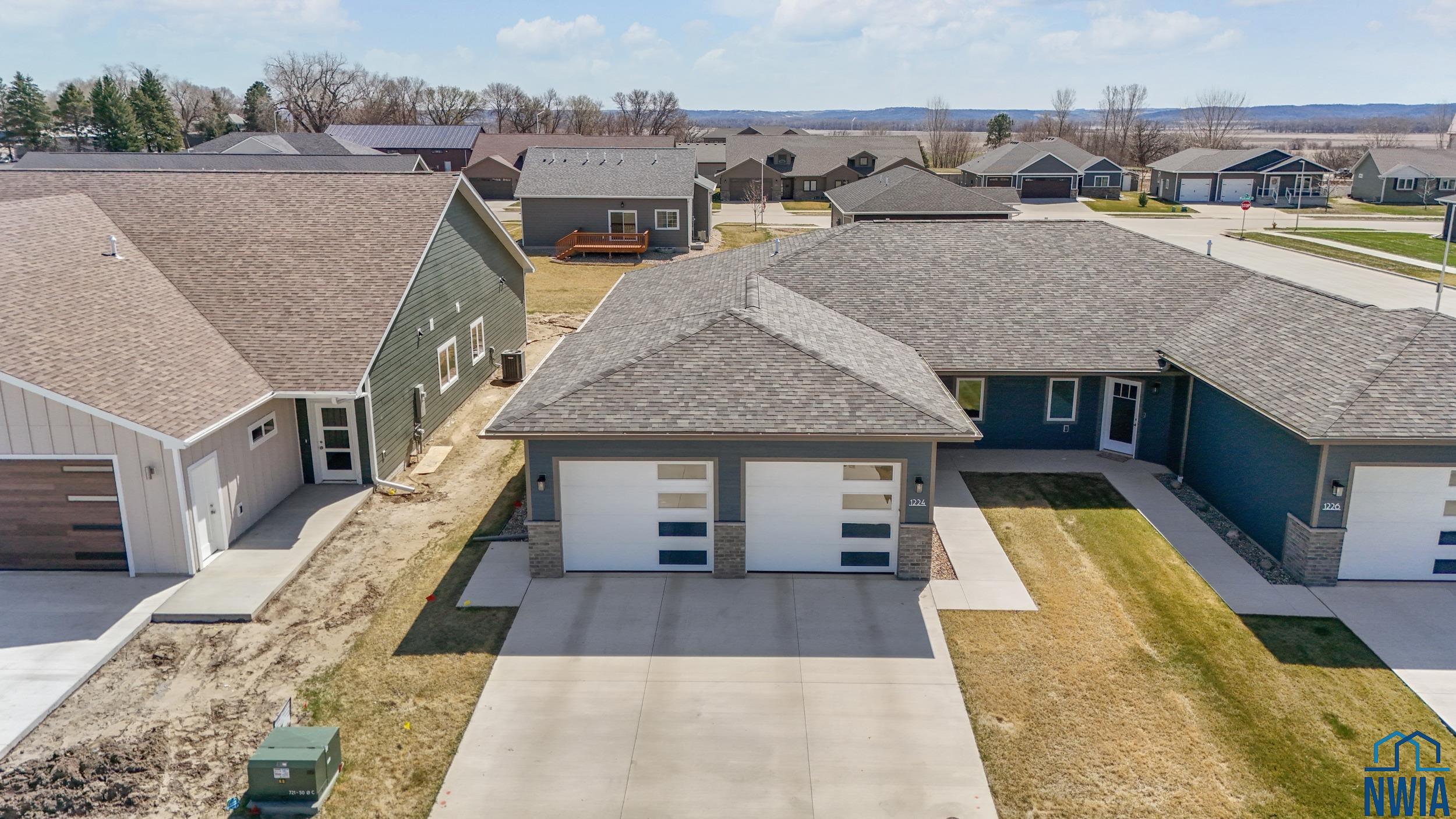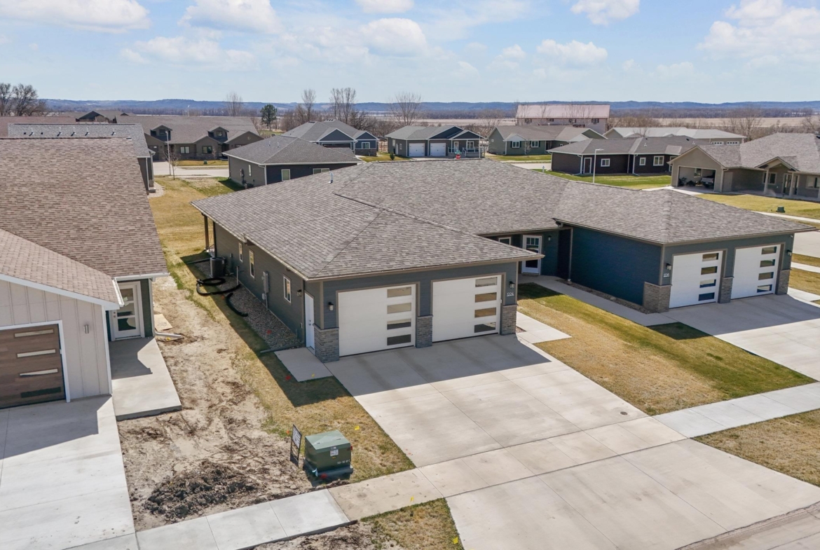 PRICE DROP!! Welcome to your new easy-living home at Bliss Pointe! This lovely 3-bedroom, 2-bath twin home is ready for you—no steps, no stress. Designed with comfort in mind, this zero-entry home lets you move through your space with ease. The large primary bedroom has a roomy walk-in closet and its own private bathroom, complete with a walk-in onyx shower—perfect for relaxing after a long day. The open living space brings everyone together. You’ll love the kitchen’s big island and rich stained cabinets, ideal for cooking or enjoying a quiet cup of coffee. The living room features a tray ceiling that adds a touch of charm, and there’s a cozy dining area right nearby. Step out from the living room to the covered back patio and take in the peaceful view—your own private spot to unwind. Laundry is easy too, with a handy area just off the finished 2-stall garage. The home stays comfortable all year with a forced air furnace and central air, and it’s ready for in-floor heating—just add a boiler when you’re ready. Outside, the yard is already finished with sod and a full sprinkler system to keep things looking great without the work. Built in 2023 by AMS Building Systems, this home is made for simple, peaceful living. Move in and start enjoying your next chapter today!