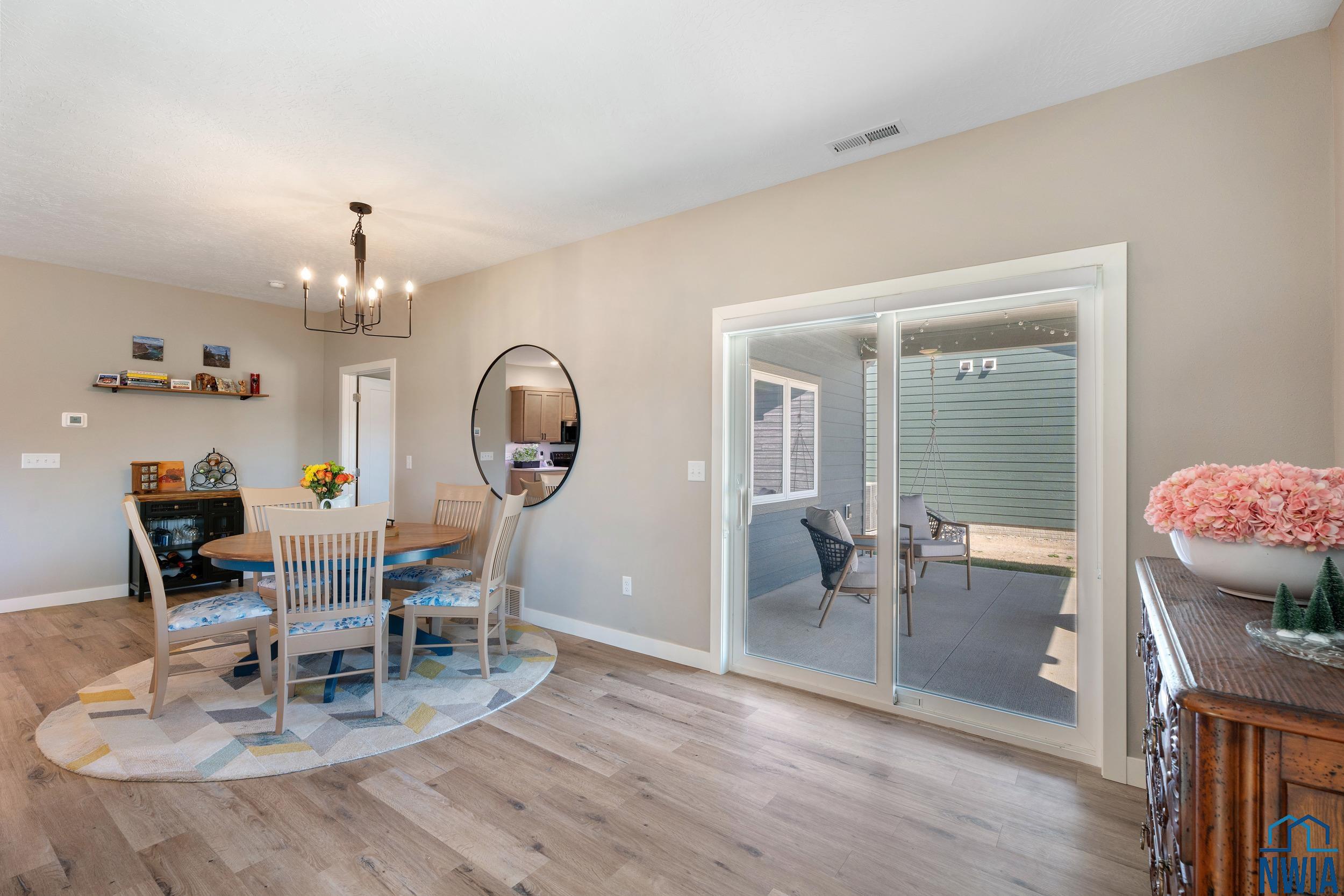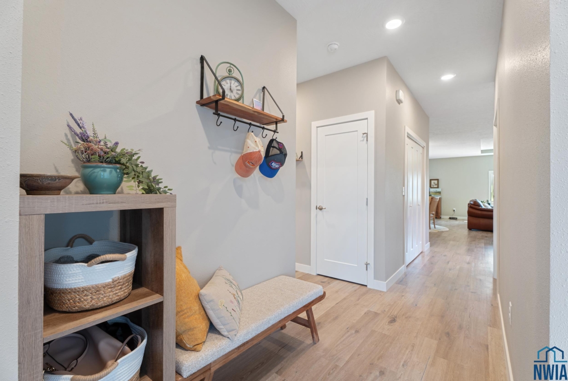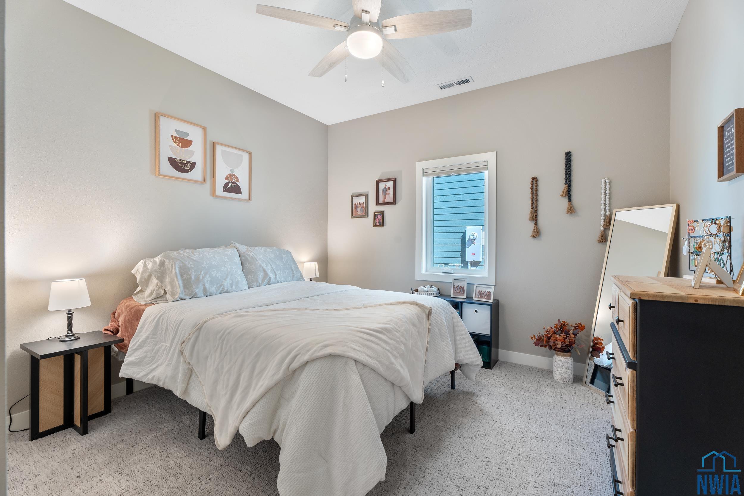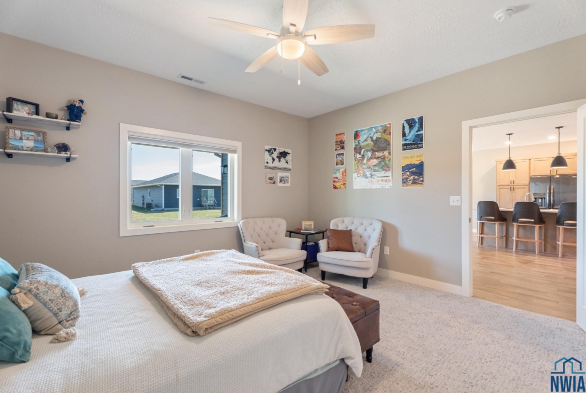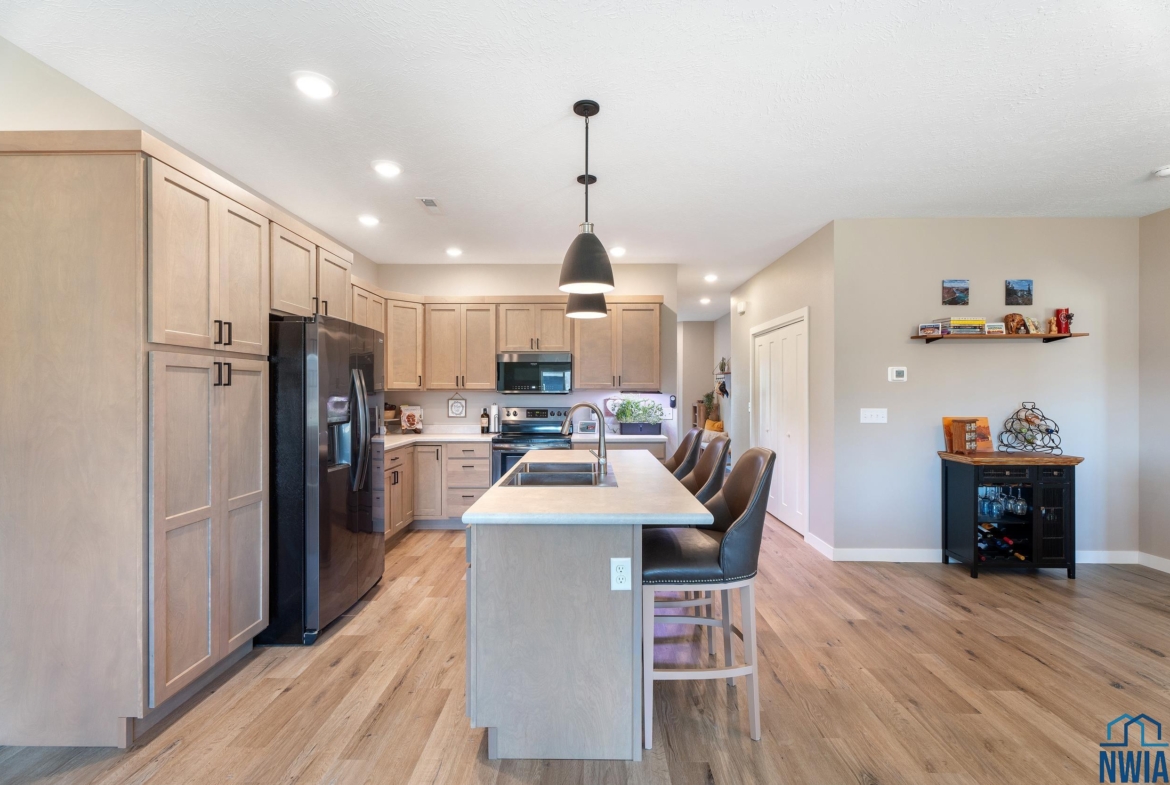 PRICE DROP!! Welcome to your new easy-living home at Bliss Pointe! This lovely 3-bedroom, 2-bath twin home is ready for you—no steps, no stress. Designed with comfort in mind, this zero-entry home lets you move through your space with ease. The large primary bedroom has a roomy walk-in closet and its own private bathroom, complete with a walk-in onyx shower—perfect for relaxing after a long day. The open living space brings everyone together. You’ll love the kitchen’s big island and rich stained cabinets, ideal for cooking or enjoying a quiet cup of coffee. The living room features a tray ceiling that adds a touch of charm, and there’s a cozy dining area right nearby. Step out from the living room to the covered back patio and take in the peaceful view—your own private spot to unwind. Laundry is easy too, with a handy area just off the finished 2-stall garage. The home stays comfortable all year with a forced air furnace and central air, and it’s ready for in-floor heating—just add a boiler when you’re ready. Outside, the yard is already finished with sod and a full sprinkler system to keep things looking great without the work. Built in 2023 by AMS Building Systems, this home is made for simple, peaceful living. Move in and start enjoying your next chapter today!