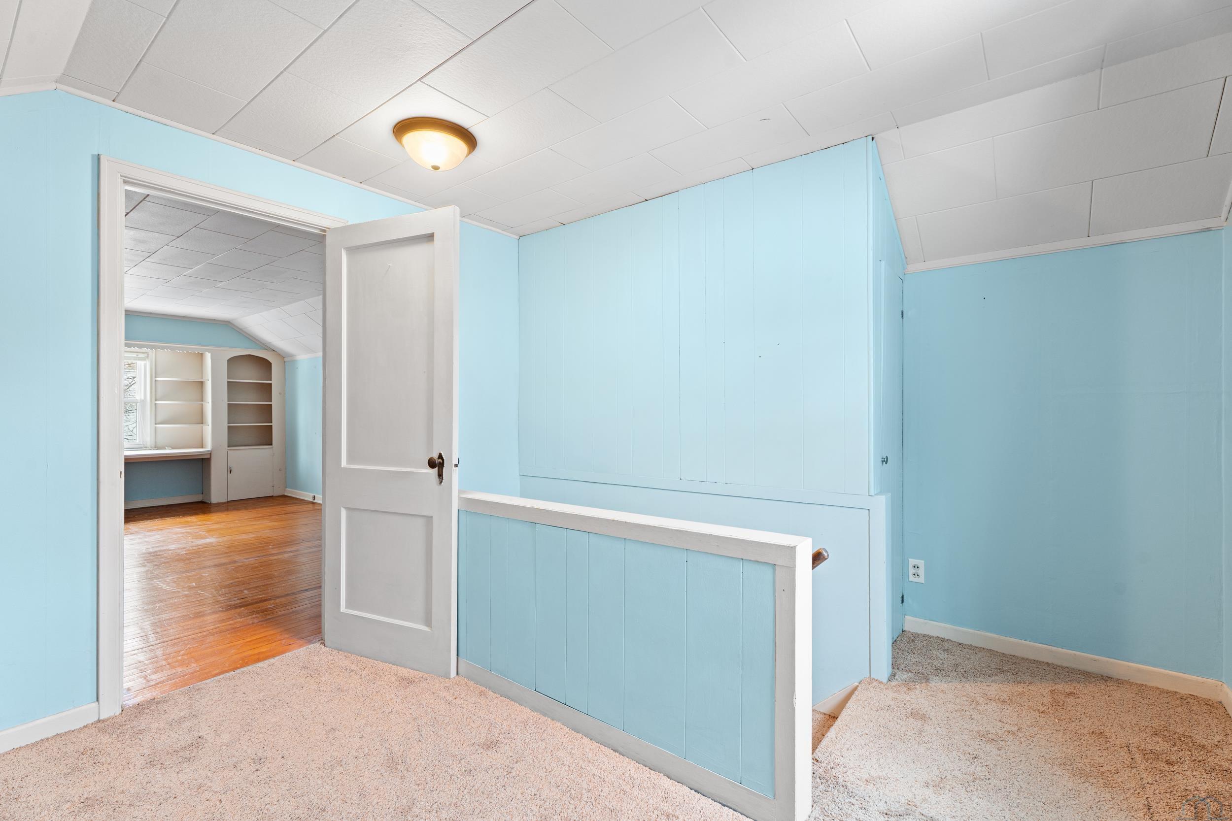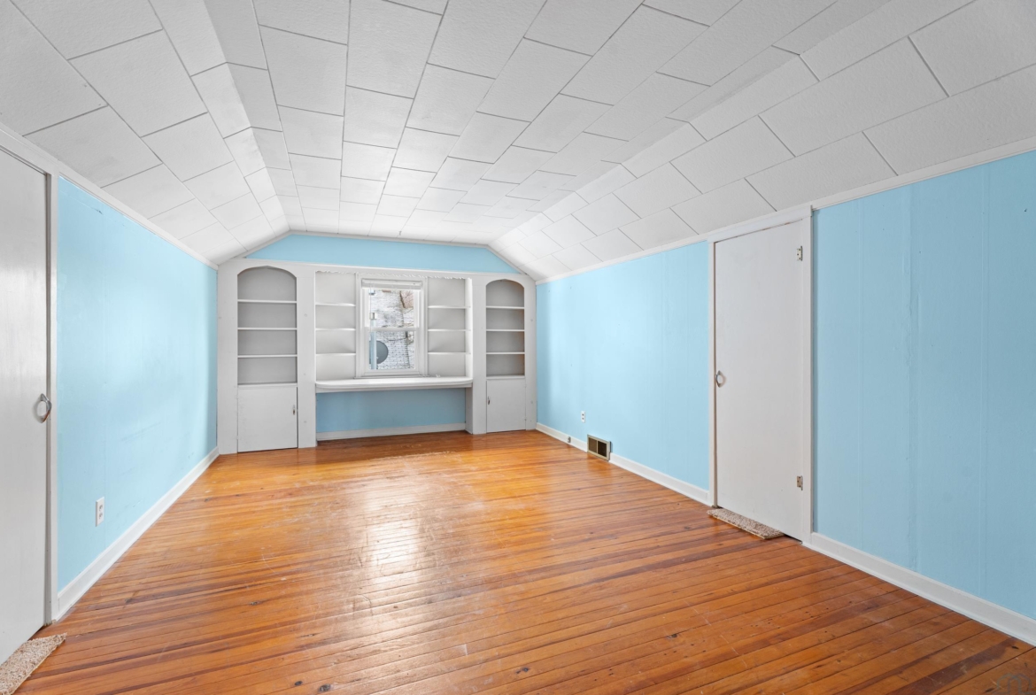 | Bedroom | Second | 18 x 11 | Built-in shelving, outer room by stairs, attic space closets |