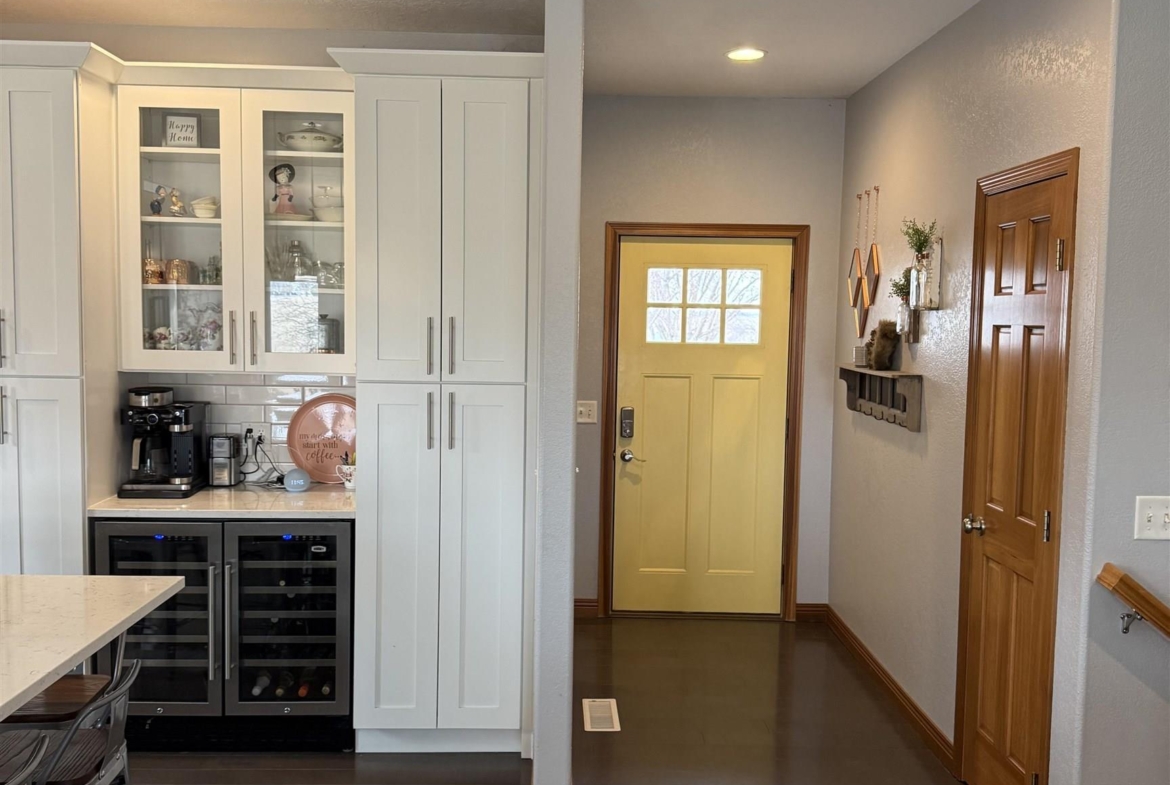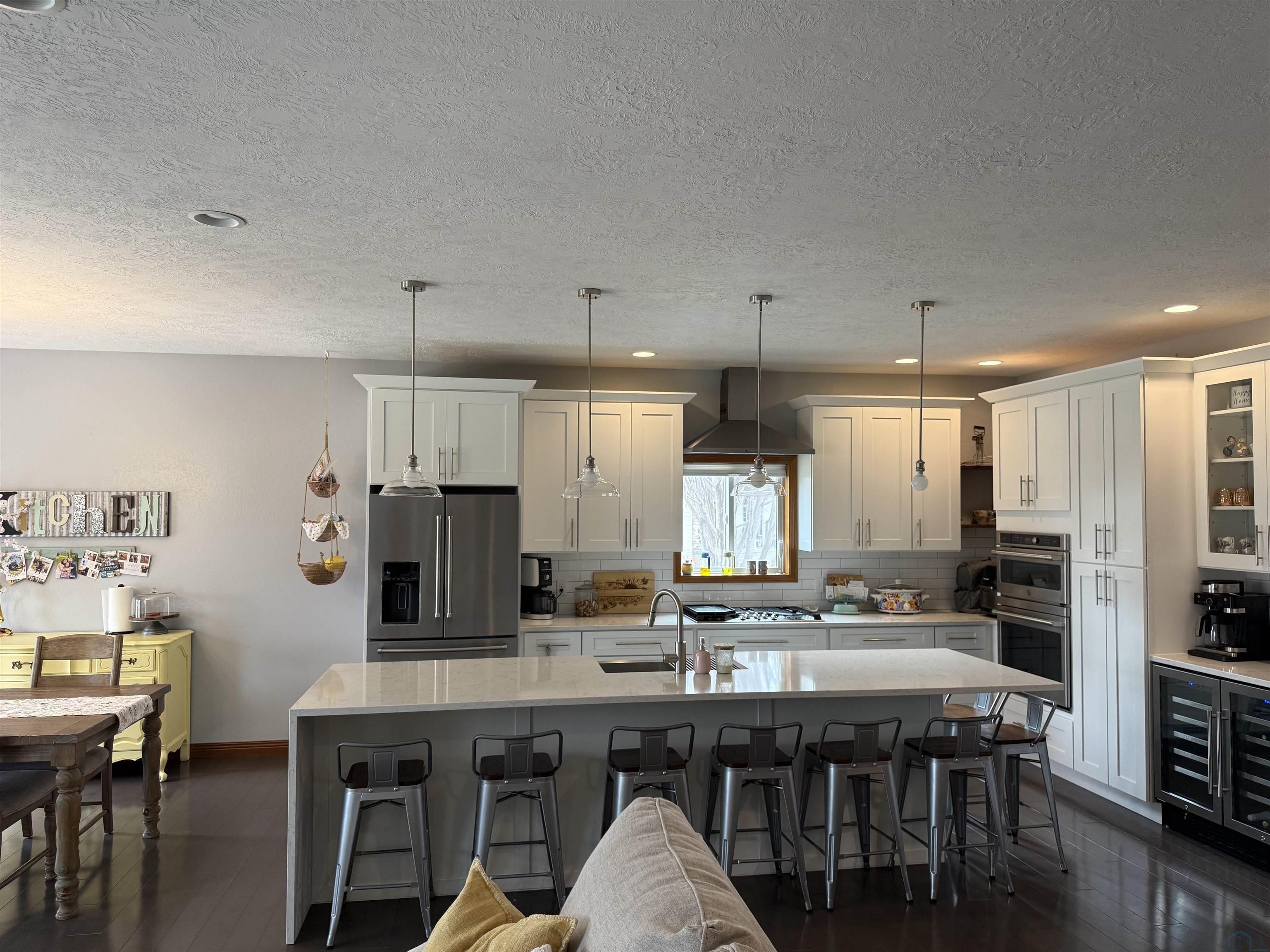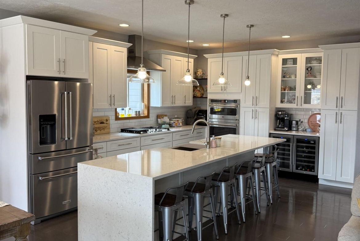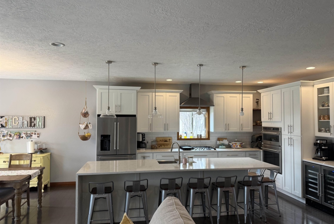 What a beautiful custom-built home that is fenced in and located on just over an acre in a cul-de-sac! You will love the updated kitchen, featuring a gas cooktop, beverage fridge, extended island all open to the dining room and living room. On the main floor is where the primary bedroom suite, two additional bedrooms, a full bathroom and laundry room are located. The lower level offers a large family room, 2 bedrooms and a 3/4 bathroom. If you enjoy the outdoors, look no further! There is a finished heated, 2 stall attached and 2 stall detached garage; fruit trees, garden area and all of which is completely fenced in. Relax outside on the oversized patio surrounded by mature trees for additional privacy.