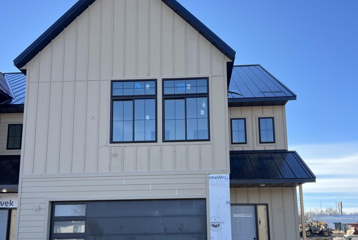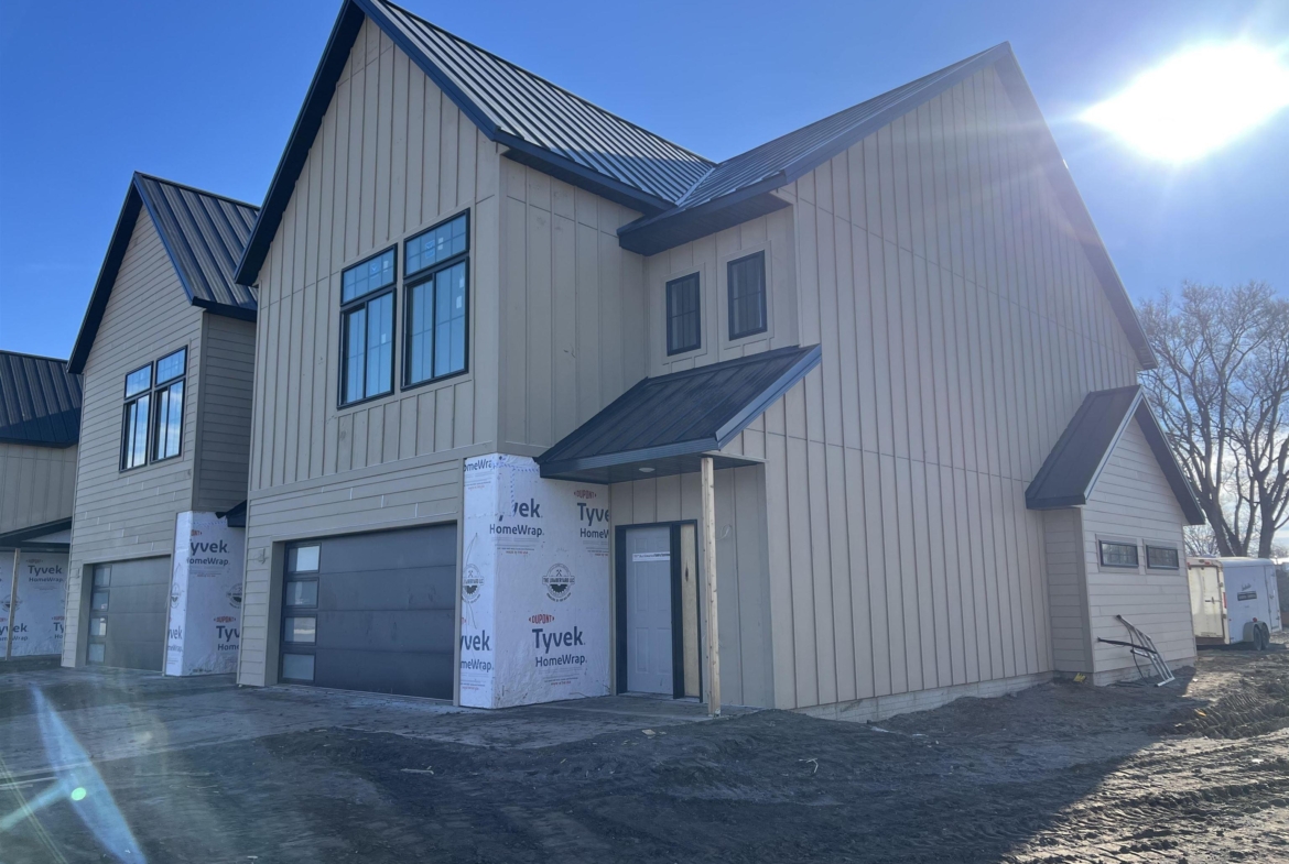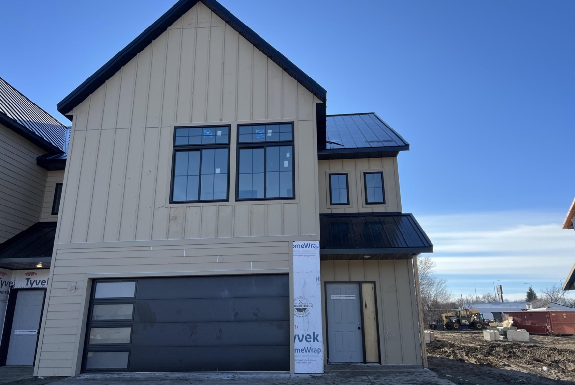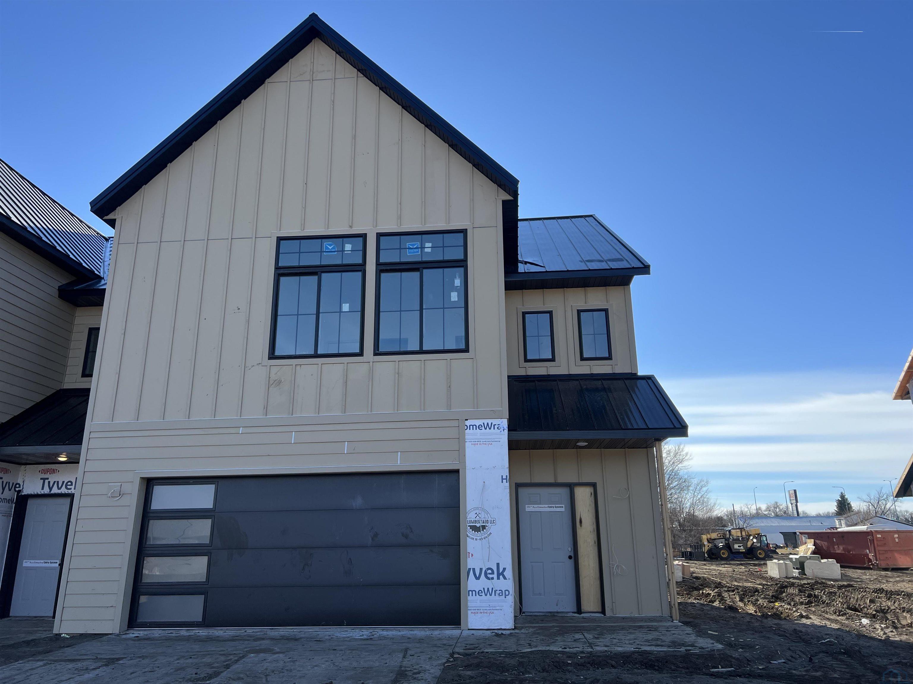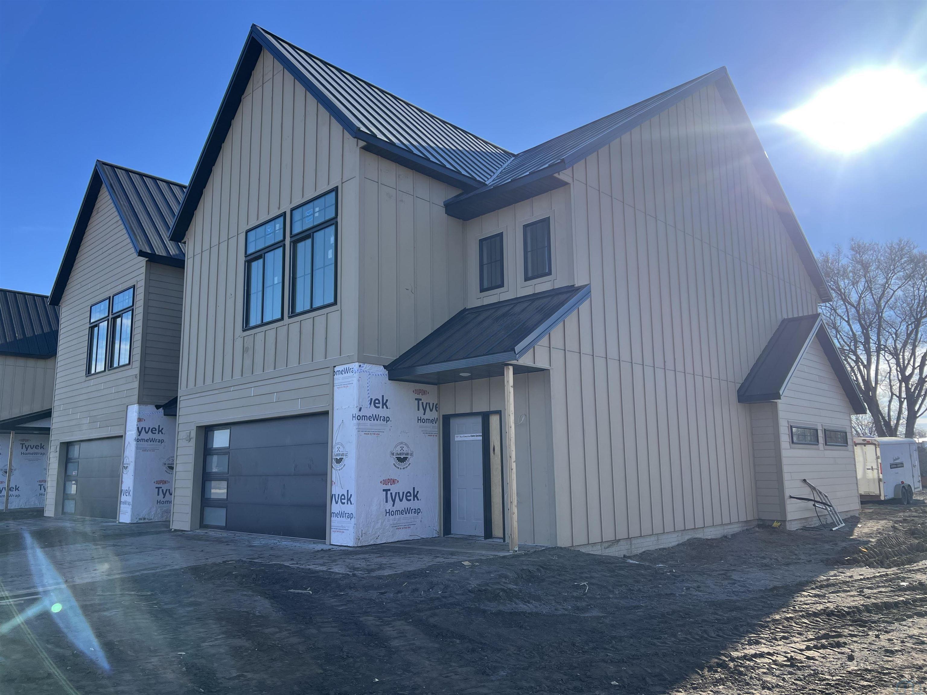 Welcome to North42! This beautiful townhome is part of Phase 1 of an exciting new development centrally located in Vermillion just 2 blocks from USD campus and the Dakota Dome. Thoughtfully designed with a modern farmhouse aesthetic, this home offers a truly unique layout you won’t find anywhere else. Step inside to a stunning two-story foyer where soaring ceilings extend to the second floor, creating a grand and open first impression with an upper-level overlook. The main level features a spacious open-concept floor plan, including a stylish kitchen with island, walk-in pantry, and designated dining area with a sliding glass door leading to the backyard patio. A roomy living area, convenient mudroom, and half bath complete the main floor. This end unit also offers extra yard space, additional privacy, and extra windows in the living room, flooding the space with natural light. Upstairs, the primary suite offers a private retreat with a double-sink vanity, tile-surround shower, and a spacious walk-in closet. Two additional generously sized bedrooms and a full bath complete the second level. Throughout the home, you’ll find thoughtfully selected finishes including tile kitchen backsplash, tile tub and shower surrounds, beautiful modern lighting, and luxury vinyl plank flooring throughout the main level, stairs, and landing. Each unit will feature a unique mix of finishes for added character. An attached two-stall garage completes this exceptional property. Estimated completion is spring 2026, but showings begin immediately—don’t miss your opportunity to be part of this exciting new development. Covenants and HOA details coming soon. For more information, please visit North42onDuke.com.