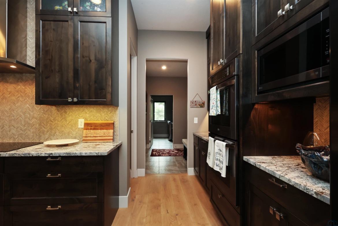 OtherBasement13x1810' cabinets, seeded glass, double ovens, XX Pantry