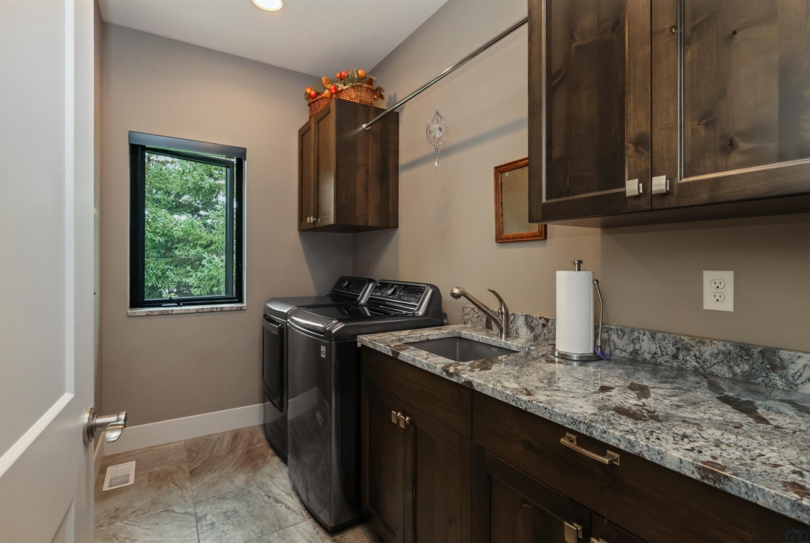 LaundryMain10x6Off drop zone, Blanco soak sink, tile floor, cabinets