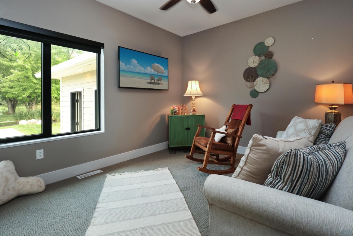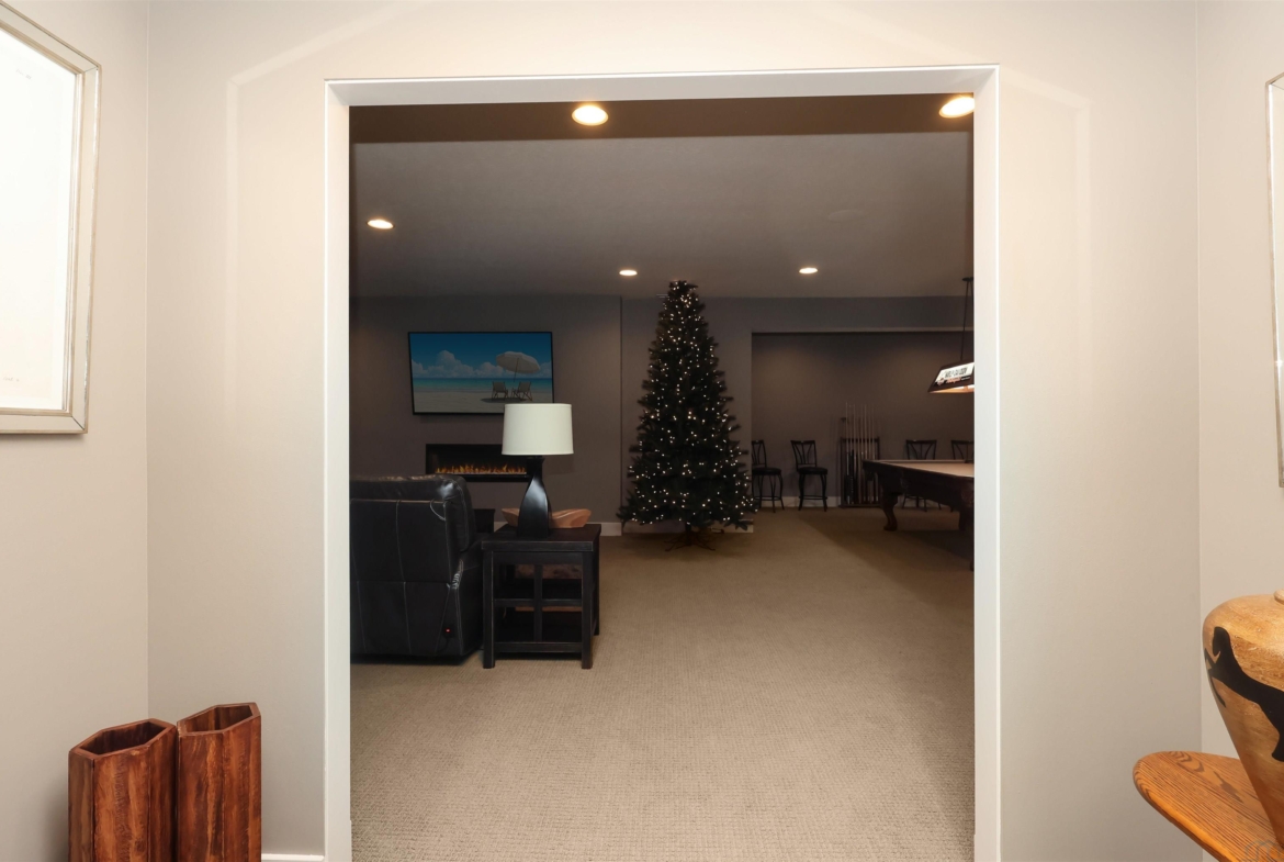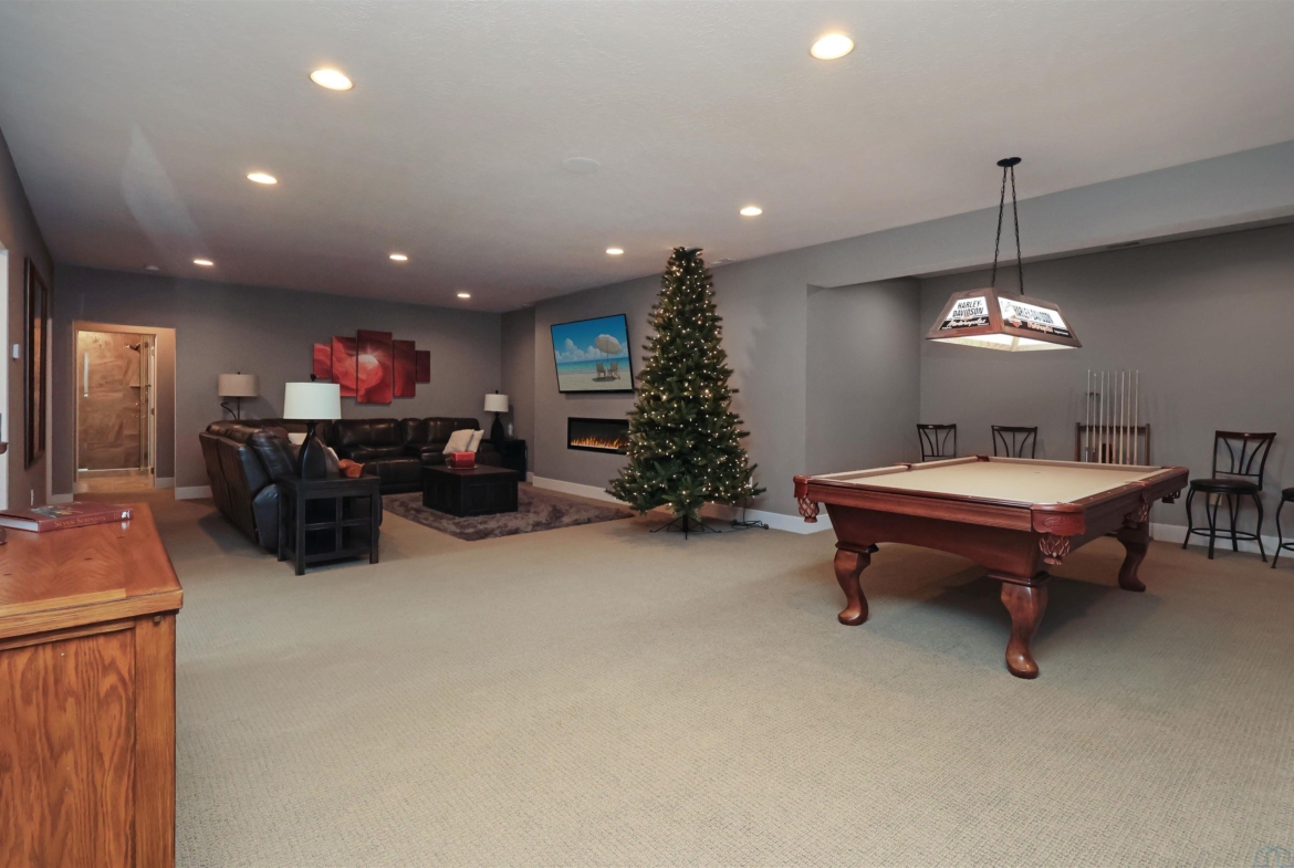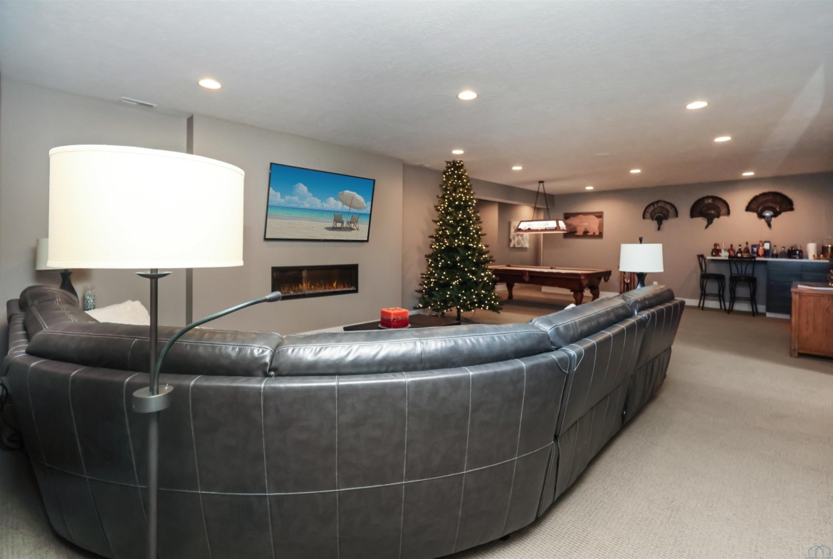 FamilyBasement34x24.59' ceiling, carpet, electric fireplace, wet bar ready,