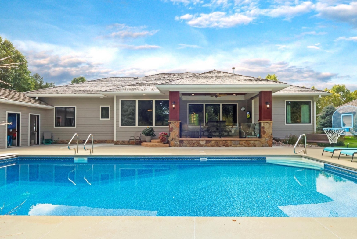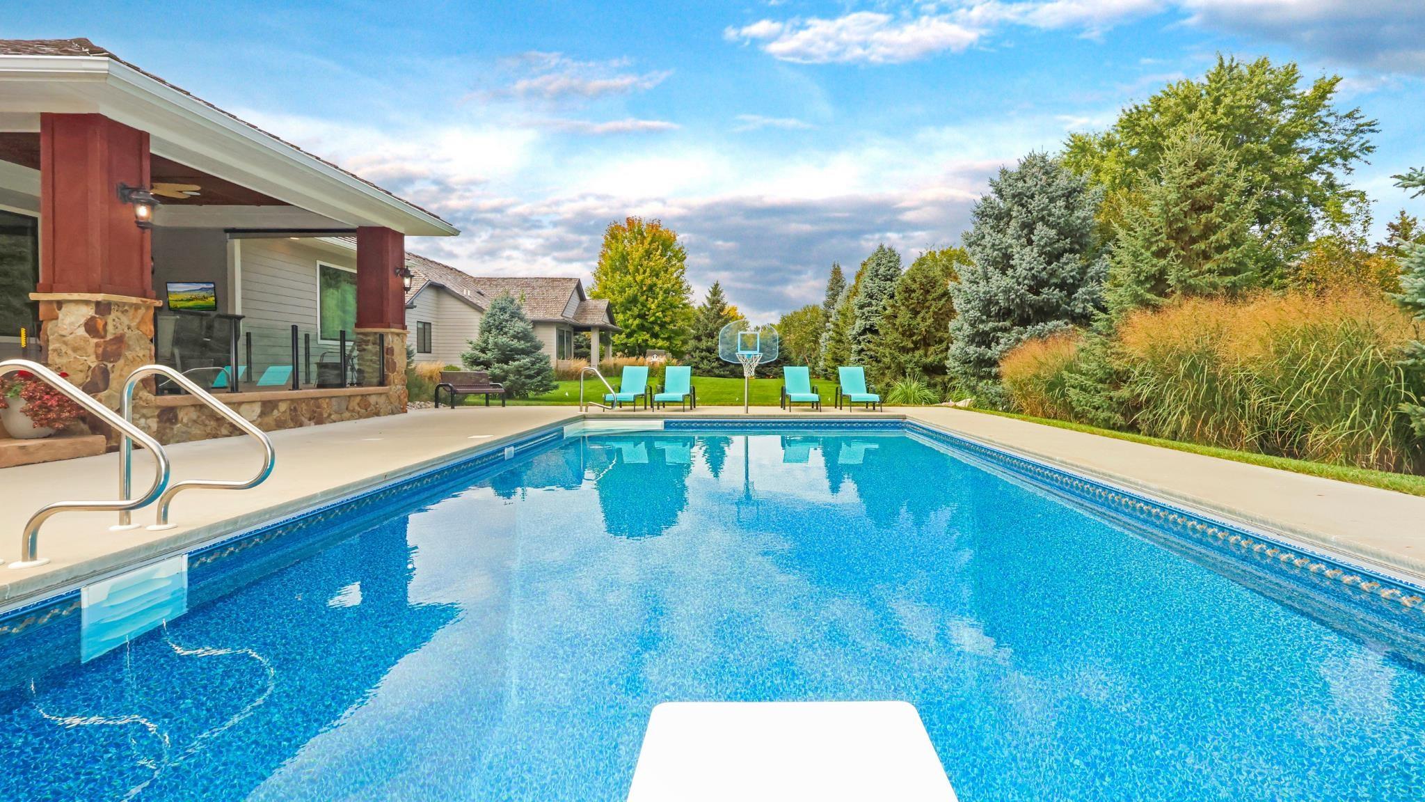 The wait is officially over right here, right now at 155 West Pinehurst Trail, an inviting, exquisite home that offers all the trappings of modern day, luxury living, with a rich, warm, and functional venue for you and yours to enjoy day to day life. Sitting on a private, half-acre lot, this custom-built residence boasts 5 bedrooms, 4 bathrooms, 8ft 20×40 heated saltwater pool, premier landscaping, 2300 SF on the main, 2800 basement footprint, a finished basement, dedicated safe room for indoor shooting, 1500 SF heated garage with room for 5 vehicles, and much more for those with a mechanical penchant. The main floor offers 3 beds, 2 baths, white walnut hardwood floors, 10ft ceilings and kitchen cabinets, drop zone, dedicated laundry, pantry off kitchen, and a primary bedroom with 2024 carpet, large en suite (soak tub plumbing is installed), and oversized walk-in closet. The lower level offers a spacious family room for entertainment (wet bar plumbing is installed), two bedrooms with walk-in closets, guest bath, two large storage/mechanical rooms, and the concrete-encased 11.5×54 safe room that functions as a shooting range. In back is the pool, dedicated pool powder bathroom/storage room, and oversized covered patio with stamped concrete. The garage has epoxy floors with drains, hot/cold spigot, plus its own patio for smokers/grills/trash receptacles. Mechanical highlights include Geothermal with 3 zones, 105 gallon Marathon water heater, Sonos speaker system, 24in attic insulation plus ALL interior walls and floor joists insulated, 200 + 100 amp service, and MORE, so get the full spec sheet. This home was designed with every possible detail covered and is in mint condition. With walking trails accessible from your yard, a short golf cart ride to the Club House, this home truly encompasses all there is to experience in this golf course community, all with the benefit of no state income tax. What are you waiting for? Come home today!