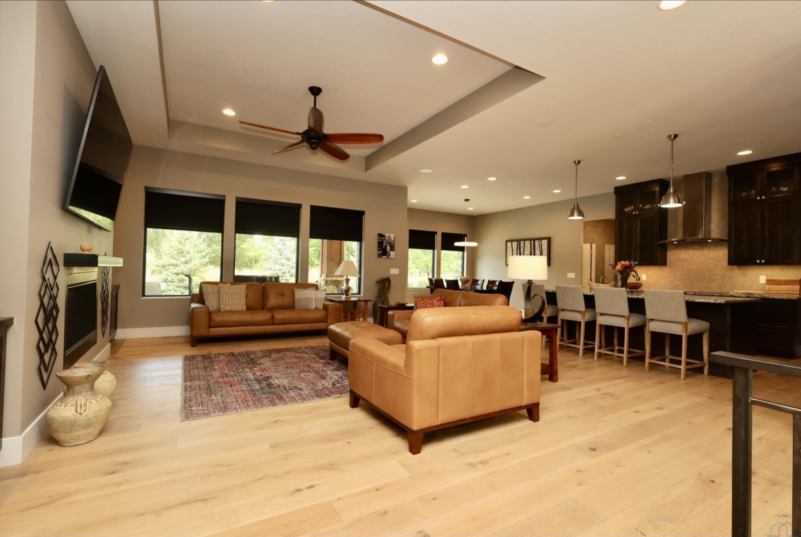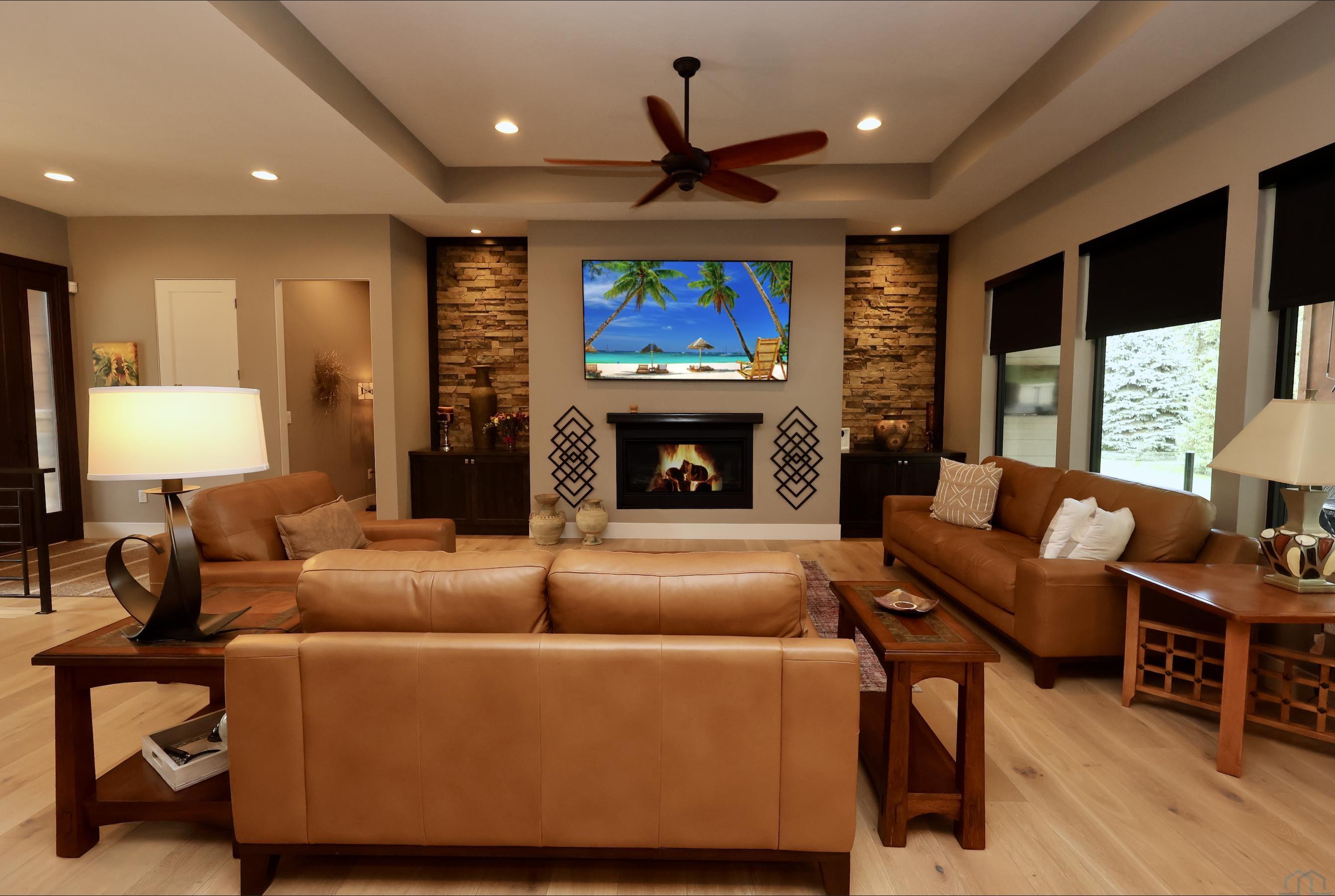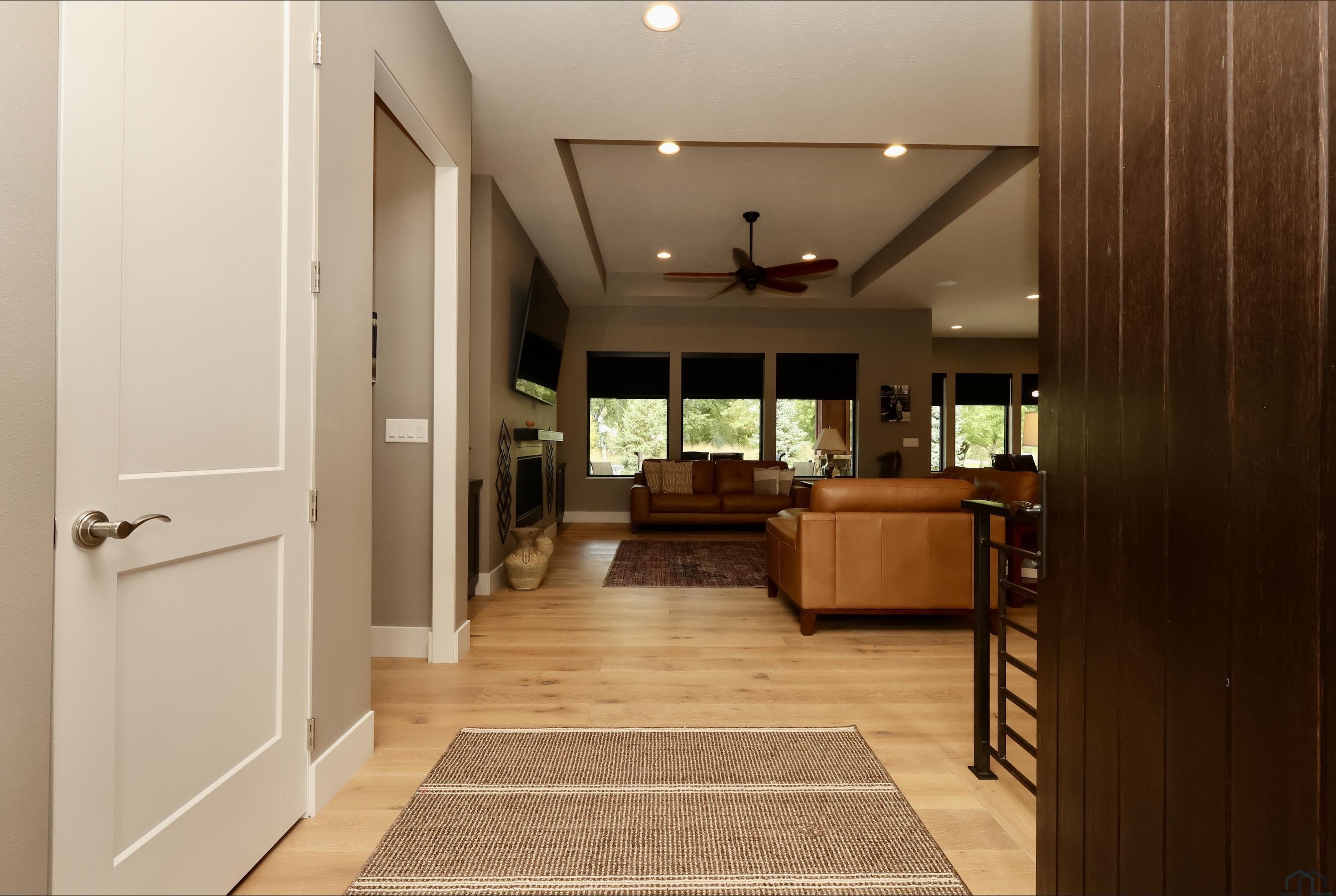 LivingMain22x18.5Tray ceiling, gas fireplace with steel mantle, fan & cans