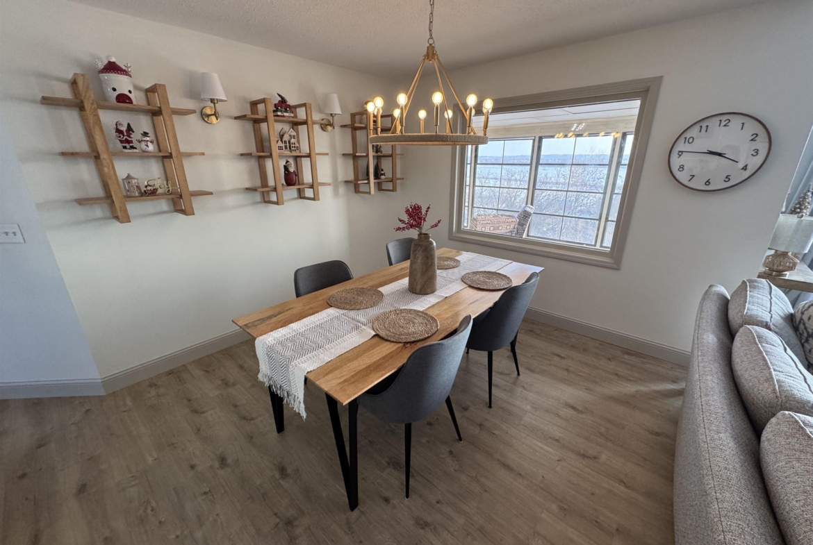 DiningMain12' 9" x 10' 6"LVP wood flooring, large windows, new light fixture