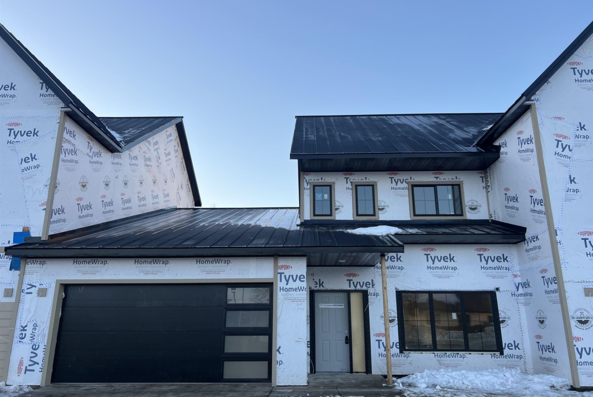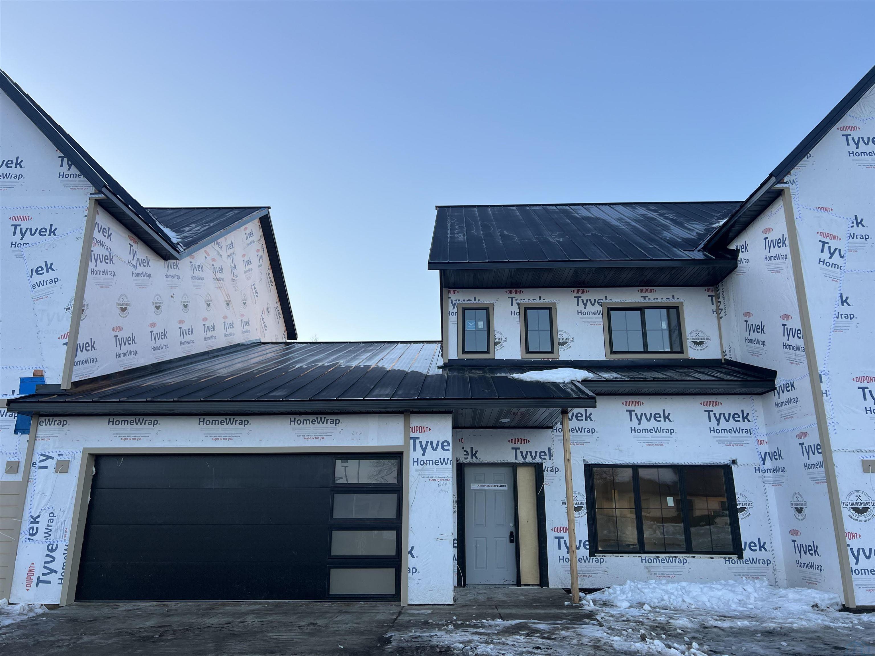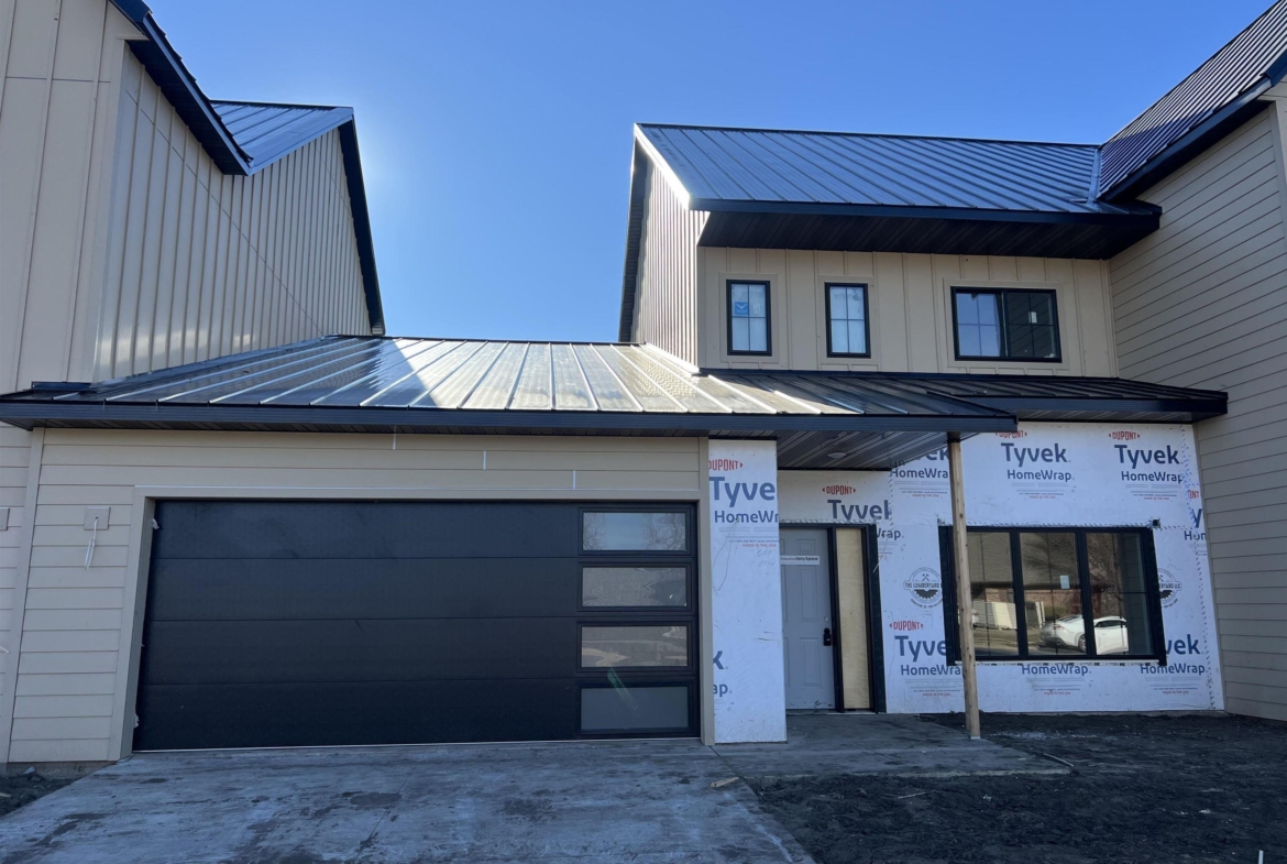 Welcome to North42! This beautiful townhome is part of Phase 1 of an exciting new development, centrally located in Vermillion just two blocks from the USD campus and the Dakota Dome. Thoughtfully designed with a modern farmhouse aesthetic, this home offers a truly unique layout you won’t find anywhere else. Step inside to a stunning two-story foyer where soaring ceilings extend to the second floor, creating a grand and open first impression with an upper-level overlook. This carefully designed plan features a main-floor primary suite complete with a walk-in closet, double-sink vanity, and a tiled shower. The spacious open-concept main level includes a sleek kitchen with a generous island offering seating for up to five, a dry bar with beverage refrigerator, and a large dining area ideal for entertaining. A cozy yet roomy living room features a sliding glass door leading to the backyard patio. Main-floor laundry and a convenient half bath complete the main level. Upstairs, you’ll find two additional bedrooms, one with a walk-in closet, along with a full bath and a sizable storage room. Throughout the home, thoughtfully selected finishes shine, including tile kitchen backsplash, tile tub and shower surrounds, beautiful modern lighting, and luxury vinyl plank flooring throughout the main level, stairs, and landing. Each unit will feature a unique mix of finishes, adding character and individuality. Large windows are another element adding to the allure of this timeless home. An attached two-stall garage completes this exceptional property. Estimated completion is spring 2026, but showings begin immediately—don’t miss your opportunity to be part of this exciting new development. Covenants and HOA details coming soon. For more information, please visit North42onDuke.com.