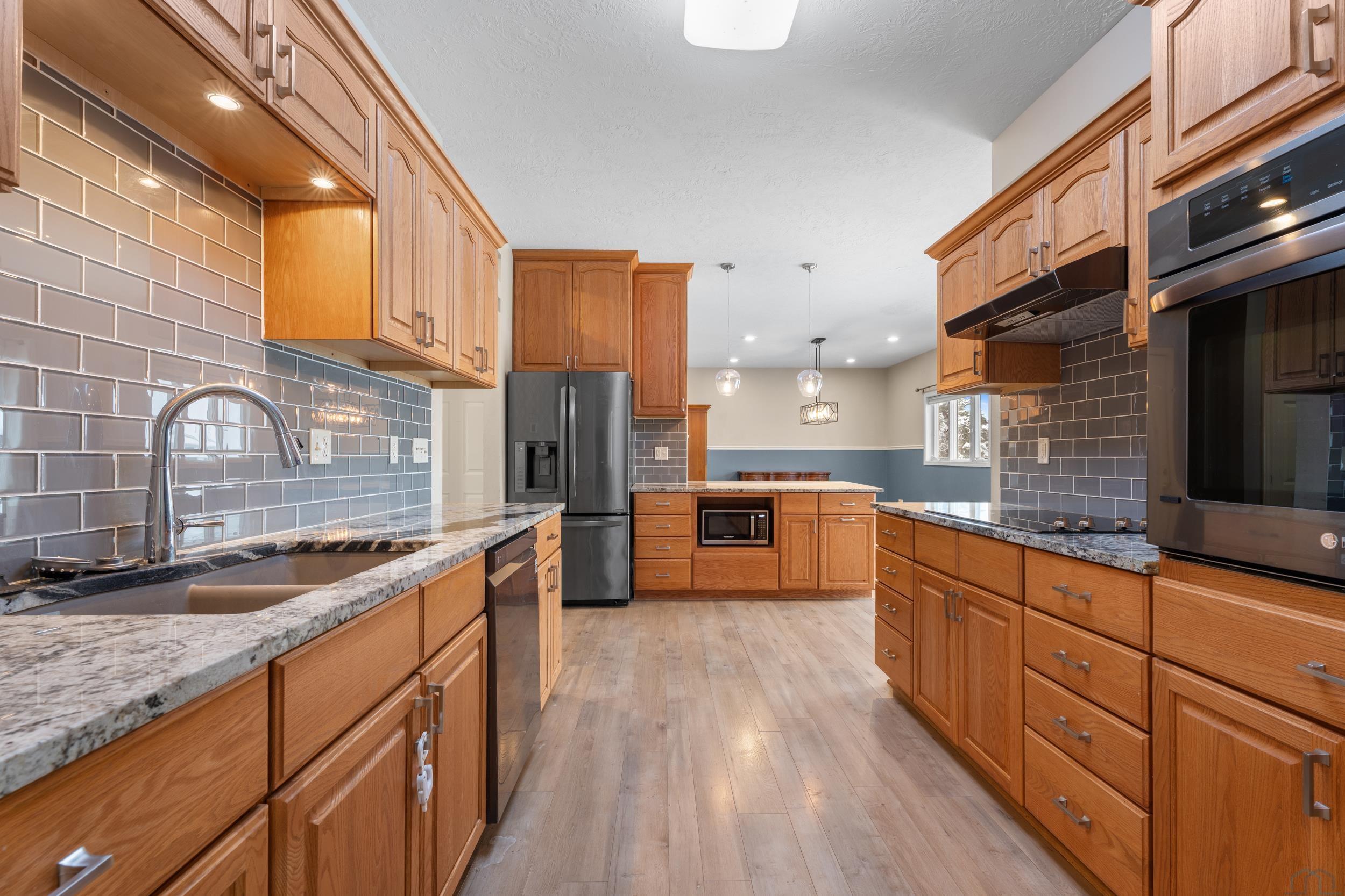 | Kitchen | Main | 14x9 | Island, granite counters, cooktop, wall oven, wood floor |