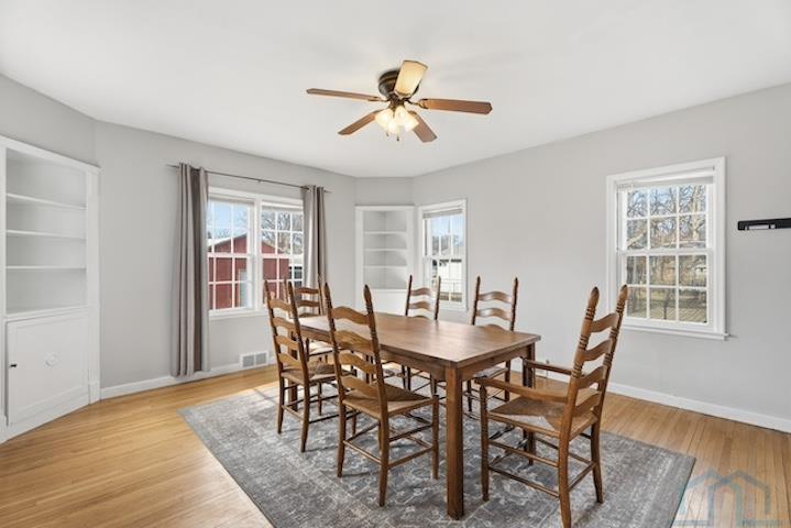Charming Cape Cod with classic character and thoughtful updates throughout. This three bedroom, one and one half bath home features original hardwood floors and a functional layout with comfortable living spaces on each level. The kitchen and upstairs bathroom have been updated, blending everyday practicality with the home’s original charm. The mostly finished basement adds flexible living space and includes a nonconforming half bath. A newer furnace and recently installed basement carpet add peace of mind. Outside, enjoy a fully fenced backyard with chain link fencing, a single stall detached garage, and an additional newer shed for storage. This home is a contributing property within the Jolley Historic District and offers excellent walkability to the University of South Dakota campus, Historic Downtown Vermillion, and Prentis Park. A well cared for home in a highly sought after location with a balance of charm, updates, and opportunity.