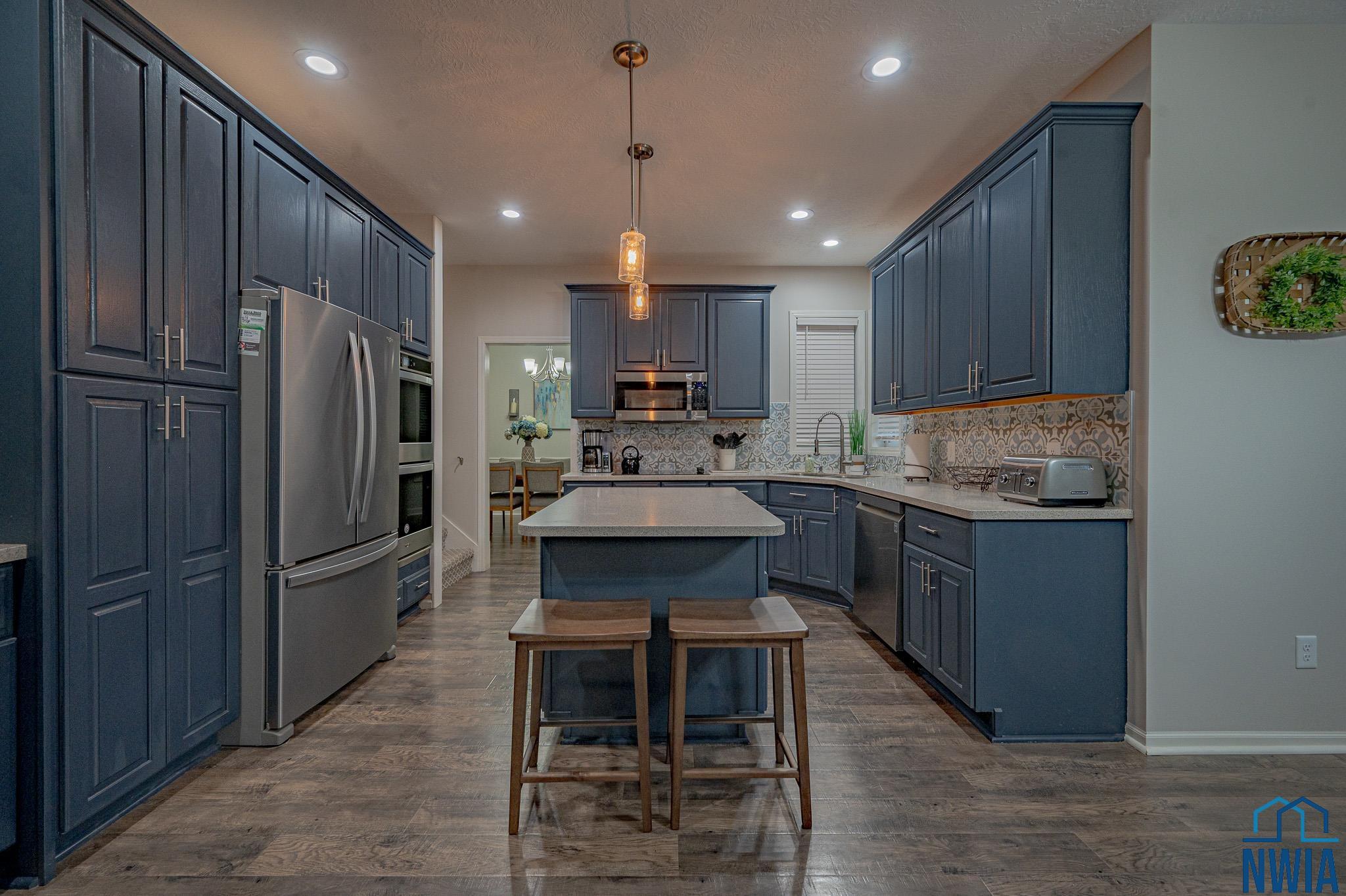 WOW! Take a look at this Beautiful 4 bedroom, 3.5 Bath, with attached 3 stall garage located on a gorgeous lot in the Dunes! Upon entering this Home, you’ll notice the open staircase, and just off the open foyer you’ll find the formal living room or can be used as an office with window seat to enjoy the beautiful view! The formal dining room, all new paint, new flooring with the perfect access to the NEWLY Updated kitchen! NEW corian countertops, NEW backsplash, updated cabinetry and kitchen island with great space for more casual dining and open to the warm and inviting family room with floor to ceiling cabinets, neutral eye catching colors with the brick gas fireplace as a standout focal point! Just off the back door you’ll find the deck with heated pool to entertain guests! The half bath on the main floor, beautifully updated! The Main floor laundry room couldn’t be better situated. Up to the second floor, all NEW neutral paint!! The Main bedroom with french doors, walk in closet and main bathroom suite with jacuzzi tub and separate shower, double bowl vanity tray ceiling with crown molding and beautiful view of the backyard. Down the hall, on the second floor, you will find 3 additional bedroom, one with a bonus room making it a great office/playroom! Cathedral ceiling and window seat in another! All bedrooms are so nicely sized!! A full bath completes the second floor. Down to the basement, complete with open wet bar, nice seating and lots of cabinets! The refrigerator will stay! The family room downstairs, SO MUCH space, for living and rec room space, all the space you need and then some!! Beautifully painted, plus you’re third full bathroom! Additional room down used as the 5th bedroom, double closets, no egress. The setting of 215 W Sawgrass can’t be beat; you’ll be so Happy to call this address Home!