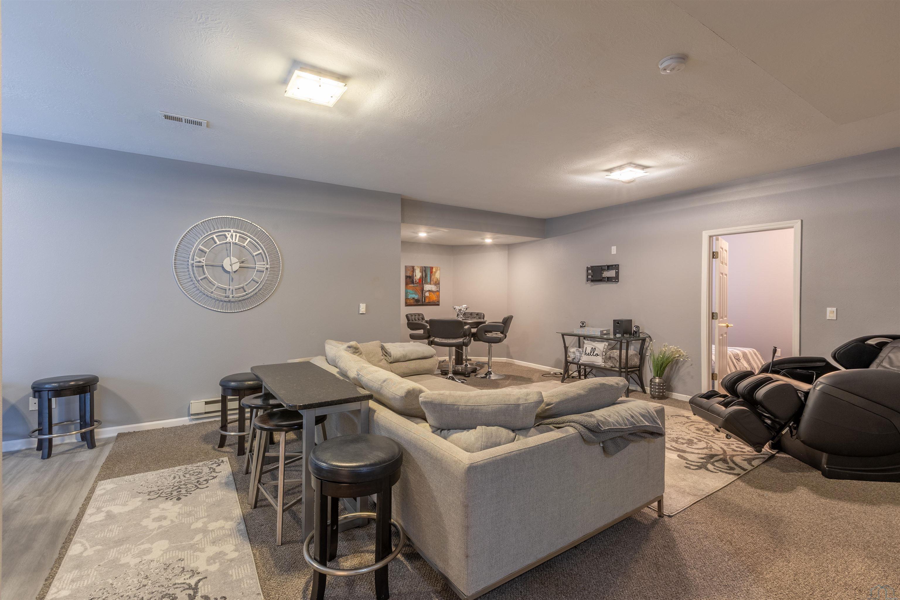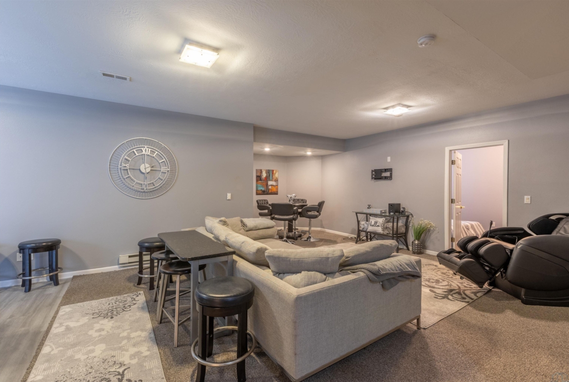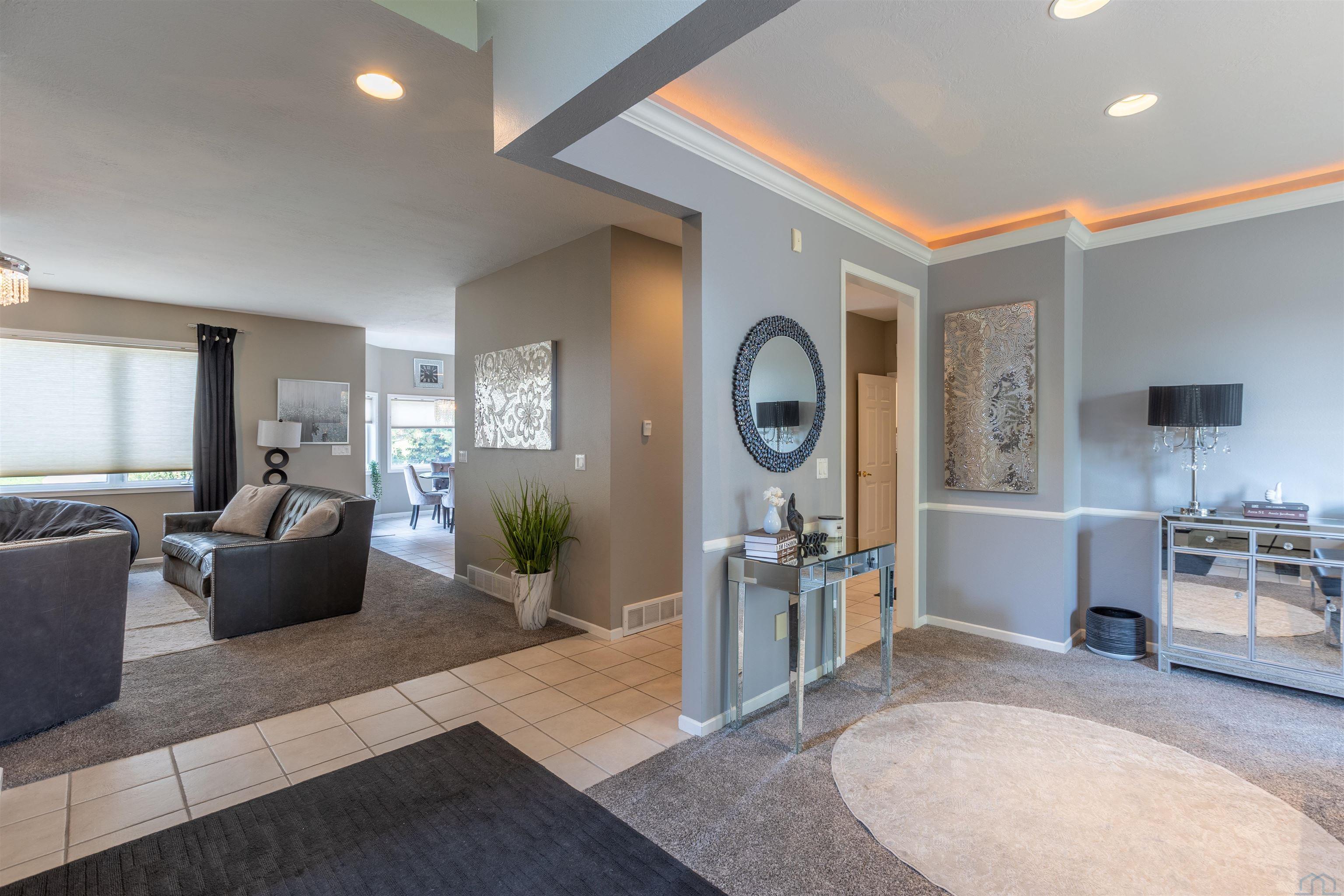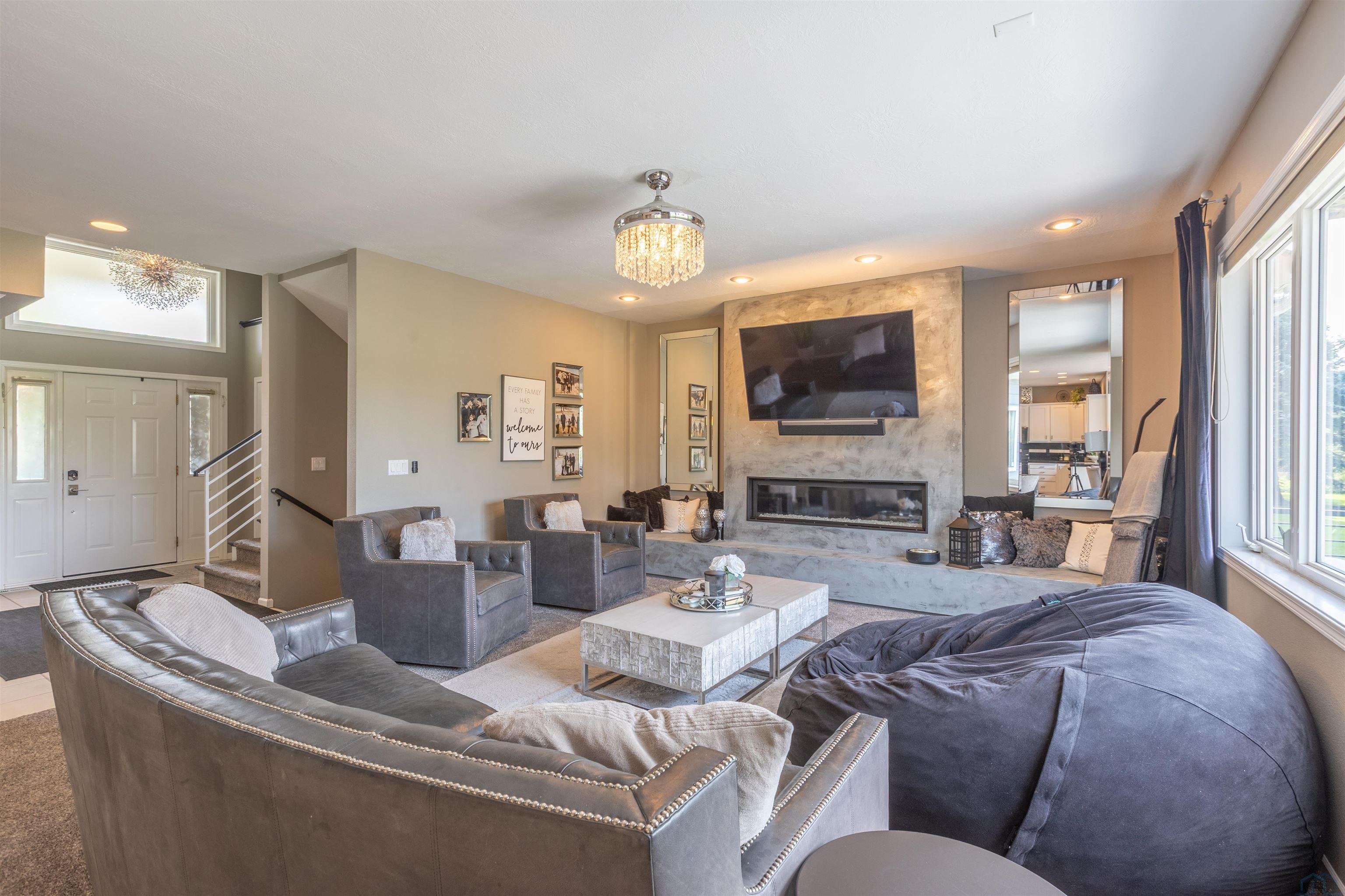 Incredible two story home in the Dakota Dunes Country Club addition with many recent updates. This spacious 5 bedroom, 4 bath home sits right on hole 1 of the golf course with great course and pond views. The main level has been tastefully updated offering a great mix of comfort and modern finishes. The spacious living room offers great views and a brand new fireplace wall. The large eat in kitchen has been remodeled, opens to the living area, and features new hardware, old island removal, painted white cabinetry, and a new butler’s pantry! Main level also features an updated half bath, formal dining area, and a laundry / mud room. The second level has an impressive master suite with a full bath, walk in tile shower, dual vanities, walk in closet, and a private deck with unbelievable views. Upper level also includes 3 additional bedrooms and a full bath. The lower level in this home has also been remodeled by the current owners and is a great space for entertaining. The new wet bar was recently finished, the full bath has a new vanity and mirror. The basement also has a large family room, a legal 5th bedroom, and storage space. The backyard has been transformed into your very own backyard oasis. This private setting features great views after tree removal, a new composite trex deck, a concrete stamped patio, new fire pit, outdoor kitchen, new pergola, and great exterior lighting. Recent updates also include fresh paint throughout giving this home a clean modern feel. This one of a kind property has plenty of space, a great layout, and an unbeatable location on the golf course. There is a lot to love in this home so Don’t Delay!