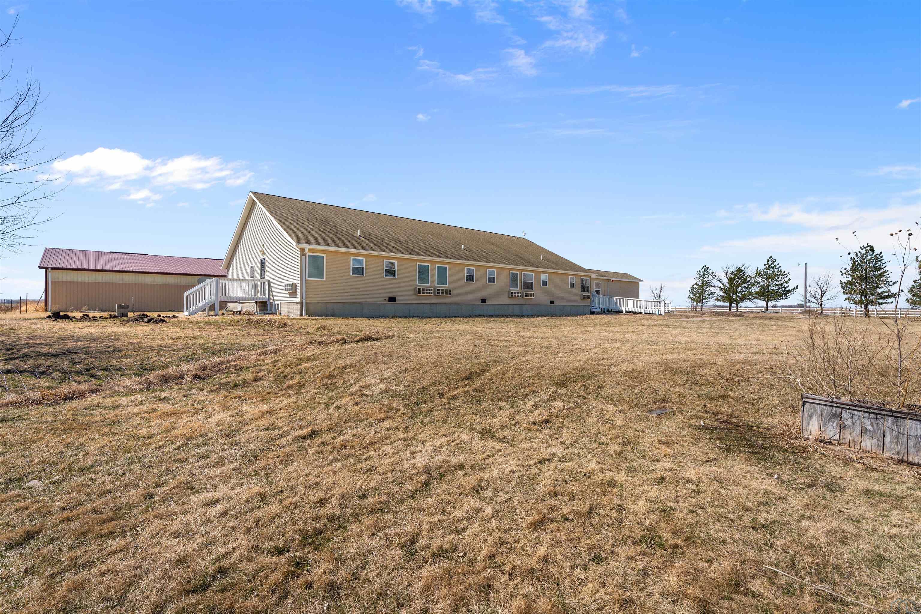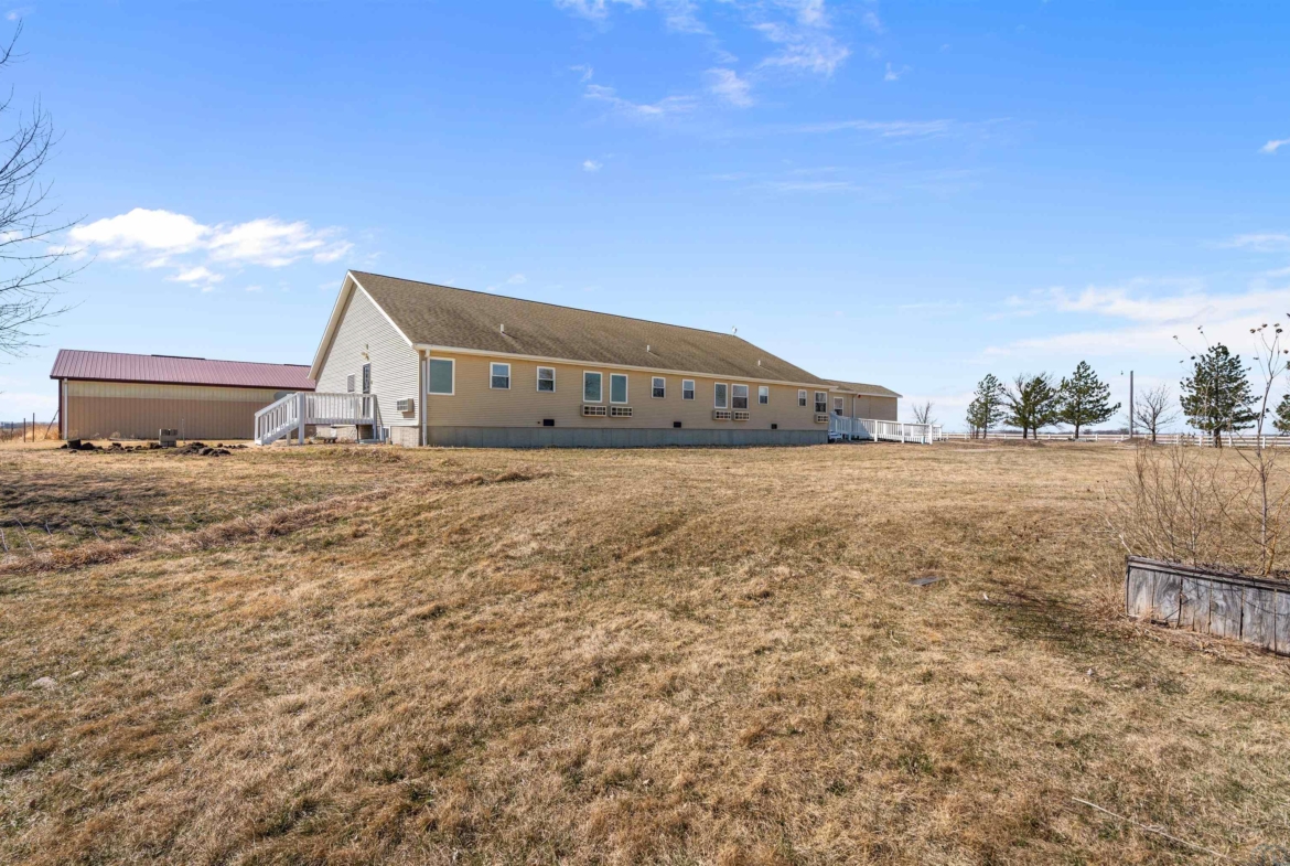 This horse property is ideally situated between Yankton and Vermillion, just a half mile off Highway 50 on an oil road. The location provides convenient access while maintaining a private and peaceful setting. The property is bordered by a striking white vinyl fence, offering both security and aesthetic appeal. The Morton building is designed for horse enthusiasts, featuring five spacious horse stalls, two offices, and a dedicated area for horse grooming. In addition, the property includes a charming goat barn, making it suitable for multiple types of livestock. This extraordinary property offers eleven bedrooms and eleven bathrooms, enabling a range of living arrangements. The layout supports flexible configurations, such as a main house with seven or eight bedrooms and a separate guest quarter with three bedrooms and two and a half baths. Most bedrooms are equipped with private bathrooms, and several have PTAC units for individual heating and cooling control. The home features two kitchens, including a fully renovated main kitchen, as well as two spacious living rooms. Five distinct entrances all on a single level contribute to accessibility and versatility, making the property suitable for various purposes. Many areas are handicapped accessible, and there are two ramps to further enhance mobility throughout the home. Adjacent to the horse barn is a massive Quonset structure that serves as an insulated two-car garage, with another two-car garage located behind it. These facilities provide ample space for vehicles and equipment. The property is available for purchase either on its own or together with the neighboring five-bedroom home. Its proximity to the Myron Grove boat access on the Missouri River offers additional recreational opportunities, making this a truly exceptional property.
