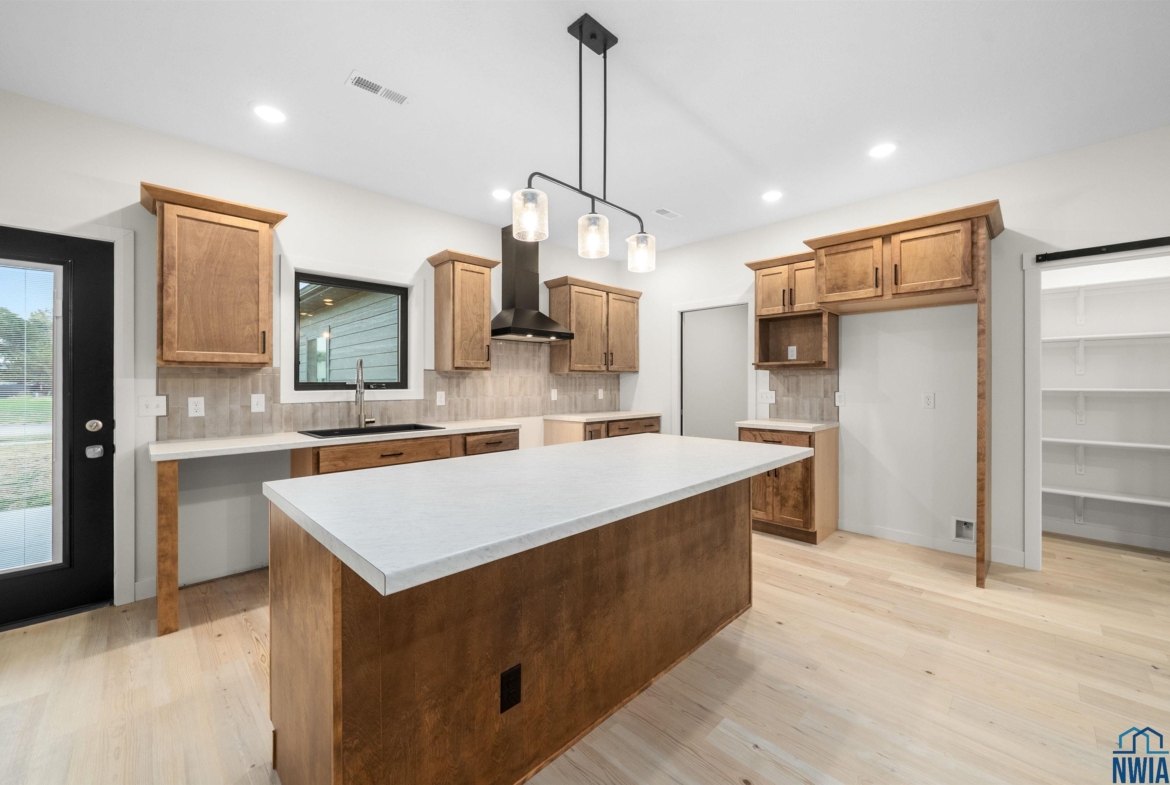 | Kitchen | Main | 18 X 13, LVP, tile backsplash, | large island, patio access, large pantry, barn door |