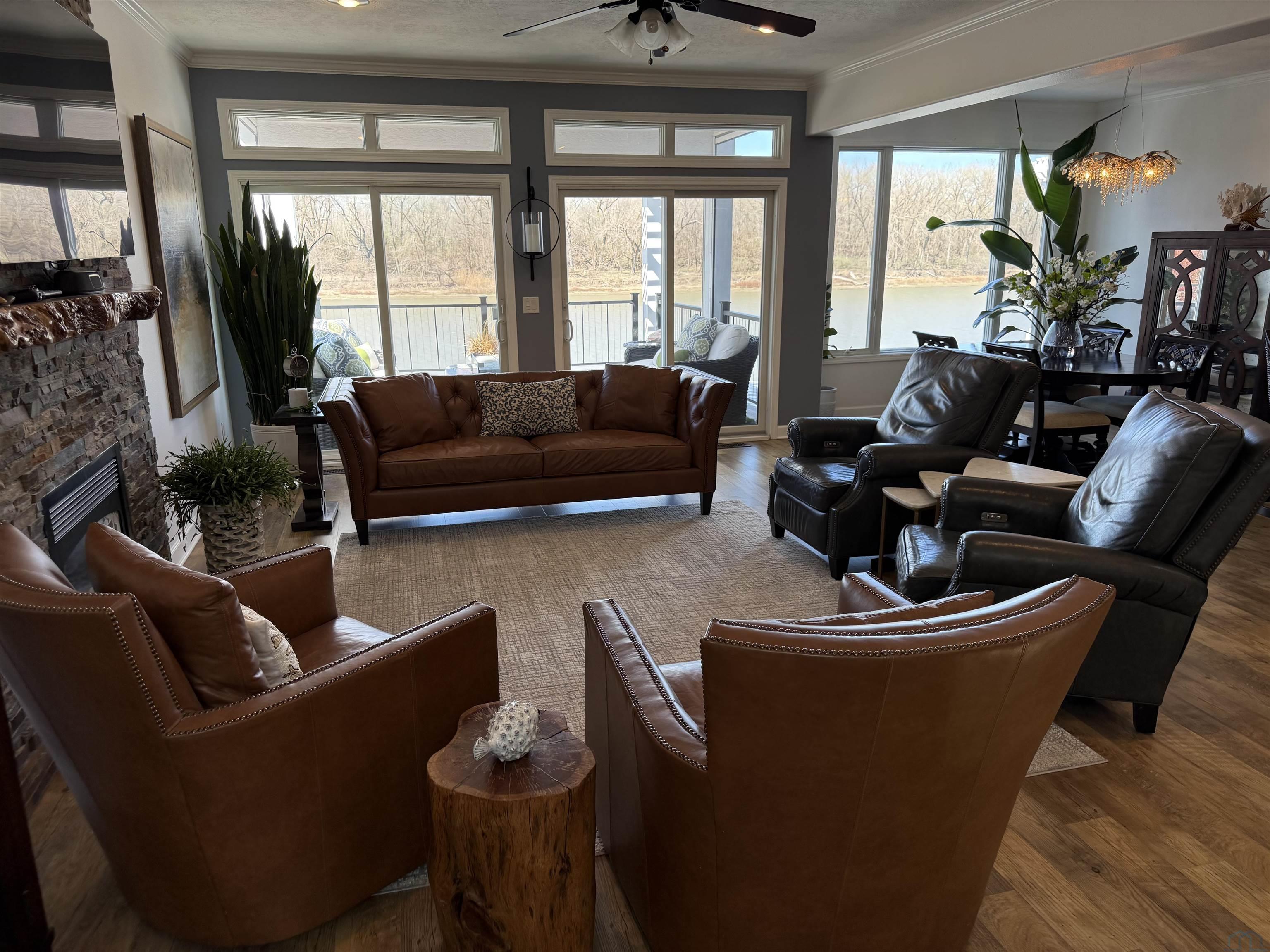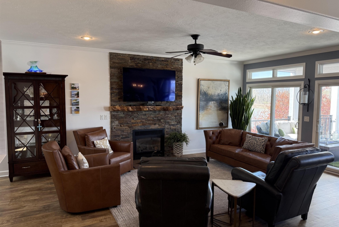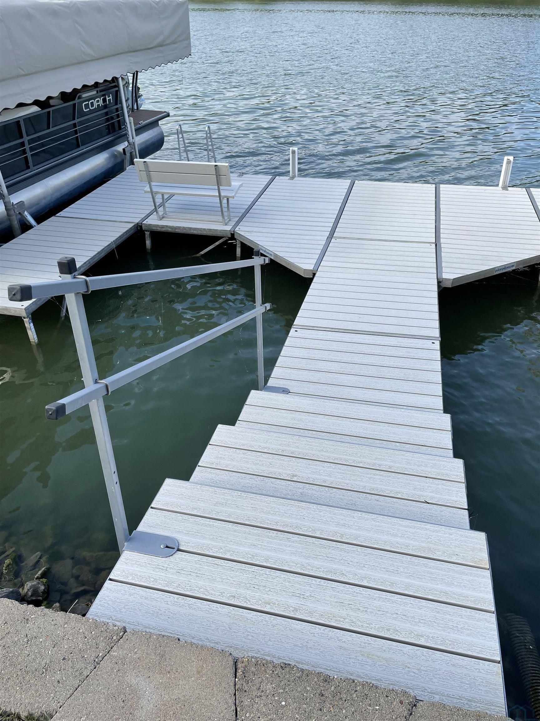 Waterfront with million dollar view!! Fantastic one owner 4 bedroom, 3.5 bath, two story townhouse with unimpeded views of the lake. Well maintained with lots of upgrade and updates. Where would you like to view the lake from? So many great choices!!! The large primary suite on the second floor has sliders to a concrete deck with pergola and a majestic view of the lake. You may also choose to walk out from the main floor living room to a large covered concrete deck with wood ceilings and remote control screens so you are never at the mercy of the sun. Finally you can walk out from the lower level to a large covered patio with wood ceiling and plenty of room for a hot tub! There is updated LVP flooring on the first and second floor. You will love the open concept main floor living room with stone edged gas log fireplace and double sliders to the previously mentioned outdoor living area. Kitchen has LARGE walk in pantry, LVP flooring, granite counter tops, breakfast bar and custom cabinets. Dining room has large window with high end automatic blackout shades. Primary suite on second floor is very spacious with double sliders to great outdoor living area and has large walk in closet. Large primary bath has tile floor, double vanity with granite countertops and whirlpool tub. Two more bedrooms up with a conveniently located laundry on second floor with sink and lot of cabinets. Large family room down walks out to patio and also has large 4th bedroom with full window. Full bath down has tub and surround shower. New retaining wall in 2024 and new shingles in 2022. Pier pleasure dock is included. Mullin automatic screens on main deck and dining room 2021. Cement decks on main and 2nd floor were built in 2021. You will enjoy all the high end updates to this wonderful townhome.No water damage in 2011 or 2024.