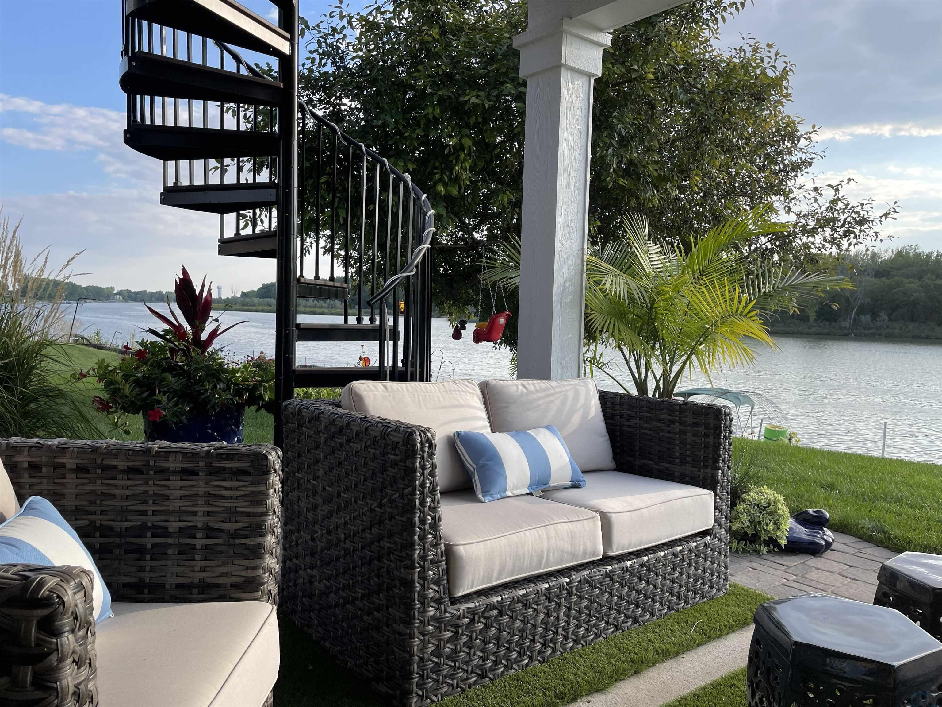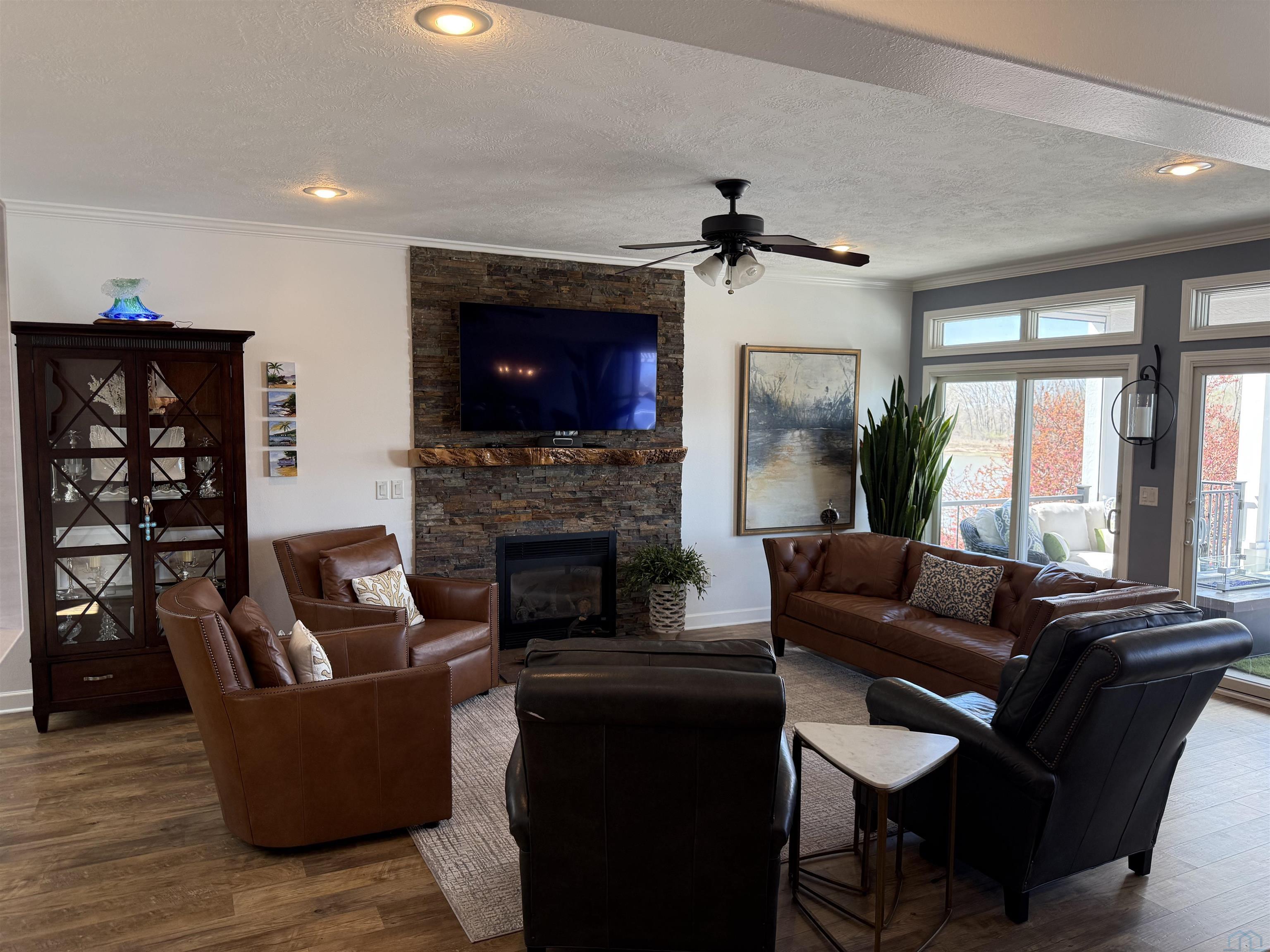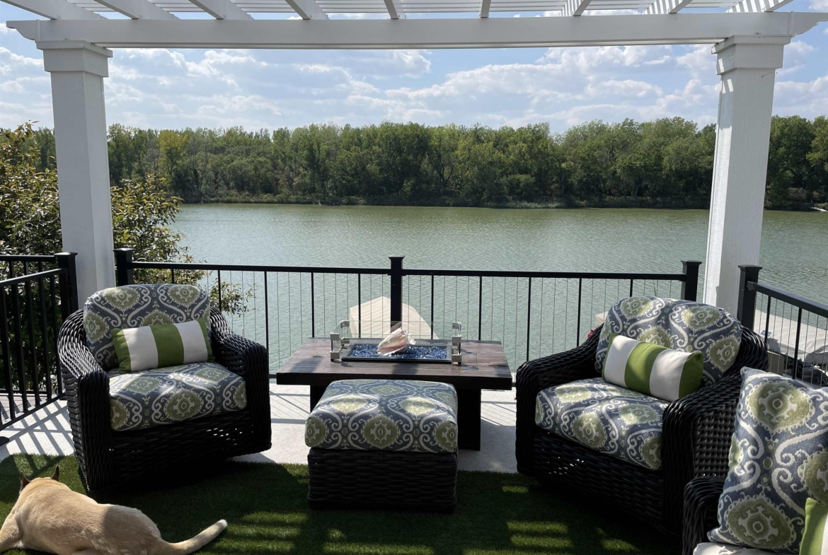Waterfront with million dollar view!! Fantastic one owner 4 bedroom, 3.5 bath, two story townhouse with unimpeded views of the lake. Well maintained with lots of upgrade and updates. Where would you like to view the lake from? So many great choices!!! The large primary suite on the second floor has sliders to a concrete deck with pergola and a majestic view of the lake. You may also choose to walk out from the main floor living room to a large covered concrete deck with wood ceilings and remote control screens so you are never at the mercy of the sun. Finally you can walk out from the lower level to a large covered patio with wood ceiling and plenty of room for a hot tub! There is updated LVP flooring on the first and second floor. You will love the open concept main floor living room with stone edged gas log fireplace and double sliders to the previously mentioned outdoor living area. Kitchen has LARGE walk in pantry, LVP flooring, granite counter tops, breakfast bar and custom cabinets. Dining room has large window with high end automatic blackout shades. Primary suite on second floor is very spacious with double sliders to great outdoor living area and has large walk in closet. Large primary bath has tile floor, double vanity with granite countertops and whirlpool tub. Two more bedrooms up with a conveniently located laundry on second floor with sink and lot of cabinets. Large family room down walks out to patio and also has large 4th bedroom with full window. Full bath down has tub and surround shower. New retaining wall in 2024 and new shingles in 2022. Pier pleasure dock is included. Mullin automatic screens on main deck and dining room 2021. Cement decks on main and 2nd floor were built in 2021. You will enjoy all the high end updates to this wonderful townhome.No water damage in 2011 or 2024.