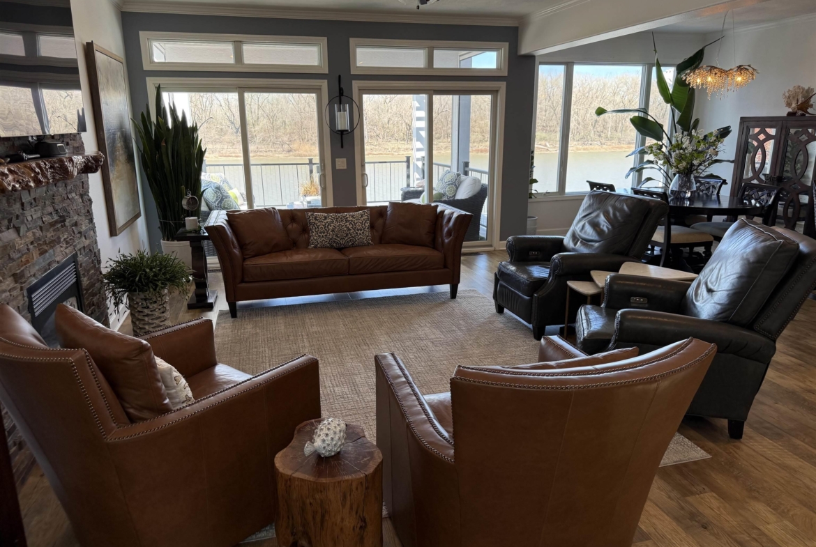 | Living | Main | 25 x 14 | Gas fireplace, LVP, double sliders to deck overlooking lake |
