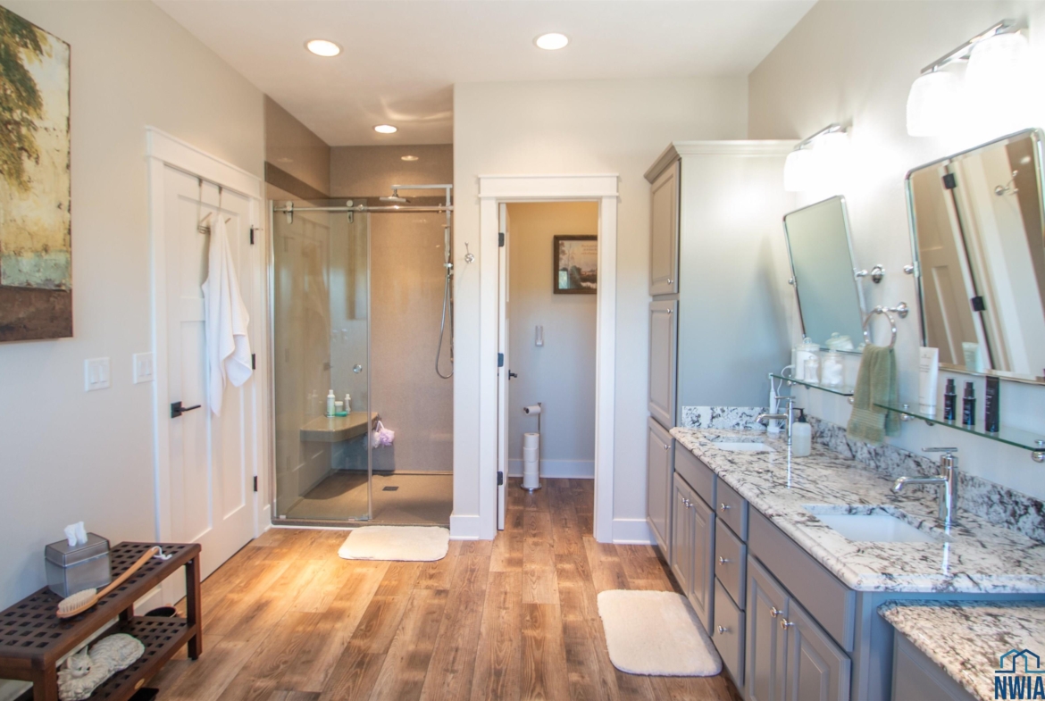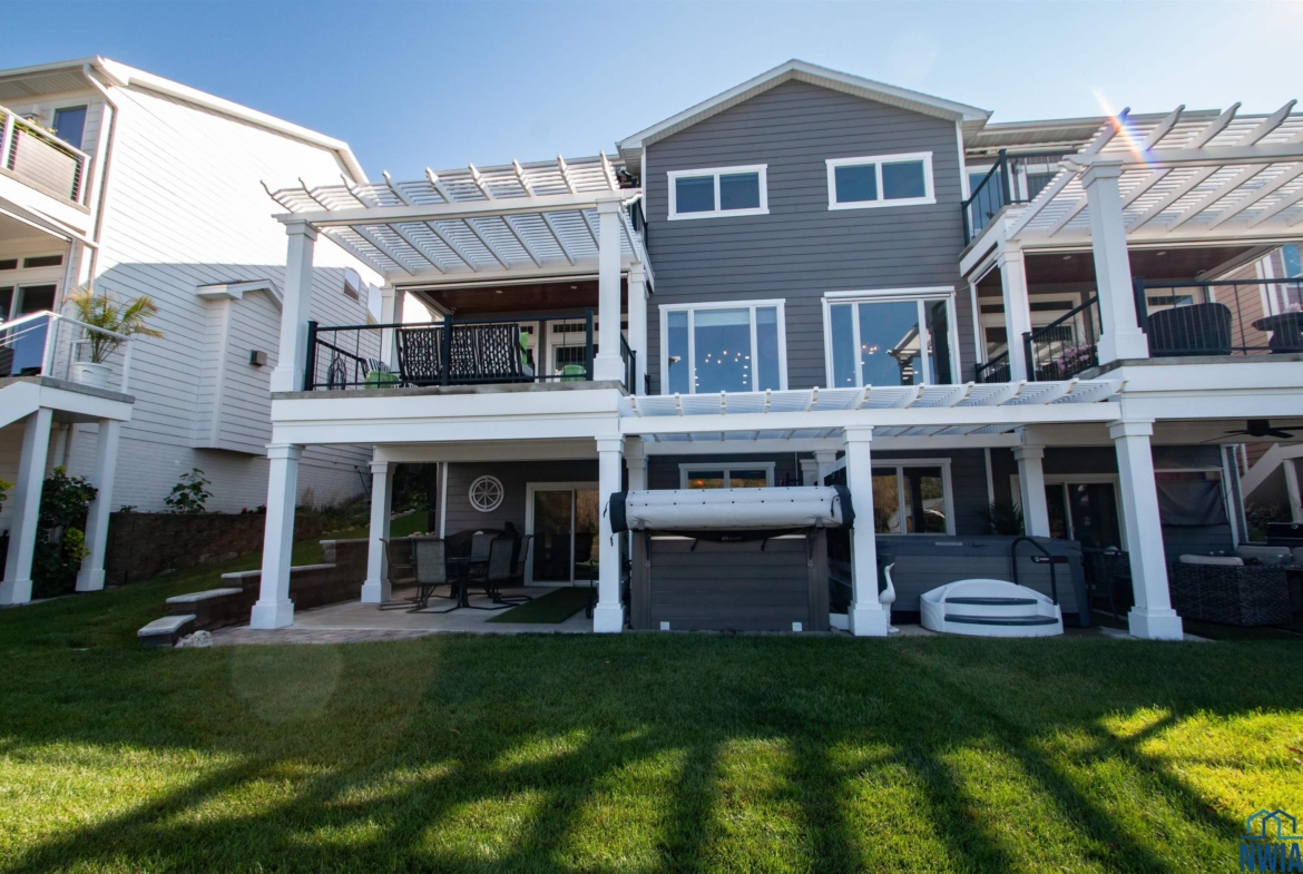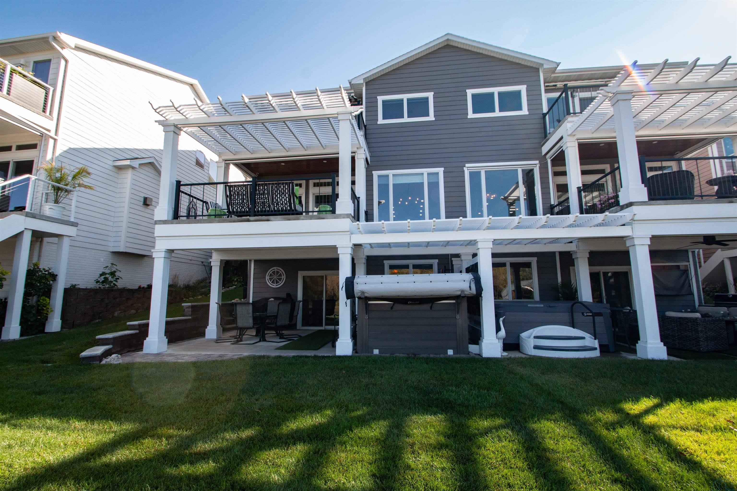 Lake living at its finest with this 3 bedroom, 4 bathroom 2 story town home that sits on the east side of McCook Lake. No water in 2011 or 2024! Welcoming entry with coat closet invites you in. Half bath on main for guests (2021) . Neutral decor throughout so move in ready! All new interior doors and hardware (2023) Great room has lake views, 2 sliders to concrete deck and a gas fireplace. More lake views from the dining room. This is open to the kitchen with NEW maple cabinets 2021, granite counters, new backsplash, new Refrigerator & dishwasher (2023) and a 6×7 walk in pantry. Convenient coat closet near door to garage. Upstairs are 2 bedrooms each with carpet and double closets, a full bathroom with tub/shower combo, single vanity and tile floor, and a convenient laundry room with stacked washer/dryer, tile floor, cabinets and a sink. Through double doors is the master suite with New electric fireplace (2023) Enjoy lake views from the bed or go out on the deck to enjoy. The master bathroom is a retreat with its soaking tub, separate shower, double vanity with additional vanity, toilet room and linen closet. The walk out lower level has a large family room with slider to covered patio, pergolas (2021) a wet bar area and a full bathroom (convenient for those coming in from a dip in the lake). Staycation ready is the backyard with fire pit and New retaining wall (2023) overlooking the lake, views of wildlife across the lake, and you would own half the shared dock! Just bring your boat, move in and start making your lake memories! Check out Additional feature sheet with all the updates to this property.
