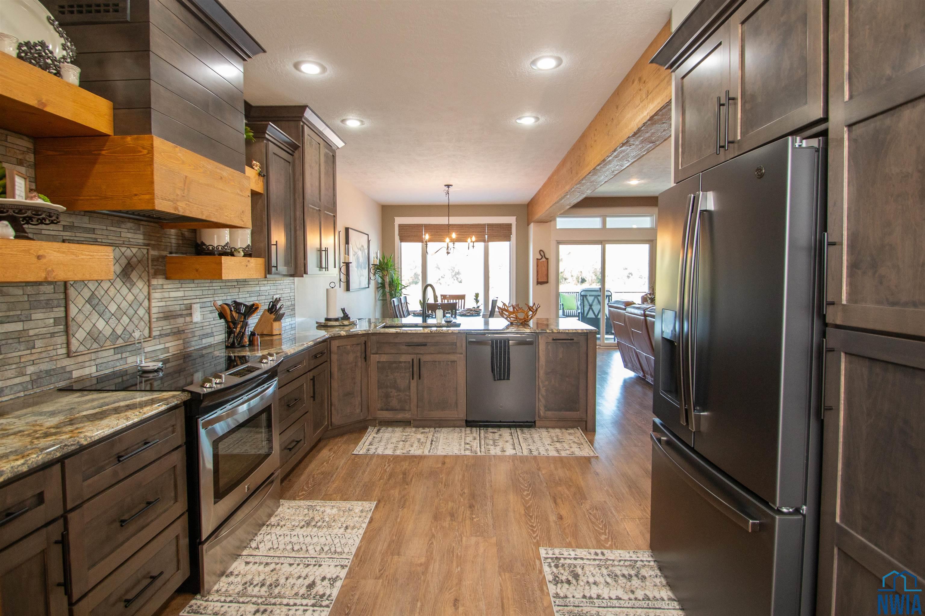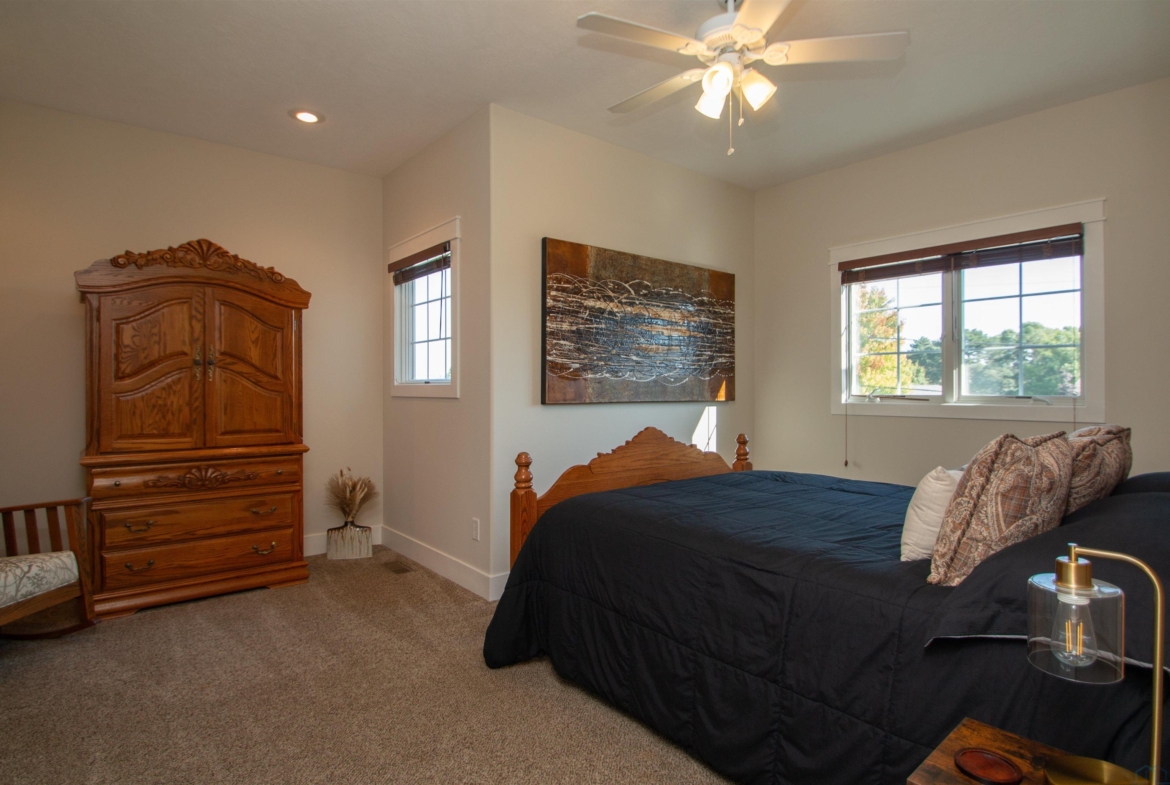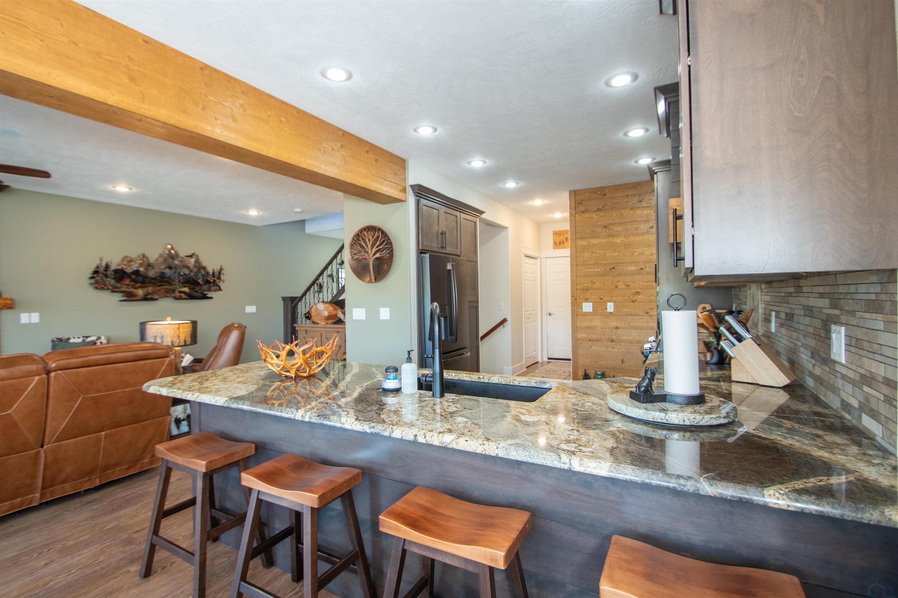Lake living at its finest with this 3 bedroom, 4 bathroom 2 story town home that sits on the east side of McCook Lake. No water in 2011 or 2024! Welcoming entry with coat closet invites you in. Half bath on main for guests (2021) . Neutral decor throughout so move in ready! All new interior doors and hardware (2023) Great room has lake views, 2 sliders to concrete deck and a gas fireplace. More lake views from the dining room. This is open to the kitchen with NEW maple cabinets 2021, granite counters, new backsplash, new Refrigerator & dishwasher (2023) and a 6×7 walk in pantry. Convenient coat closet near door to garage. Upstairs are 2 bedrooms each with carpet and double closets, a full bathroom with tub/shower combo, single vanity and tile floor, and a convenient laundry room with stacked washer/dryer, tile floor, cabinets and a sink. Through double doors is the master suite with New electric fireplace (2023) Enjoy lake views from the bed or go out on the deck to enjoy. The master bathroom is a retreat with its soaking tub, separate shower, double vanity with additional vanity, toilet room and linen closet. The walk out lower level has a large family room with slider to covered patio, pergolas (2021) a wet bar area and a full bathroom (convenient for those coming in from a dip in the lake). Staycation ready is the backyard with fire pit and New retaining wall (2023) overlooking the lake, views of wildlife across the lake, and you would own half the shared dock! Just bring your boat, move in and start making your lake memories! Check out Additional feature sheet with all the updates to this property.