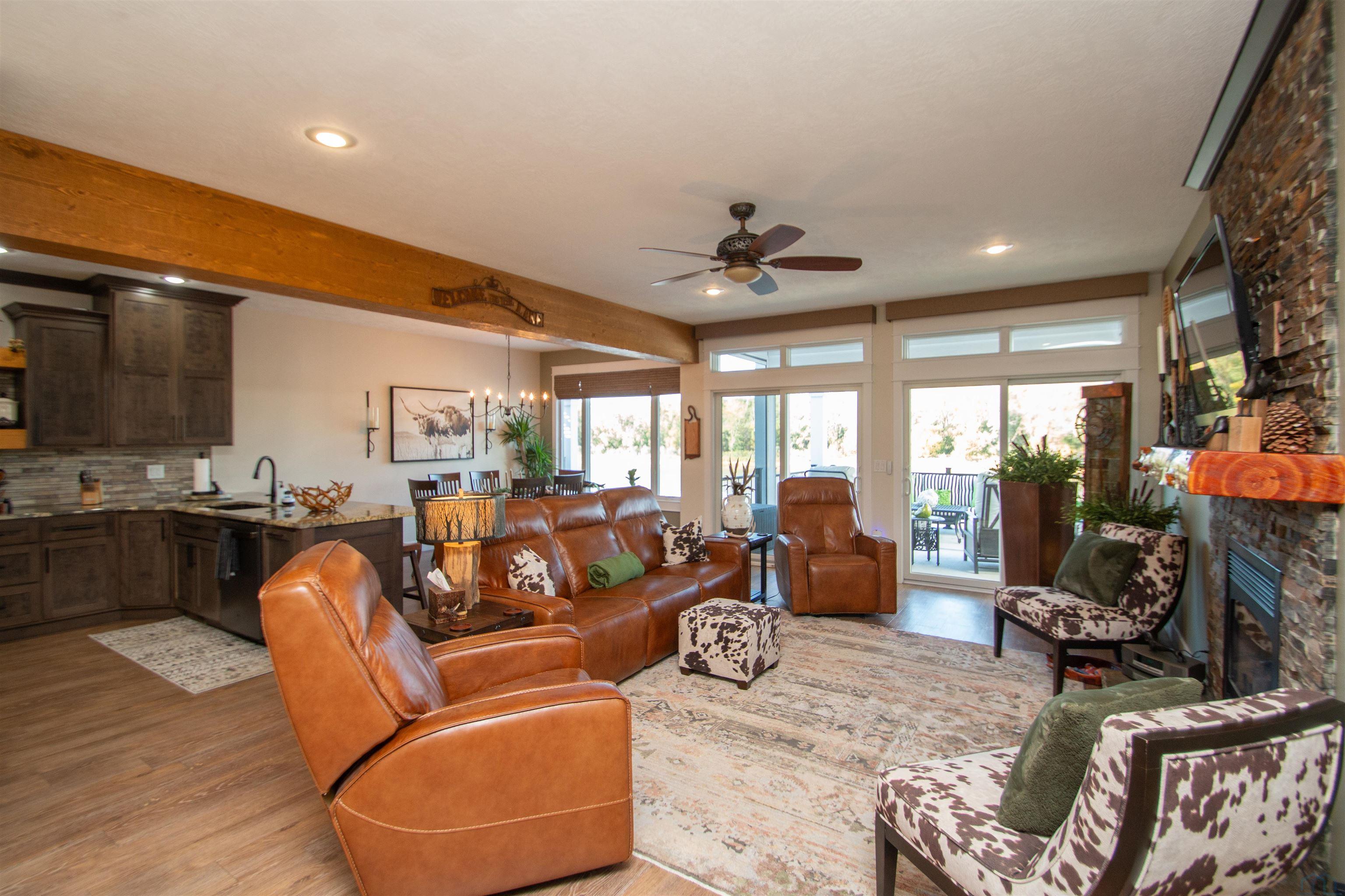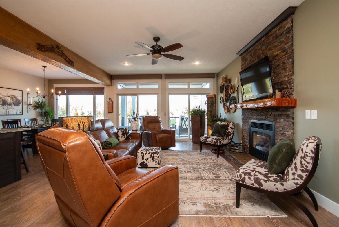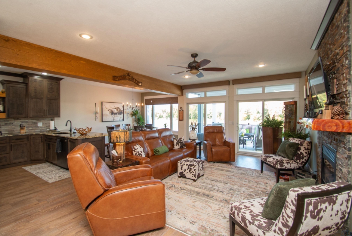 | Living | Main | 24 x 12 | gas fireplace, 2 sliders to concrete deck, lake views |