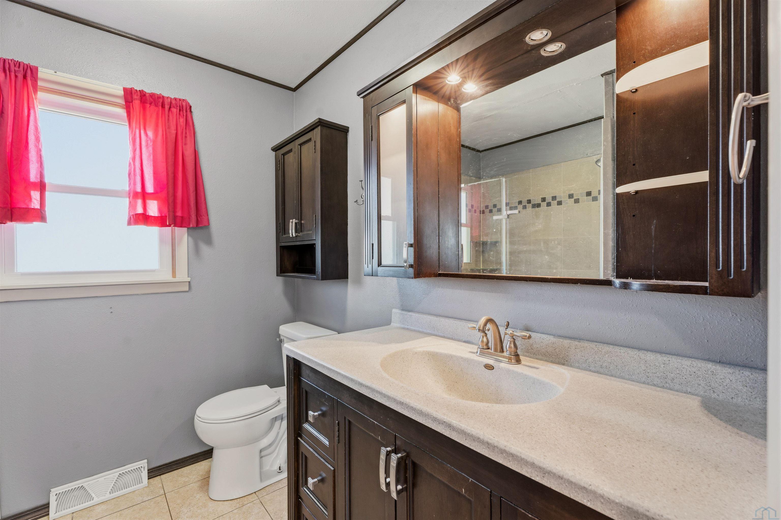 This home has a huge amount of common area: spacious living room, 416 square foot main floor family room and another 24×17 family room in basement. Buyer could easily make a 5th bedroom in basement because the egress window is already there. There is also an area for a 6th bedroom if desired. Large back yard would be easy to fence because neighbors have fences on 2 sides. Nicely updated kitchen with lots of cupboards and a pantry. Main floor laundry. Lots of closets and storage space. Easy to show.