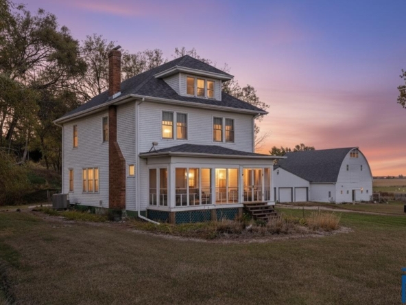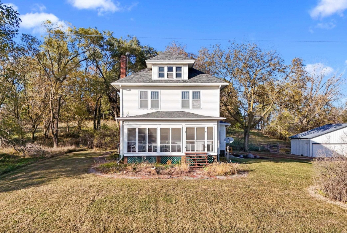 Acreage near Vermillion and Spirit Mound has everything you’re looking for: a large detached garage PLUS a barn with a newer roof with new decking, updated kitchen, laundry on the same floor as the bedrooms, front screened porch, original wood floors and built-ins, and 17.5 acres to roam! The main floor has an office/bedroom, half bath, Dining Room, Living Room with fireplace, and fantastic kitchen with back stairs to the bedrooms and laundry room upstairs. There are three bedrooms and a full bath upstairs, as well as a super-convenient laundry room. If you’ve ever dreamed of living in the country now is your chance!!