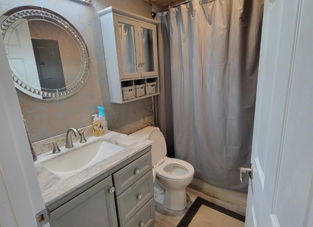 Full Bath | Main | 9x5 | Oversize tub, luxury vinyl plank flooring |