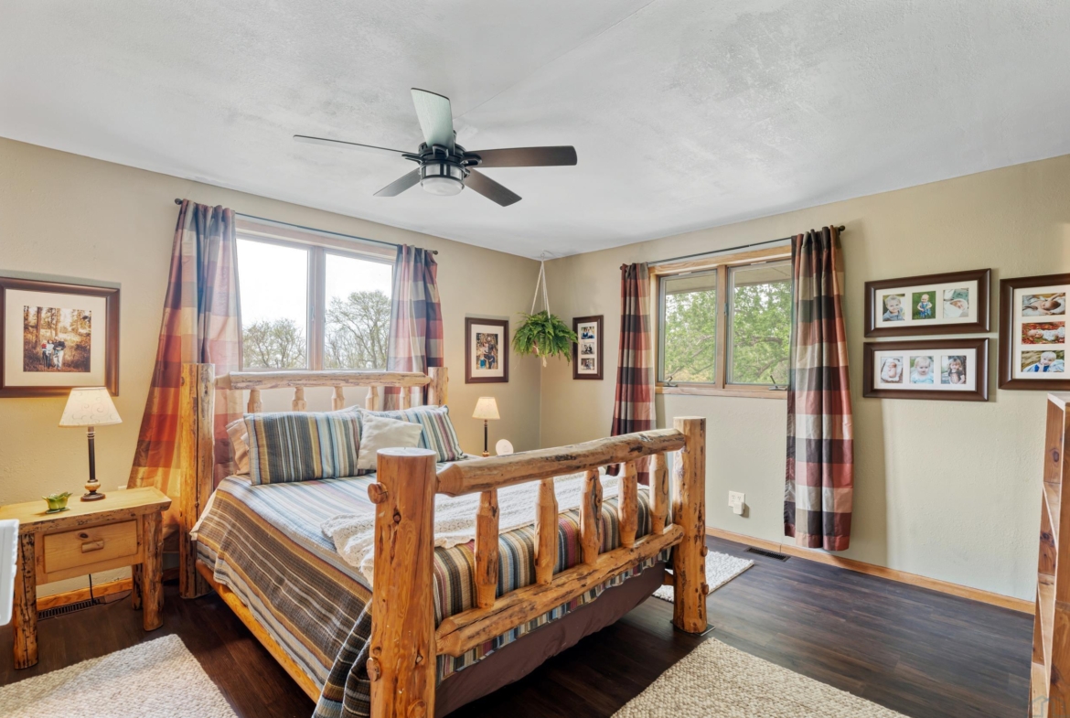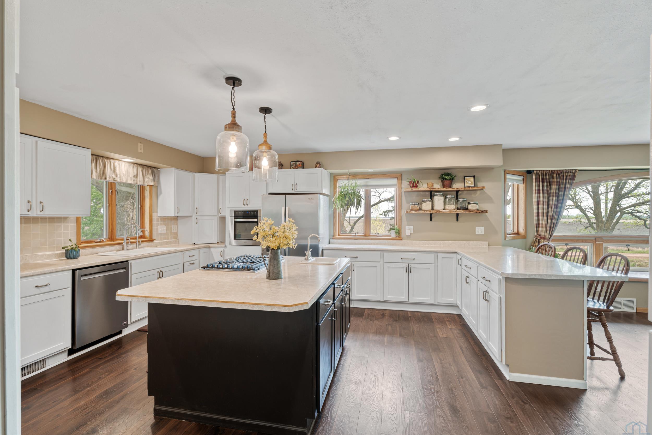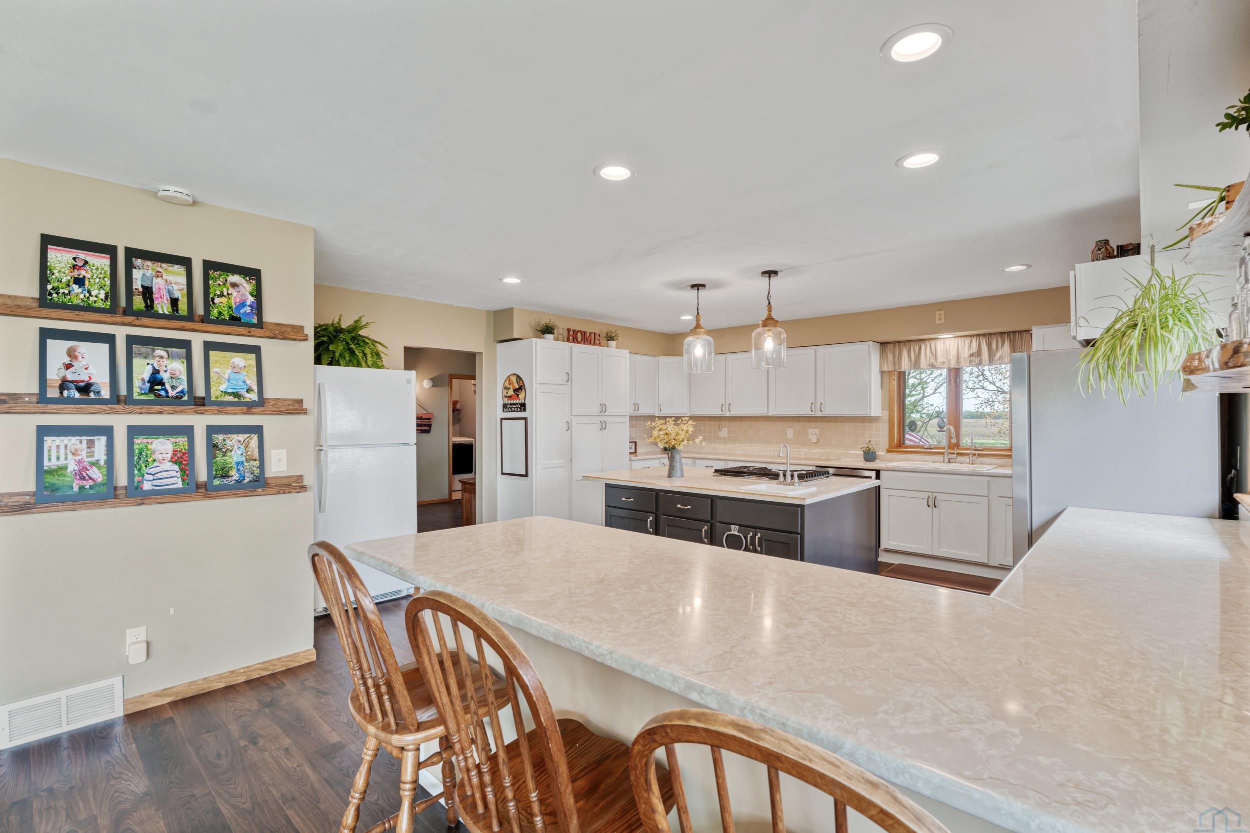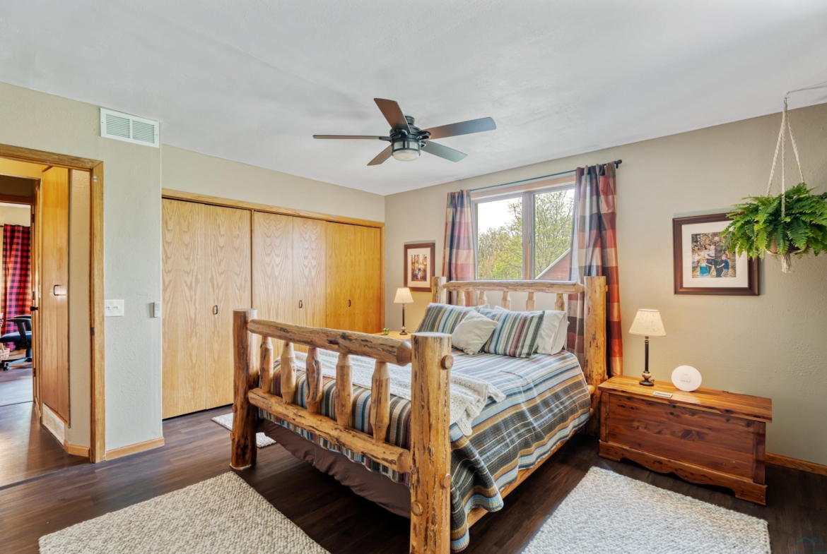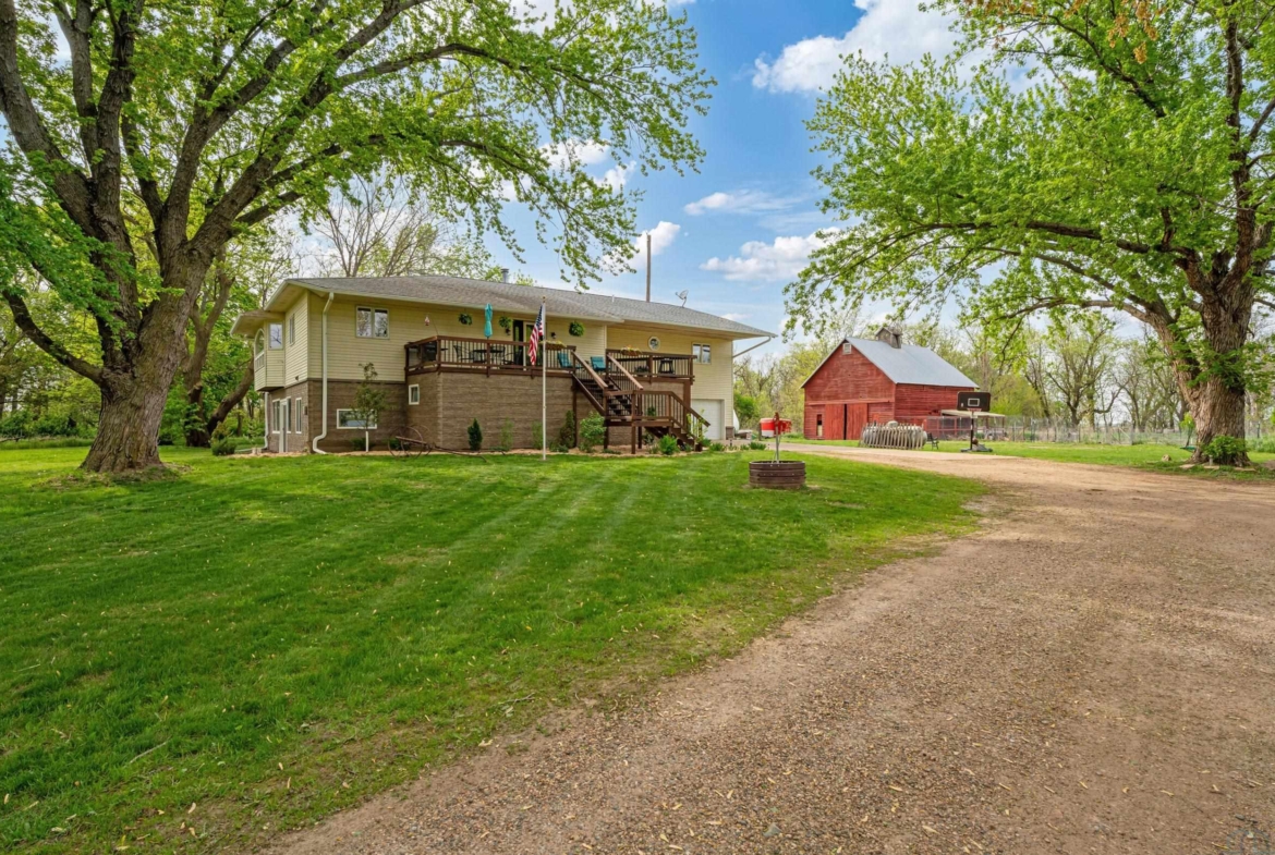 New roof in fall of 25! If you’ve been dreaming of an acreage that gives you room to breathe, grow, and unwind—but don’t want to overspend—then say hello to 46614 316th St. Priced below the assessed value, this 5-bedroom, 3-bathroom home is tucked into nearly 8 wooded acres of peace and privacy just minutes north of Vermillion. From the outside, it looks like the countryside retreat you’ve always imagined. Inside, it offers a thoughtful layout and room for everyone—with an open-concept upper level featuring a cozy gas fireplace, master suite, laundry, and three more bedrooms. The main level, fully above grade, adds even more flexibility with a second living room and two additional bedrooms that can easily convert to offices, creative spaces, or guest rooms. Need storage? The oversized 2-stall tuck-under garage has room to spare, and the extra shed and barn are ready for your gear, toys, or weekend projects. Step outside and you’re surrounded by a fruit tree orchard, berry bushes, shade trees, and nature, with a firepit, 3-season porch, and deck to enjoy every view. Two RV electrical hookups make it a perfect spot for guests. This is country living without compromise—complete with rural water, septic, and an uber-efficient GEOTHERMAL and heat pump system to keep things cozy year-round. It’s rare to find this much home, on this much land, for this kind of value. Don’t let this one slip by.