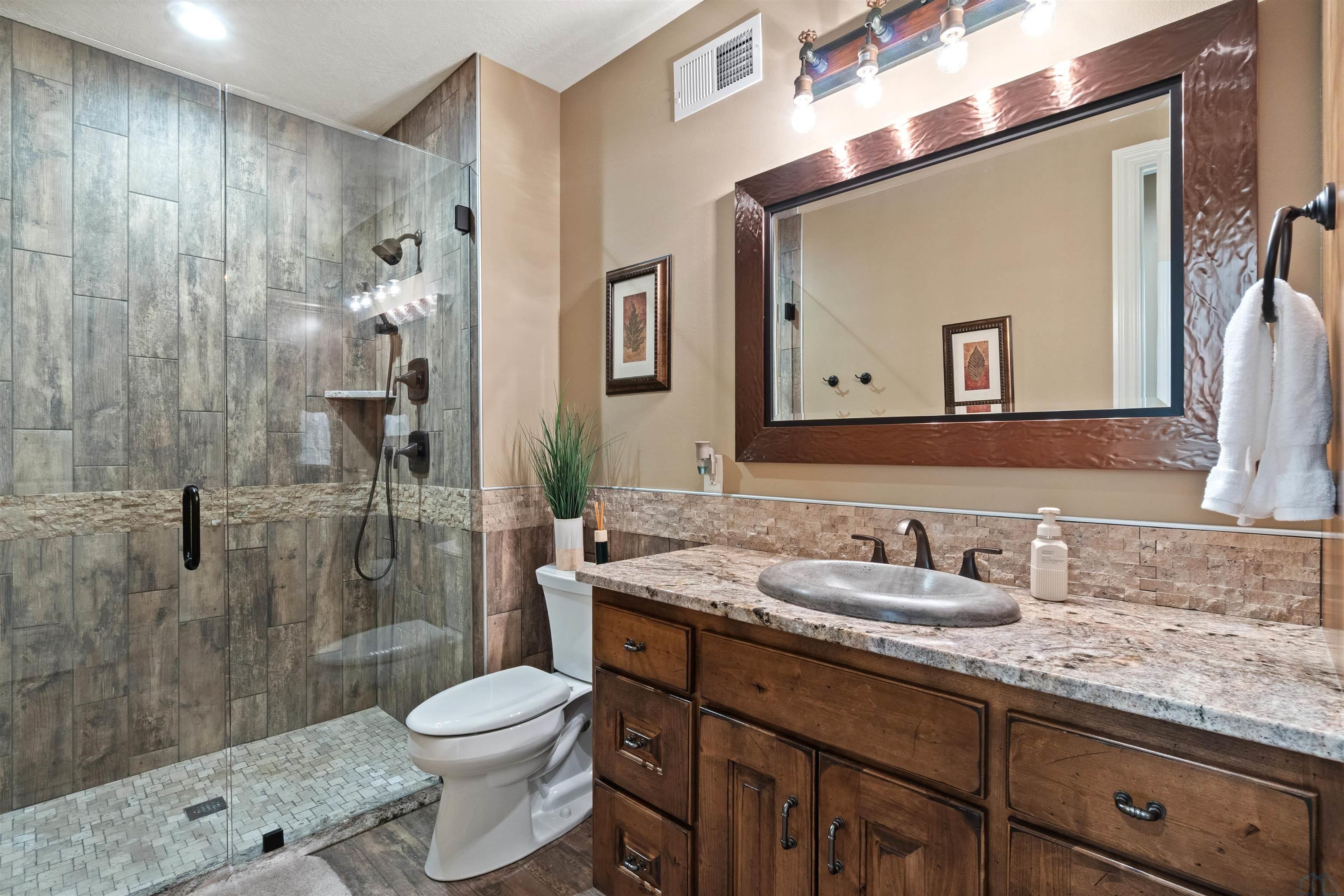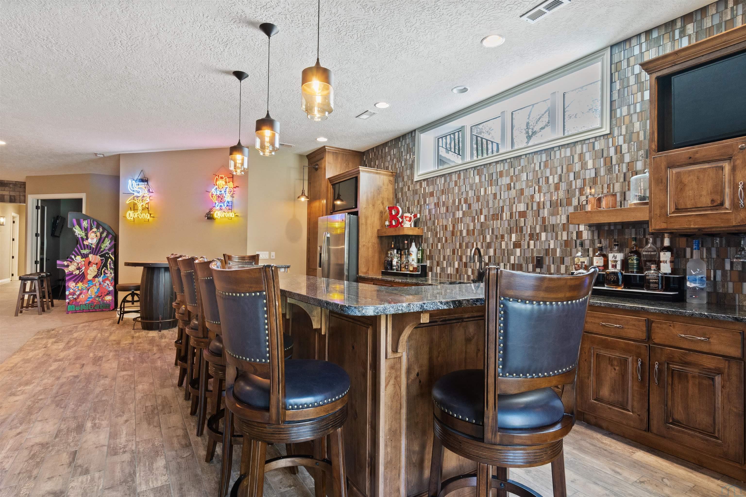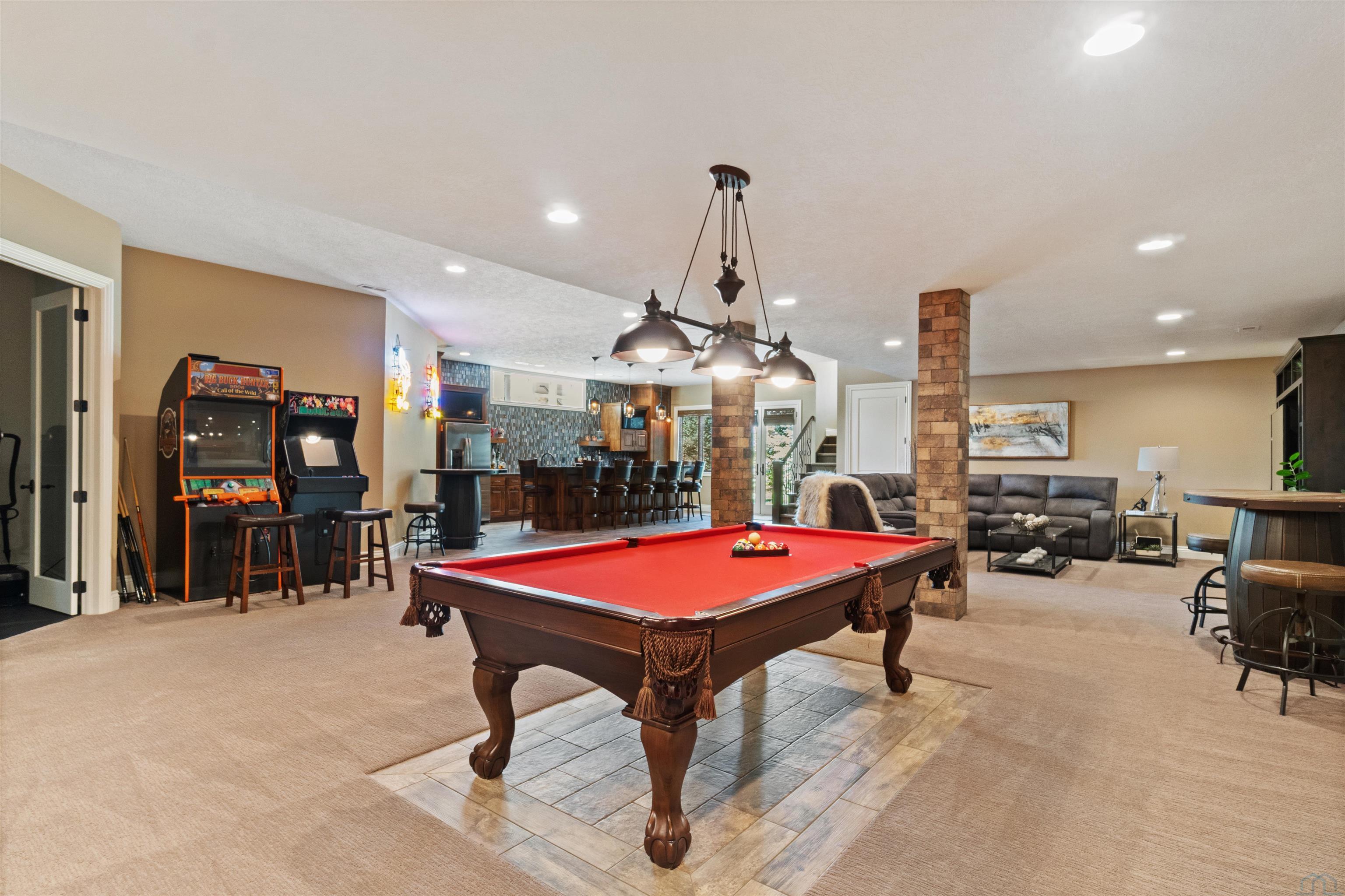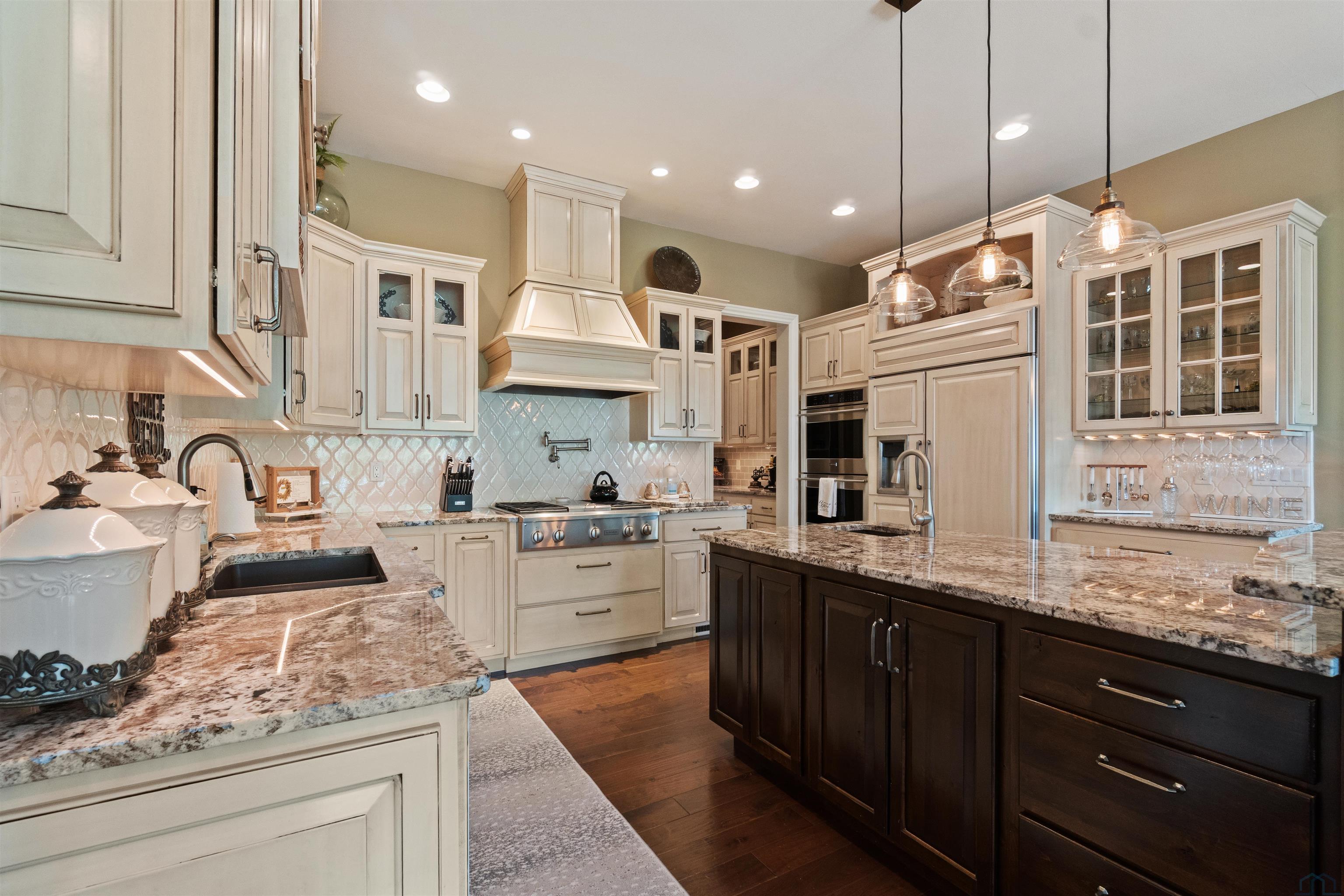 6 BD 7 BA 1 1/2 Story Home located in Dakota Dunes directly on Hole 15!!! Walk in to this truly amazing custom built home with close to 8,000 sq ft of finished, detailed perfection! Design is in the detail on this one!! Beautiful and functional around every corner! Detailed to perfection and spotlessly cared for through and through! This beautiful home with amazing views and great elevation is located just off The Dakota Dunes Golf Course but has plenty of privacy. The spacious main floor includes formal living and dining space, gourmet kitchen with large island and pass through pantry, large family room, master suite to die for with luxurious bath and large closet. The laundry/drop zone off the garage is well thought out, spacious and very well organized! The upper level has an additional living area, two mini suites and a convenient second laundry room. Just when you think you’ve seen it all, the lower level has a full bar, entertainment area, family room, workout room, two more bedrooms and tons of storage space. The resort like backyard is a get away in itself!! 20×46 in ground, salt water pool and outdoor cabana with bath and every amenity you can think of!