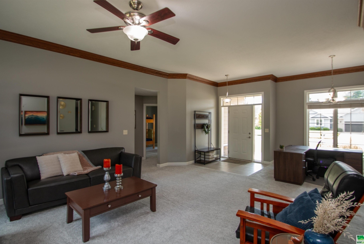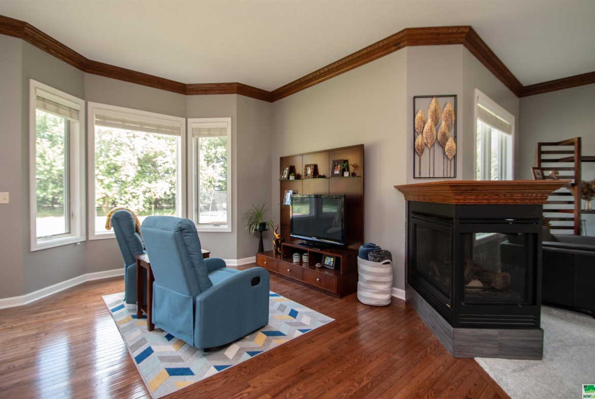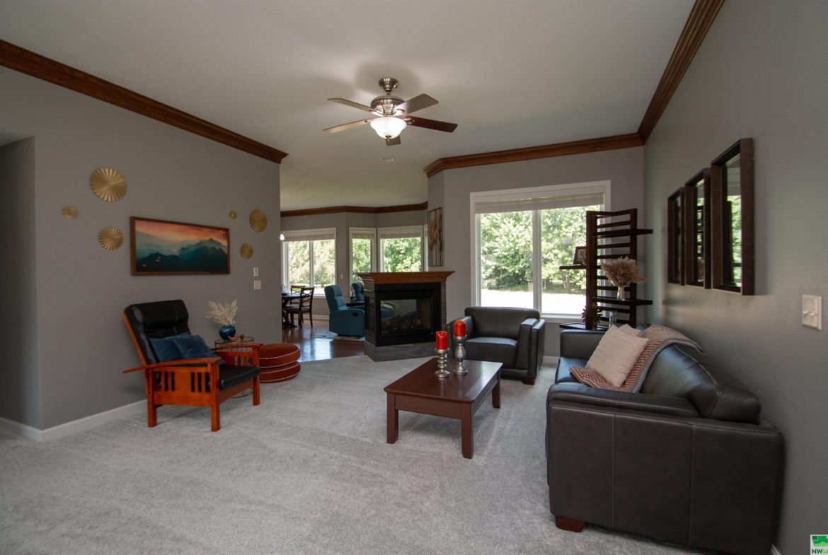 LivingMain15 x 19new carpet, crown molding, 3 sided FP