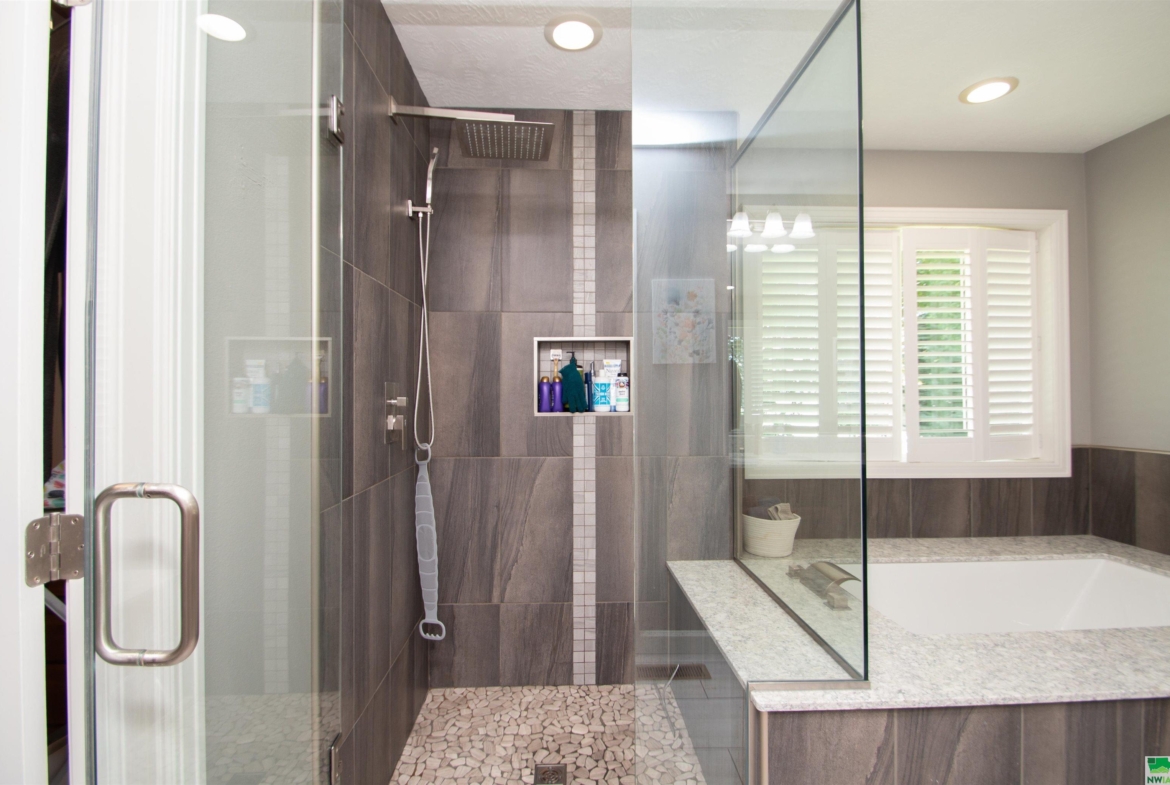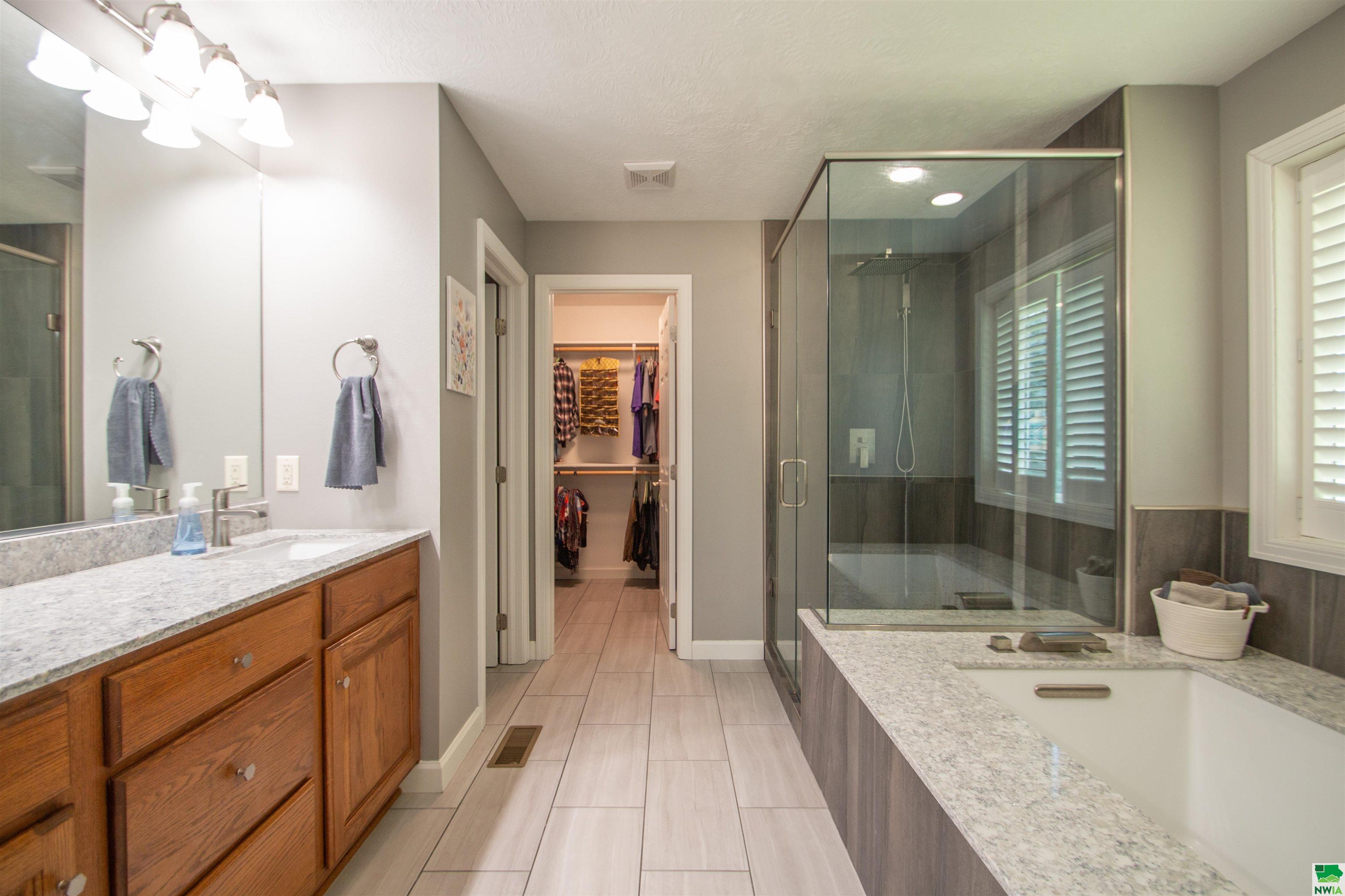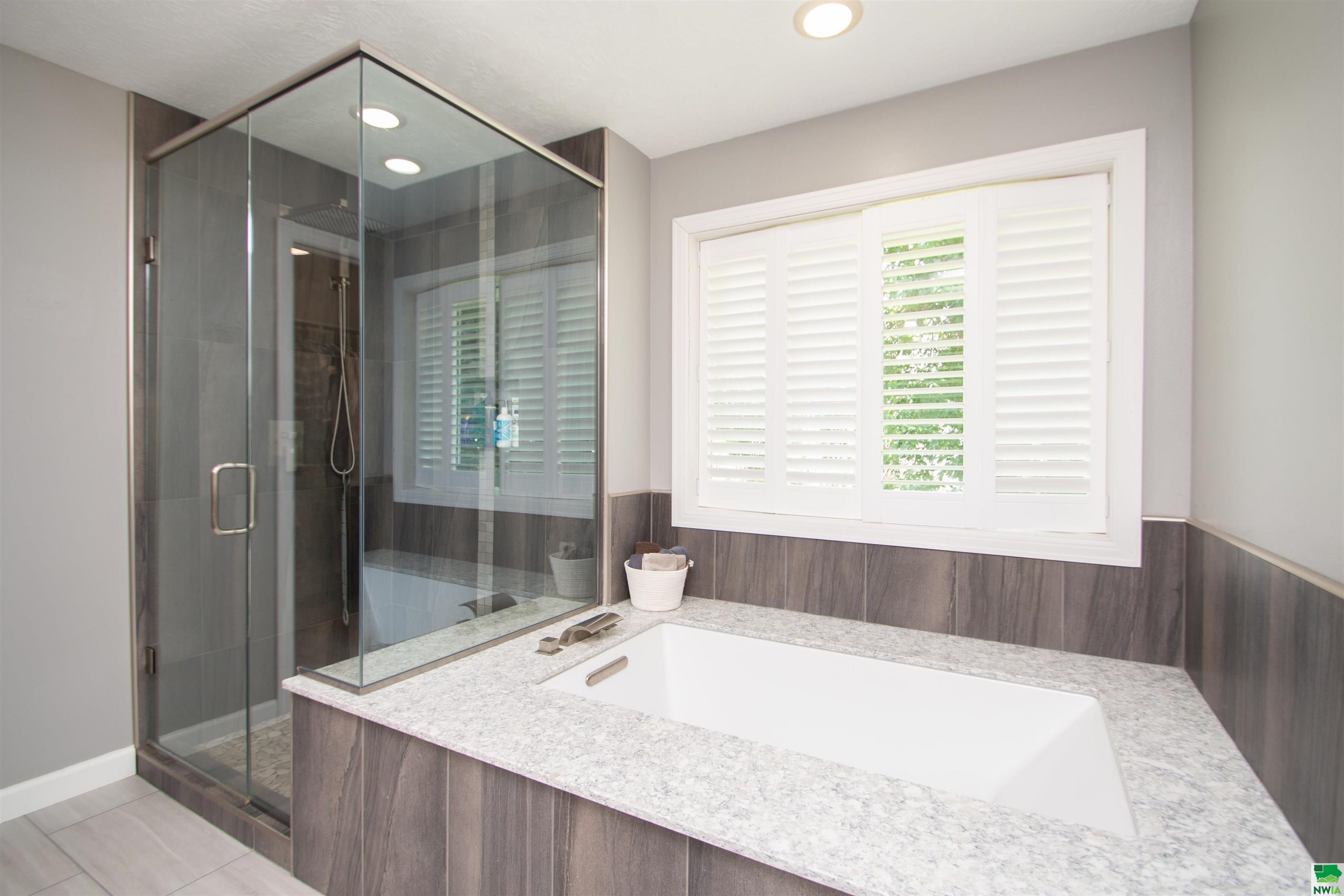 Full BathMain10 x 10updated, dbl vanity, soaking tub, tile shower, new tile flr