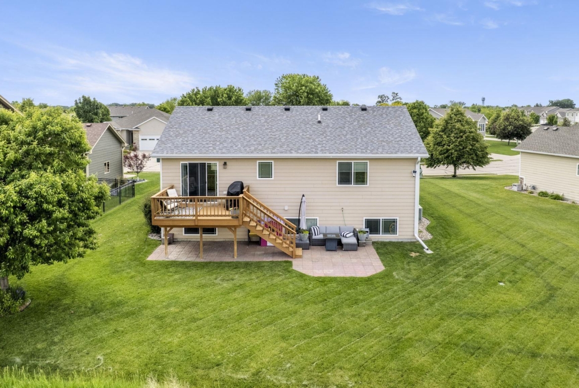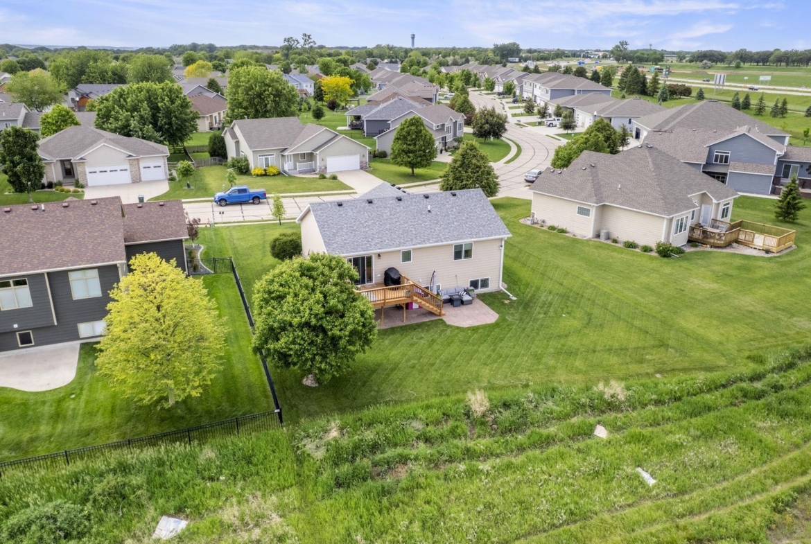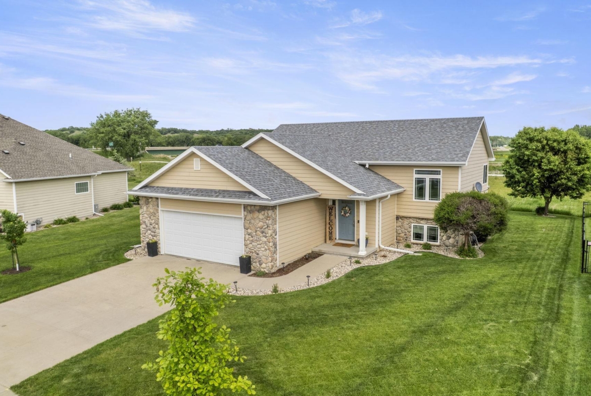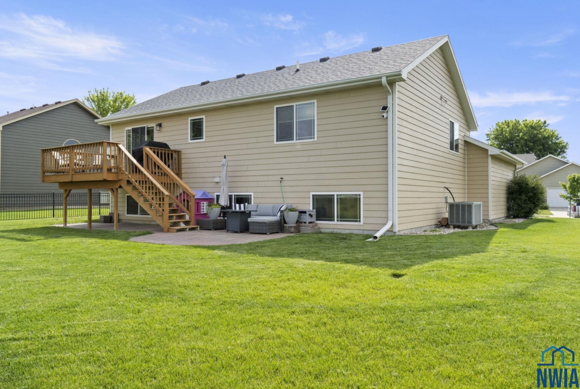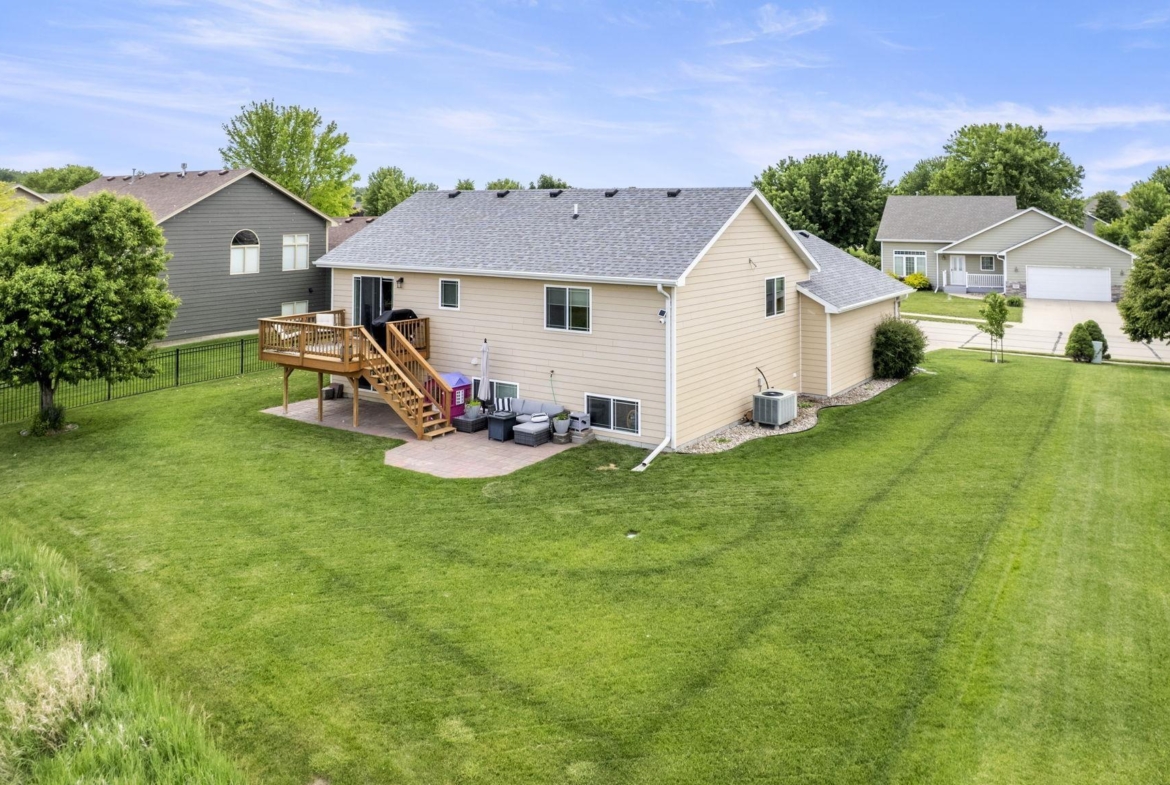 Welcome to this stunning 4-bedroom, 3-bath home located in the desirable Prairie neighborhood of Dakota Dunes. Built in 2009 and thoughtfully updated, this home combines comfort, style, and serene privacy with no backyard neighbors—just open views and peaceful surroundings. Step inside to an inviting open-concept main floor with vaulted ceilings, creating a bright and airy atmosphere perfect for both everyday living and entertaining. The heart of the home is the tastefully updated kitchen, featuring granite countertops, a center island, and ample cabinet space—ideal for any home chef. The spacious primary suite offers a relaxing retreat with generous dimensions and an ensuite bath. All bedrooms in the home are comfortably sized, and most feature walk-in closets for added convenience. The lower level offers even more living space with a cozy family room and a custom bar nook—perfect for entertaining guests or enjoying a night in. Step outside and experience true tranquility. The backyard offers both a beautiful deck and a newly added patio area, creating two separate outdoor living spaces ideal for relaxation or hosting friends. Don’t miss this opportunity to own a move-in-ready home with modern updates and unmatched backyard privacy in one of Dakota Dunes’ most sought-after neighborhoods.
