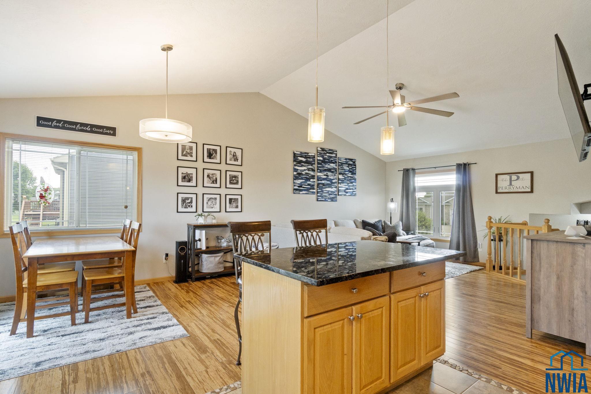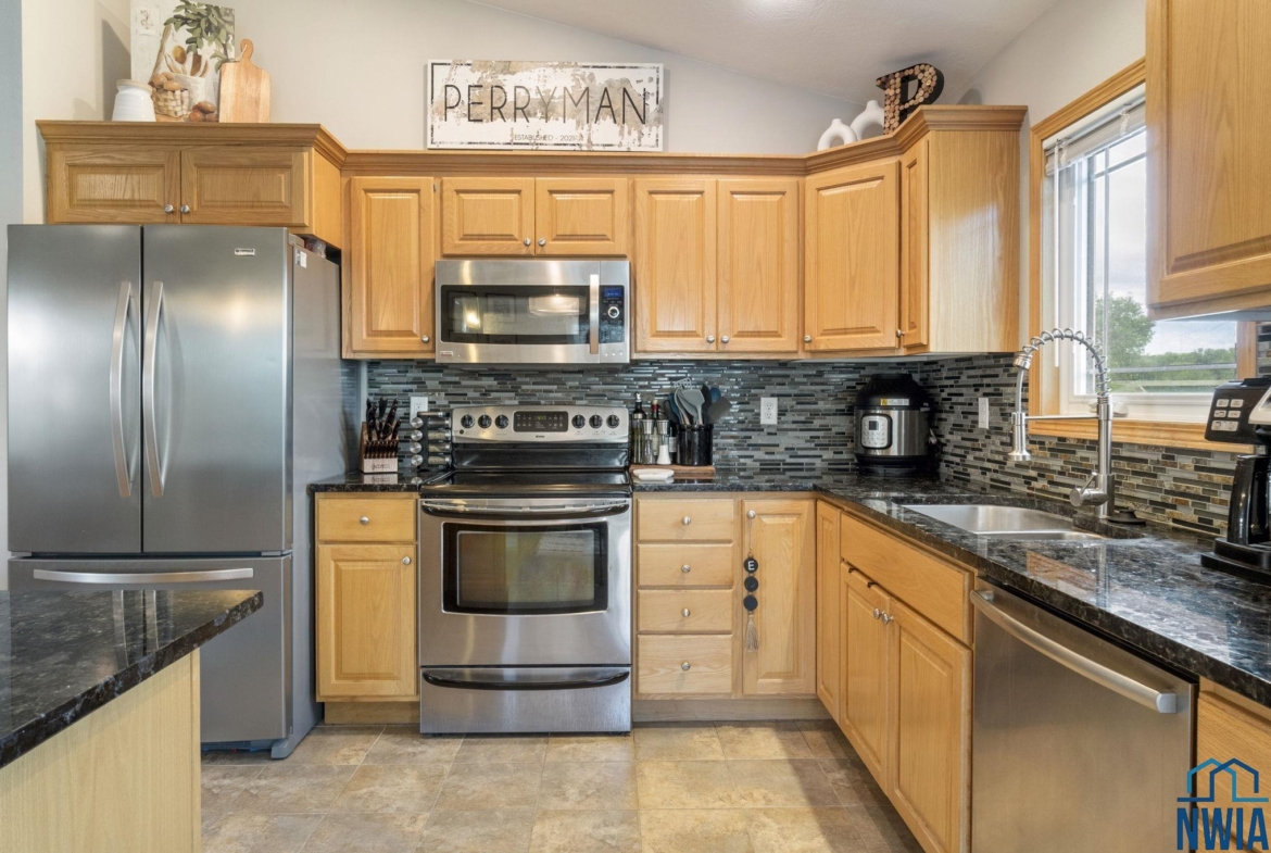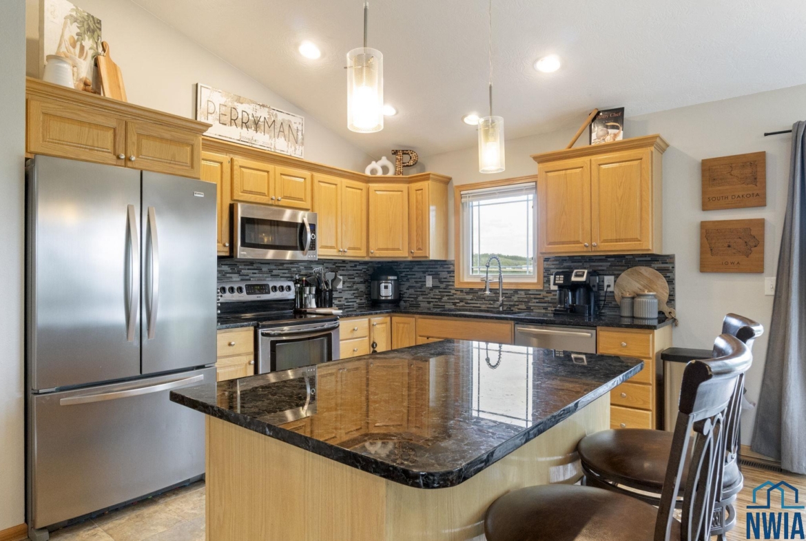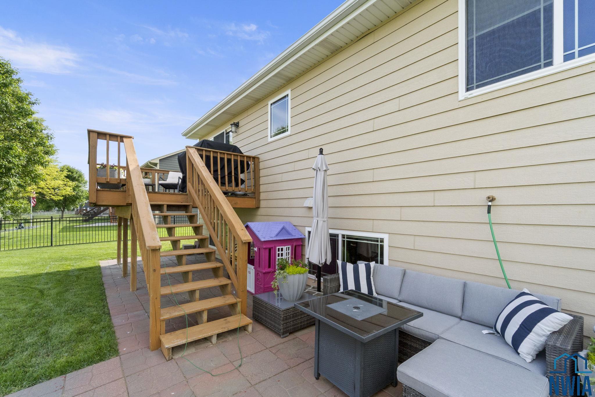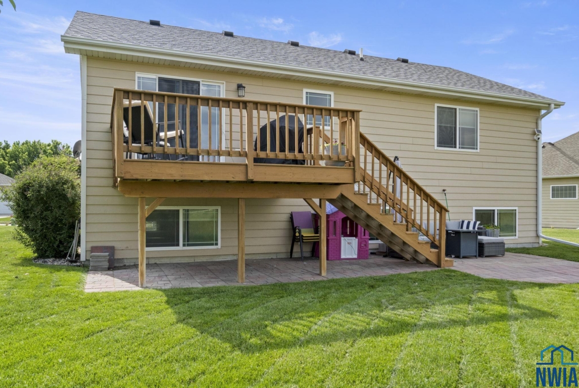 Welcome to this stunning 4-bedroom, 3-bath home located in the desirable Prairie neighborhood of Dakota Dunes. Built in 2009 and thoughtfully updated, this home combines comfort, style, and serene privacy with no backyard neighbors—just open views and peaceful surroundings. Step inside to an inviting open-concept main floor with vaulted ceilings, creating a bright and airy atmosphere perfect for both everyday living and entertaining. The heart of the home is the tastefully updated kitchen, featuring granite countertops, a center island, and ample cabinet space—ideal for any home chef. The spacious primary suite offers a relaxing retreat with generous dimensions and an ensuite bath. All bedrooms in the home are comfortably sized, and most feature walk-in closets for added convenience. The lower level offers even more living space with a cozy family room and a custom bar nook—perfect for entertaining guests or enjoying a night in. Step outside and experience true tranquility. The backyard offers both a beautiful deck and a newly added patio area, creating two separate outdoor living spaces ideal for relaxation or hosting friends. Don’t miss this opportunity to own a move-in-ready home with modern updates and unmatched backyard privacy in one of Dakota Dunes’ most sought-after neighborhoods.