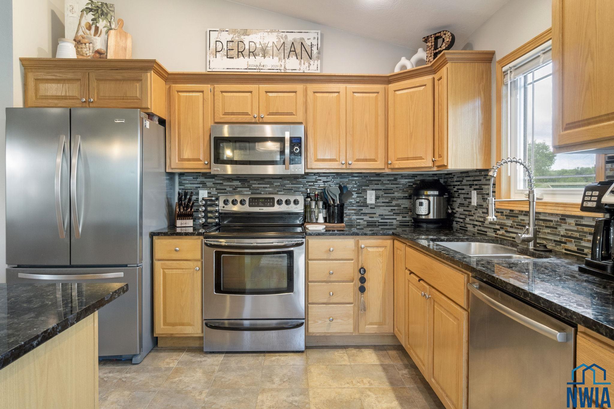 KitchenMain9x11Tile flooring, island with granite counters, backsplash