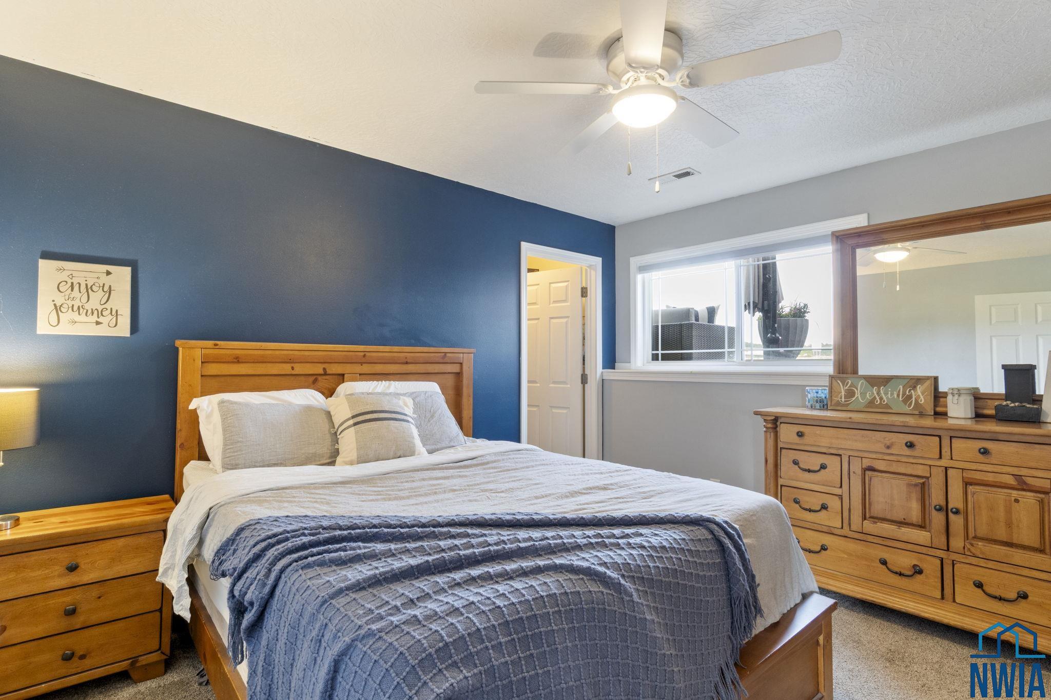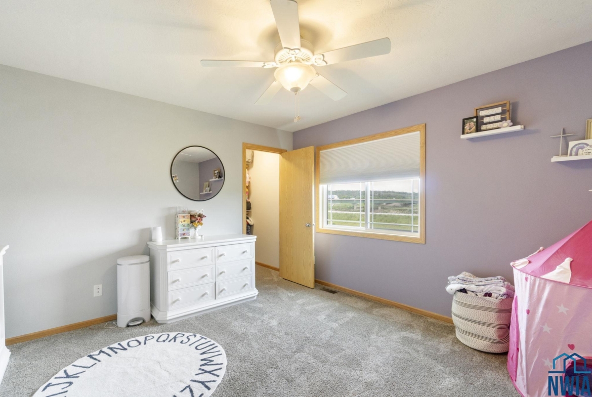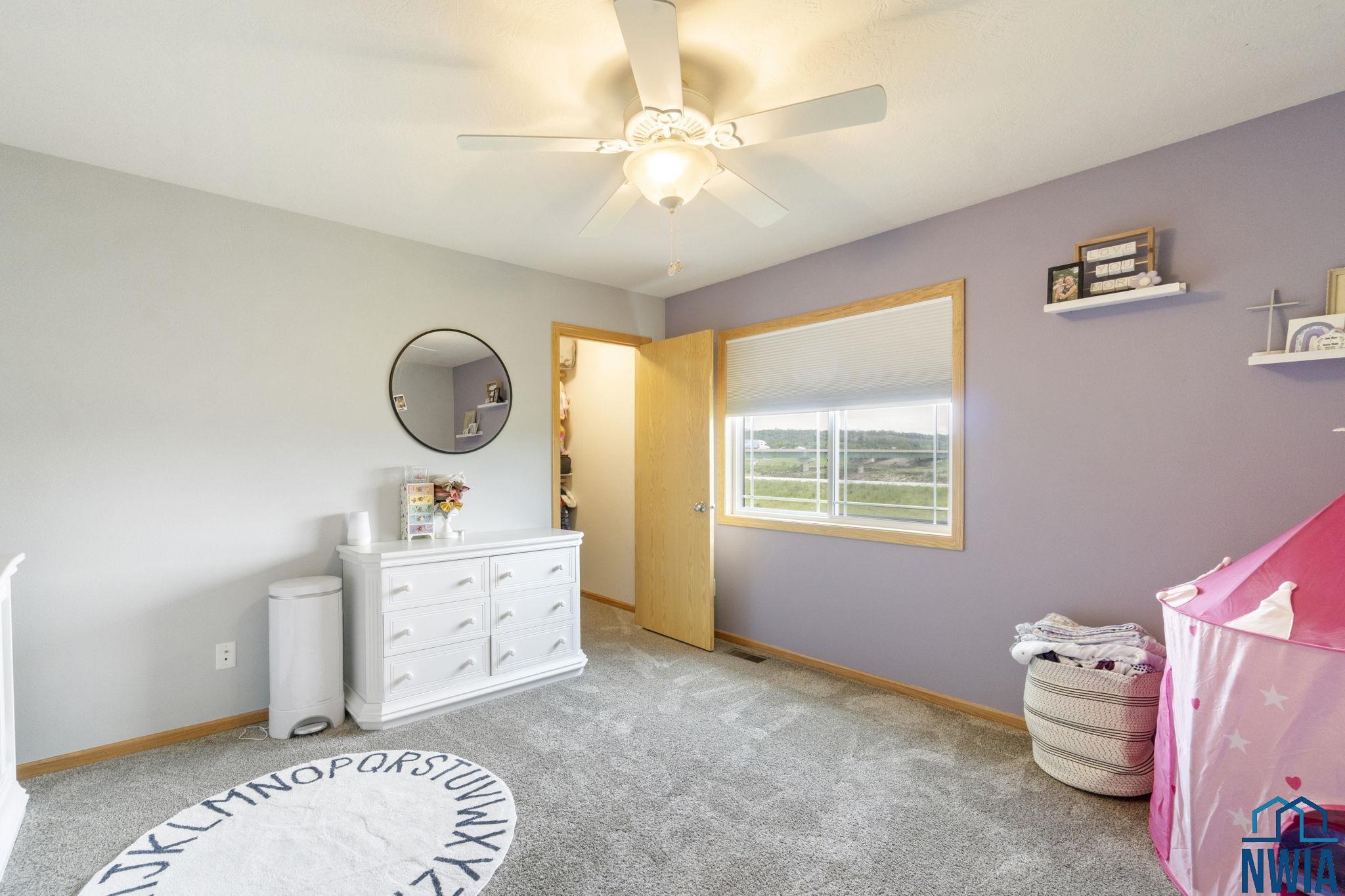 BedroomBasement10x11WIC, carpet, ceiling fan, egress window