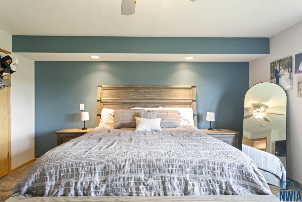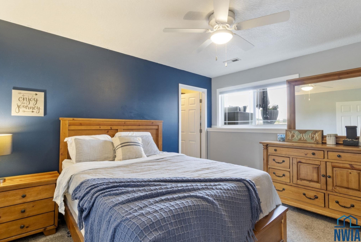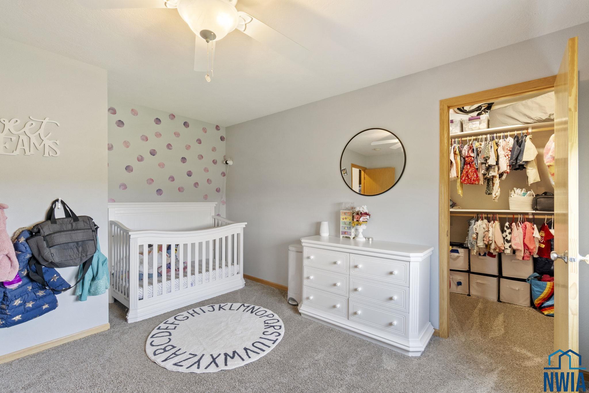BedroomBasement10x11WIC, carpet, ceiling fan, egress window