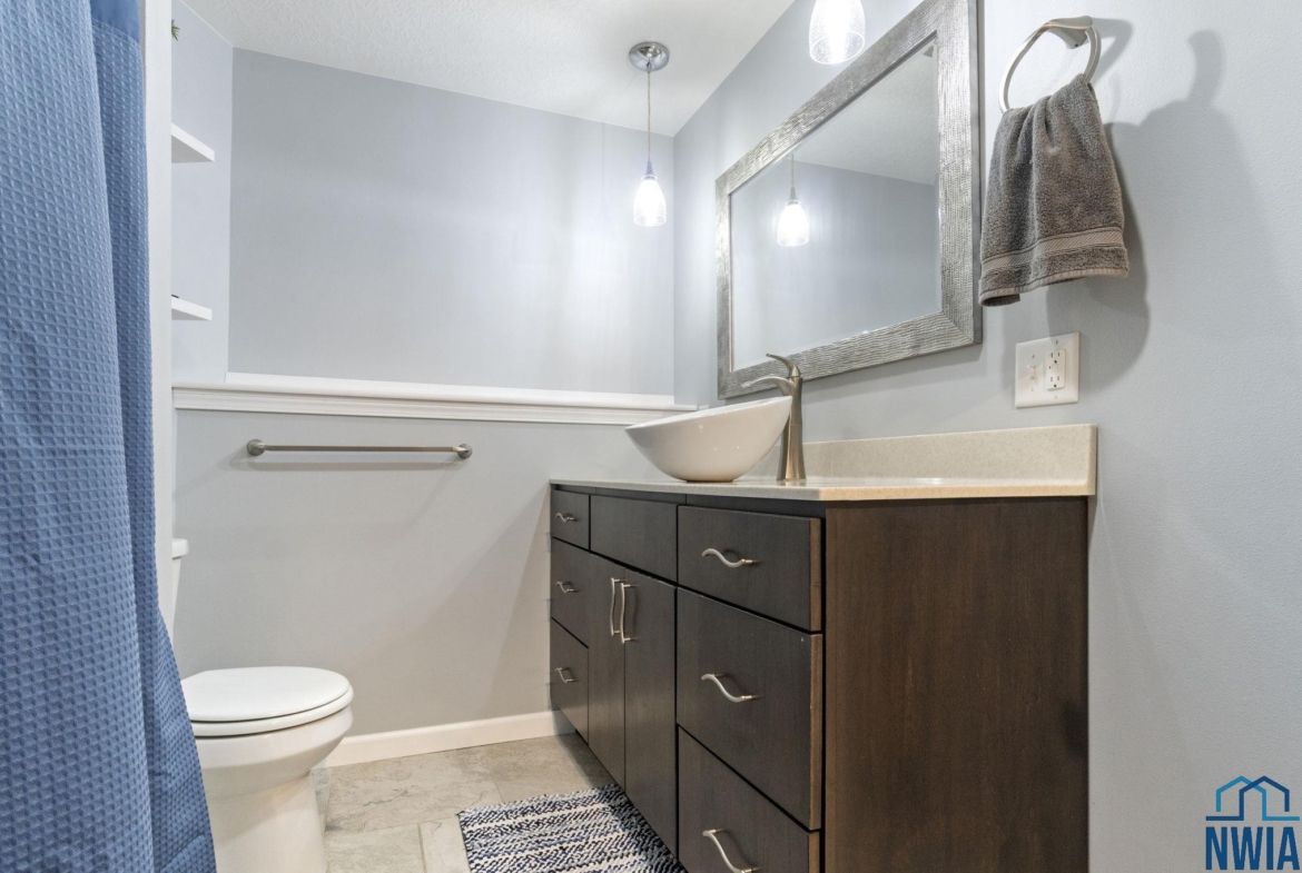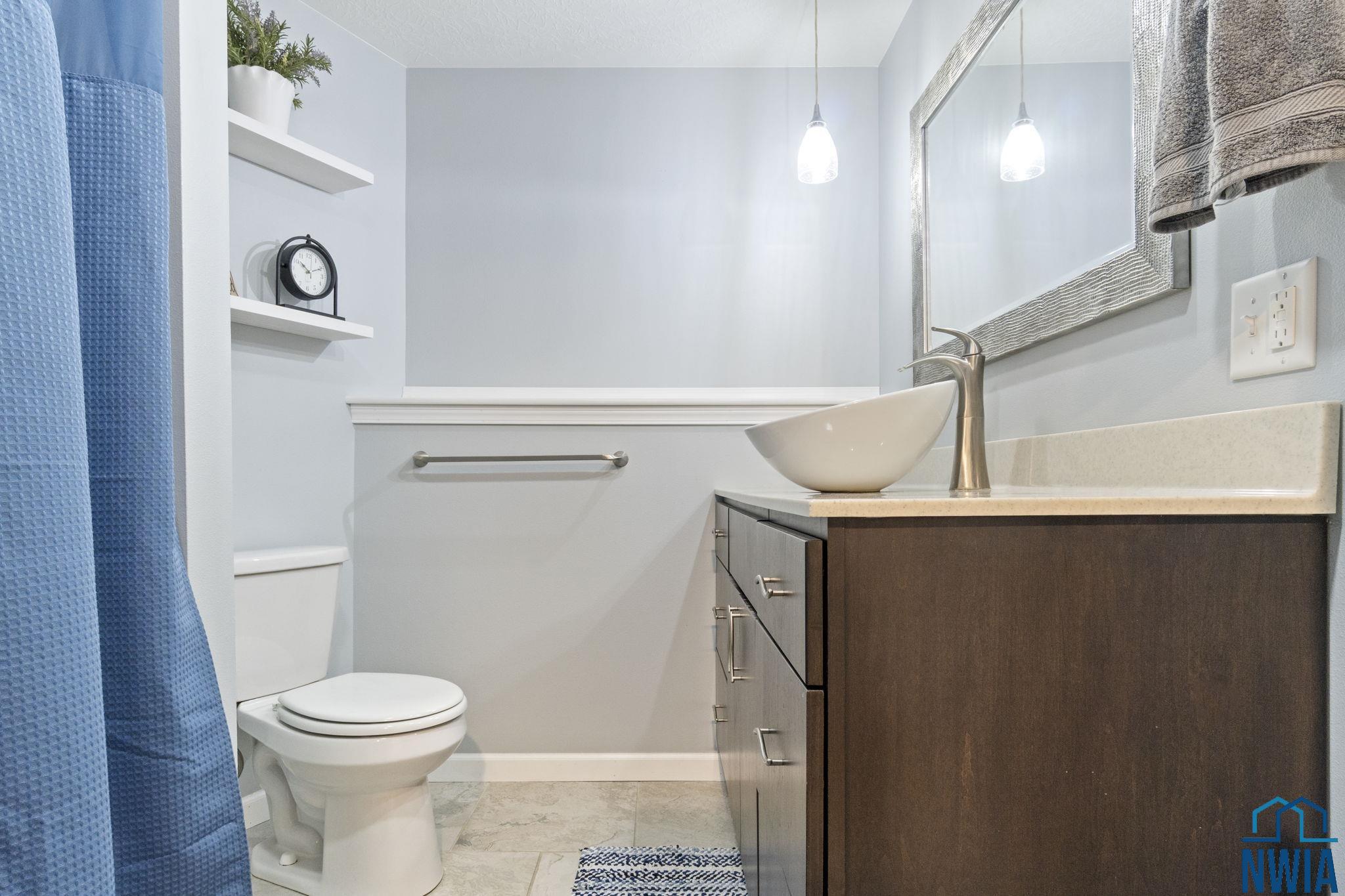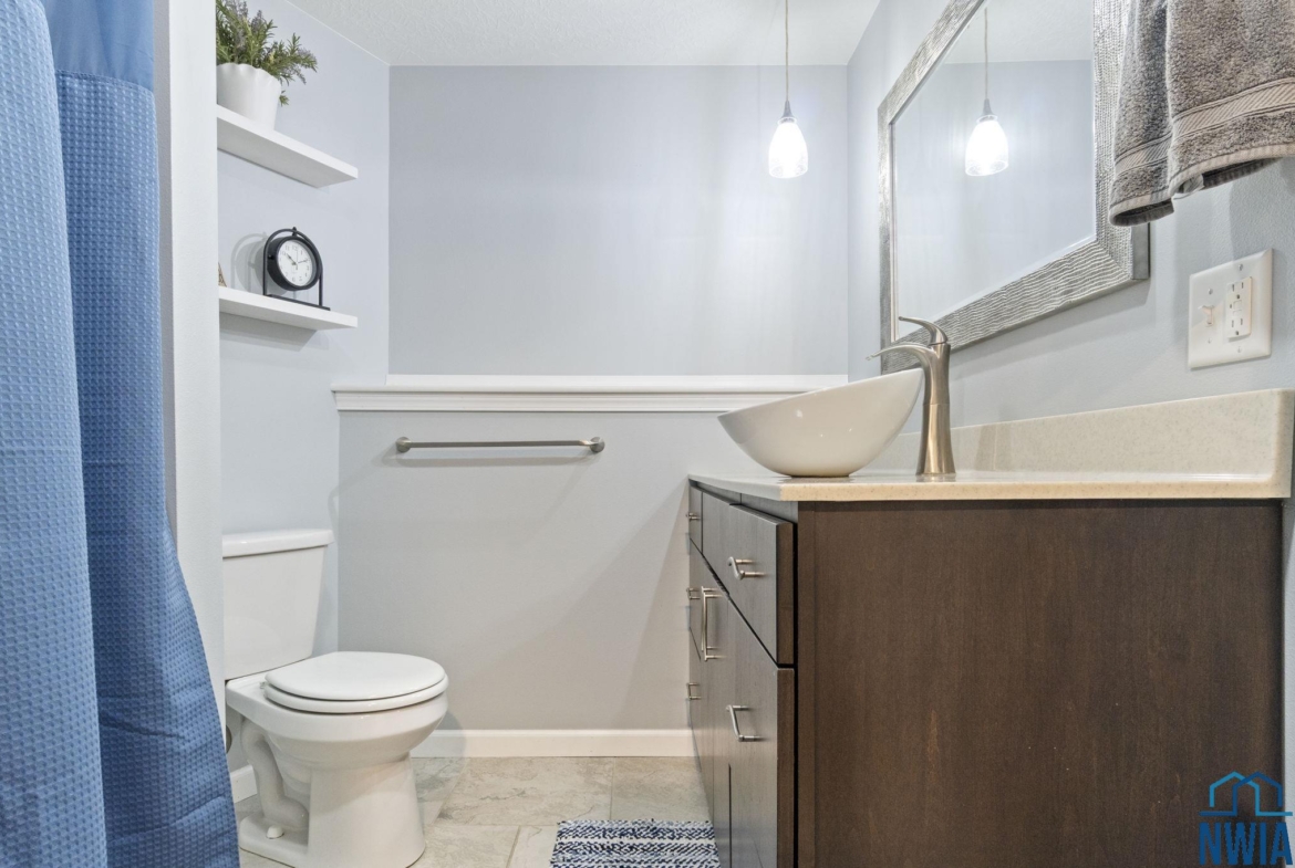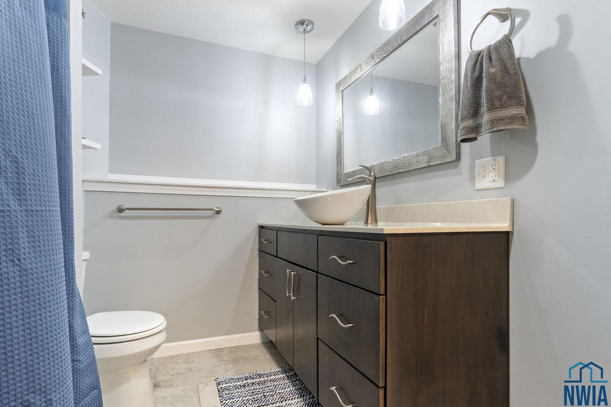 Full BathBasement9x6Tile floor, modern raised sink bowl, tub/shower combo