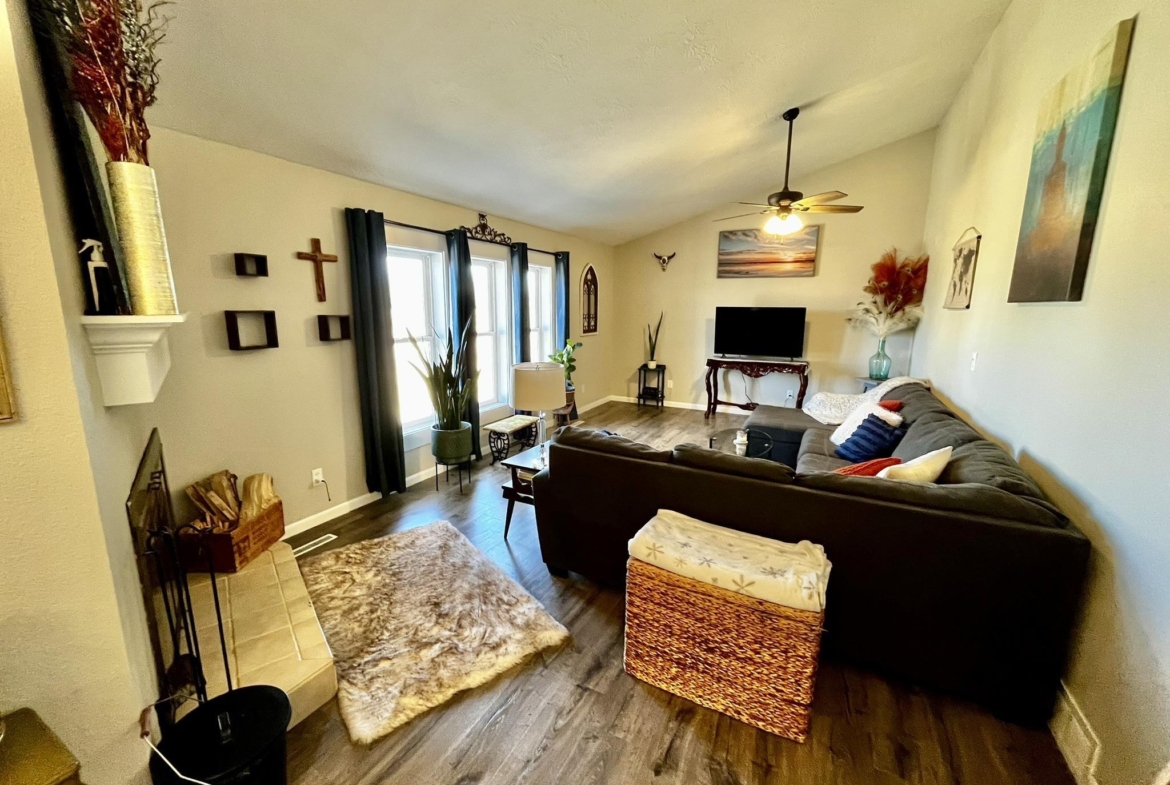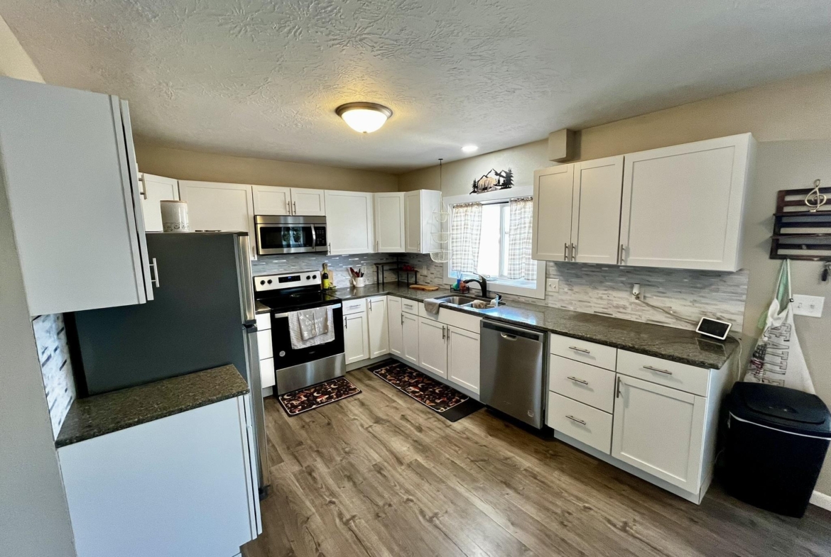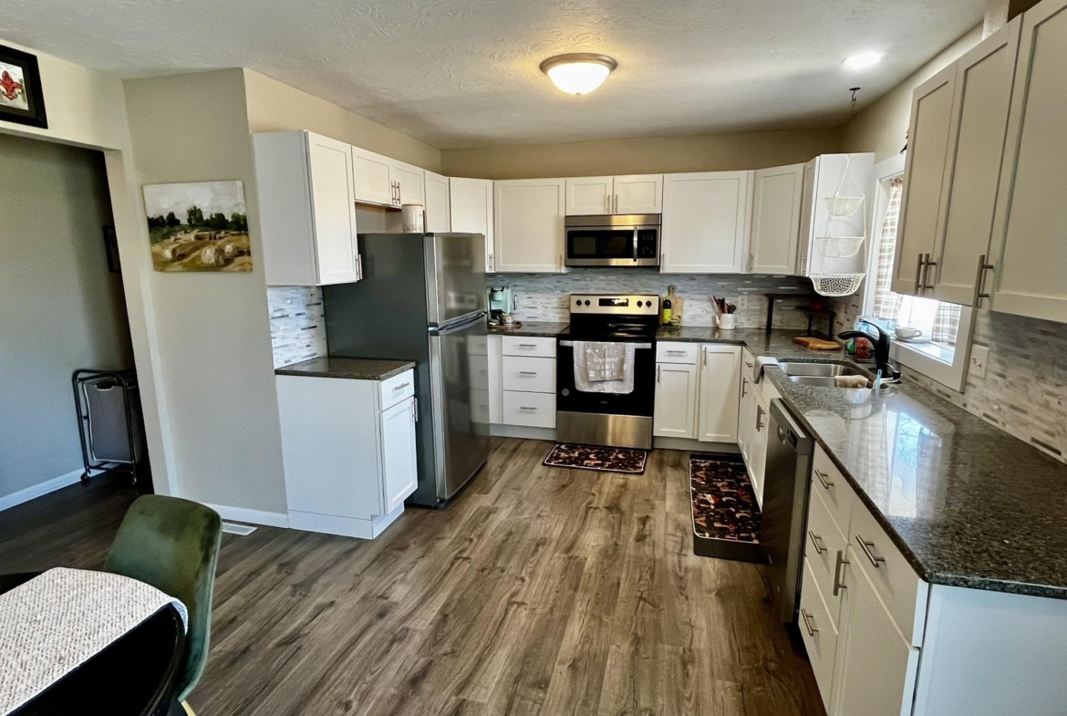 Come check out this rare in town acreage! Sitting on 1 acre, this property has so much to offer. Completely updated interior, new roof, fenced yard and plenty of space to add a large detached garage! The main floor boasts a spacious living room with ample natural light and a wood burning fireplace. The dining and kitchen share an open concept with a slider to the wood deck. The kitchen has been updated with white shaker cabinets, quartz tops, matching appliances and The master bedroom has dual double closets and a master bath. Both main floor bedrooms have double closets and share a full bath. The laundry is also conveniently located on the main floor. Downstairs you’ll find a large multi purpose room whether it be a bedroom, family or rec room. This room has daylight windows providing lots of natural light. A den in the lower level also could be a craft room, office or fifth bedroom with the addition of an egress window. A double closet is already in place. The 3/4 bath in the lower level is also conveniently located off the garage and basement living spaces. Don’t wait on this one!