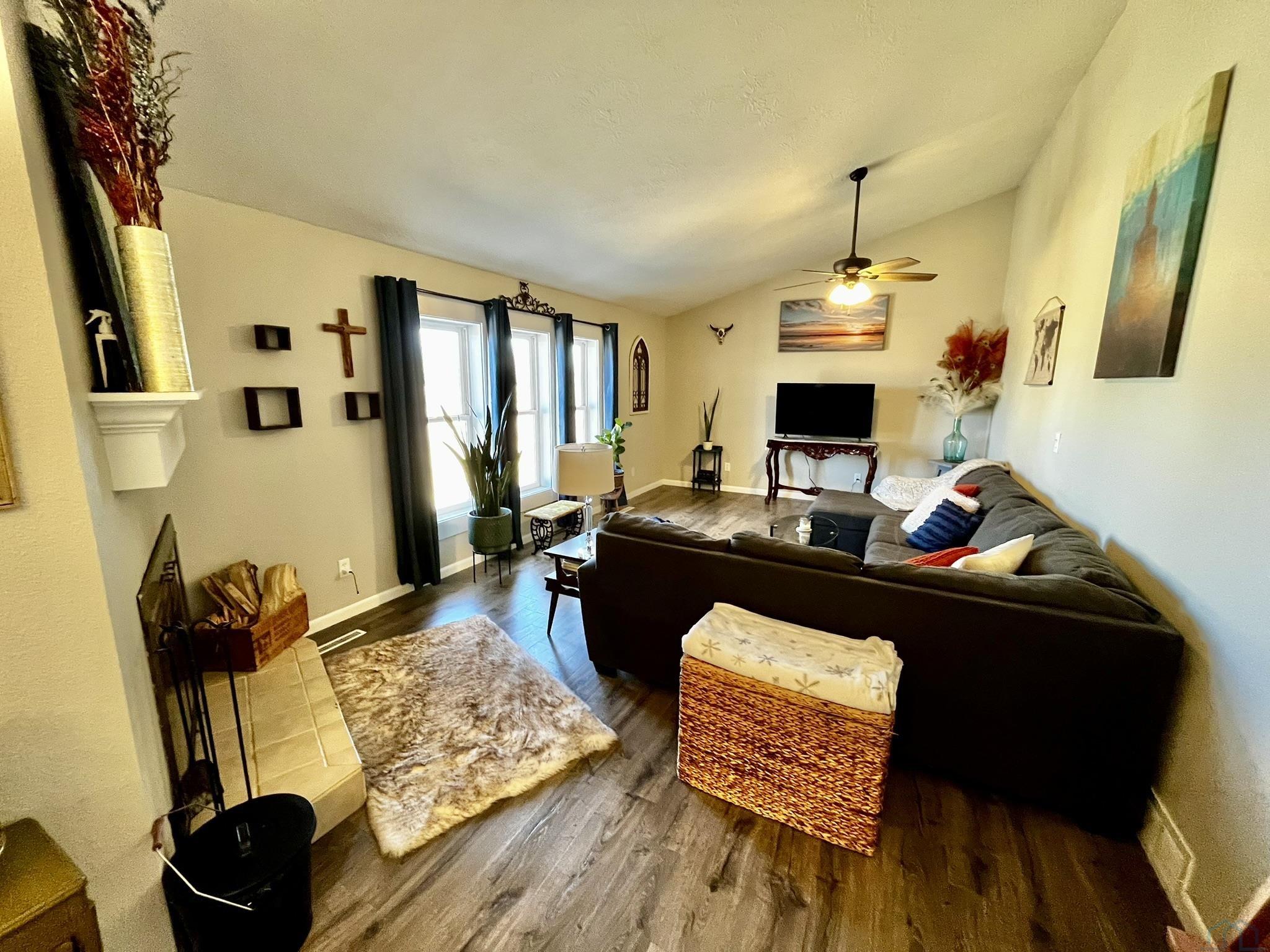 | Living | Main | 23'6X13'2 | vinyl plank floor, wood burning fireplace, large window |