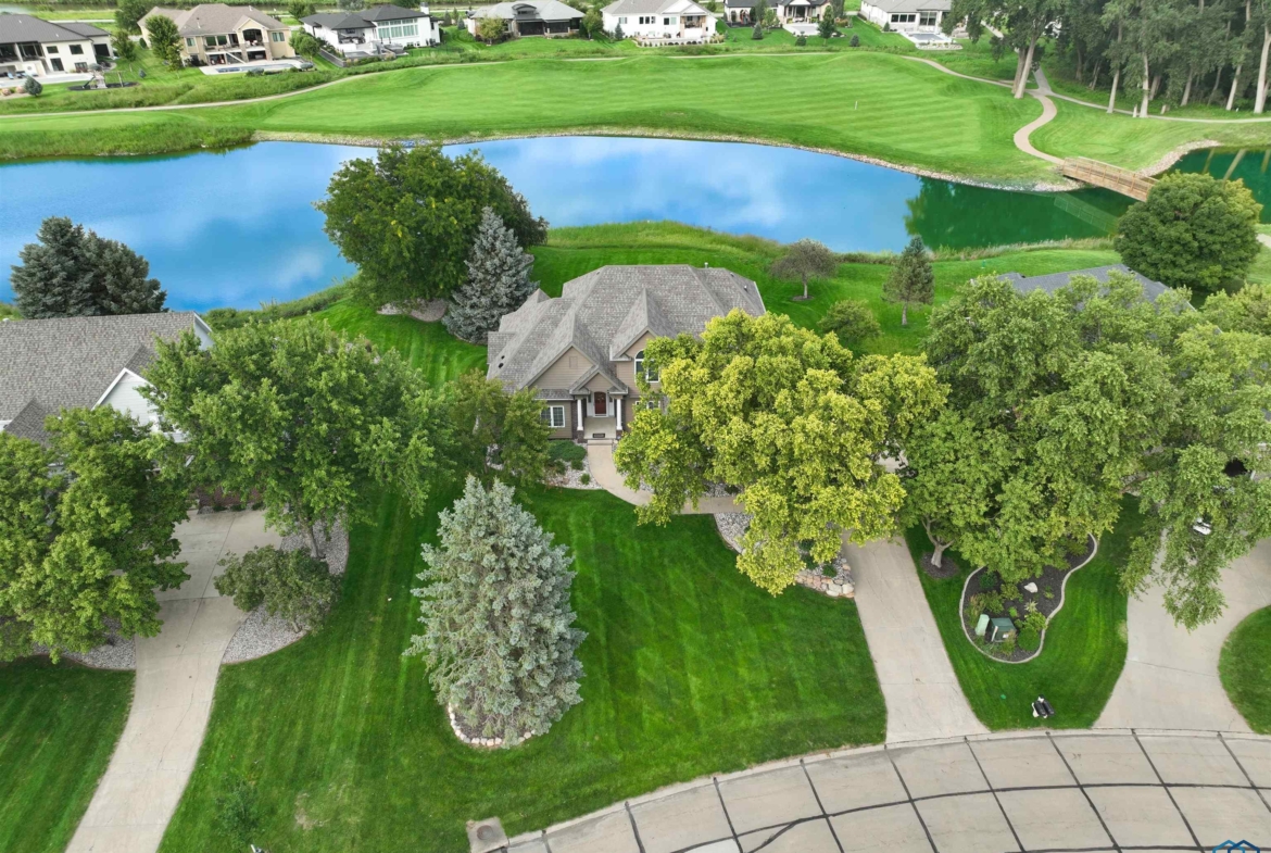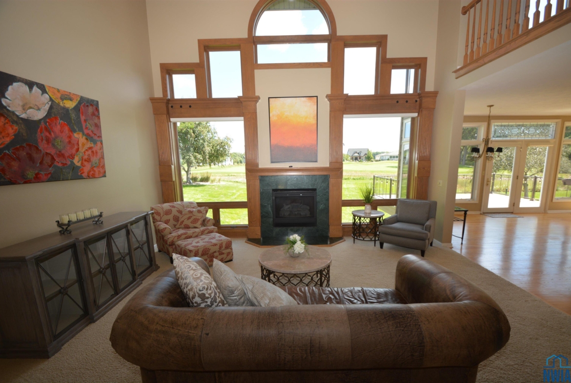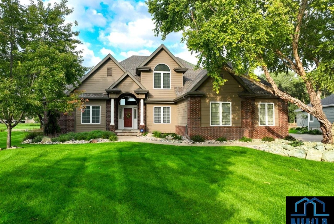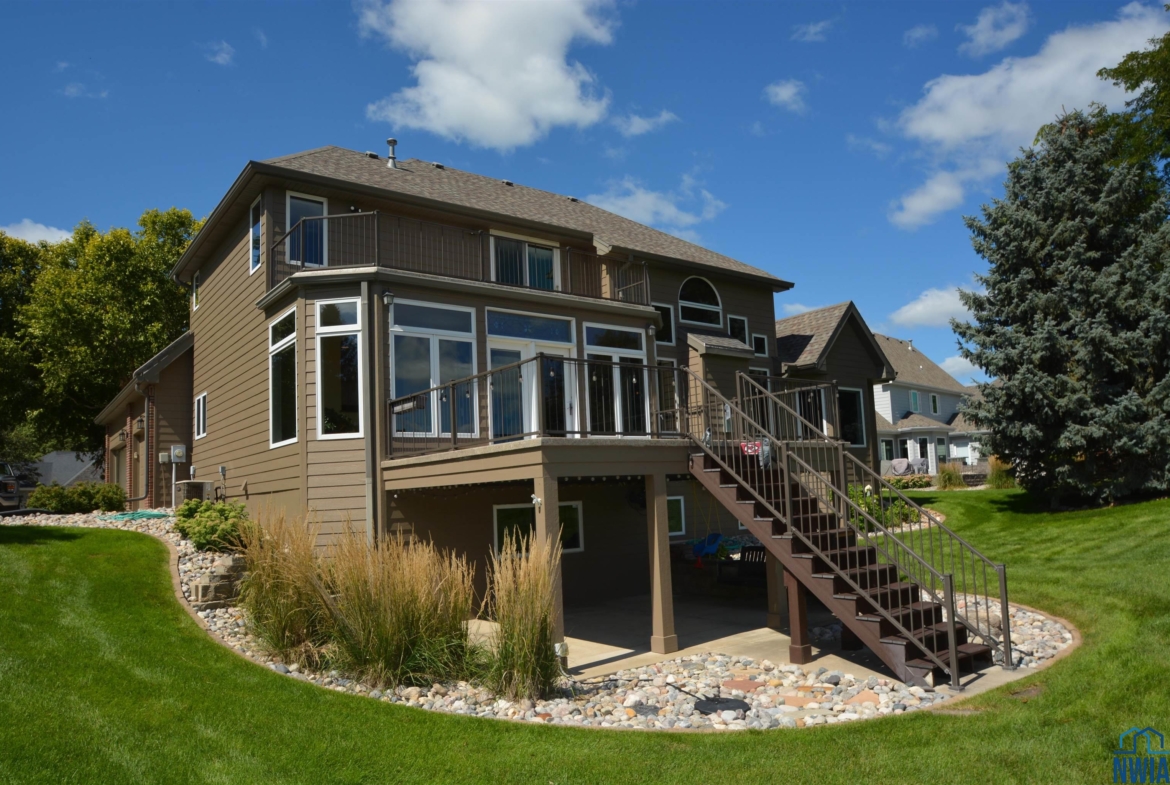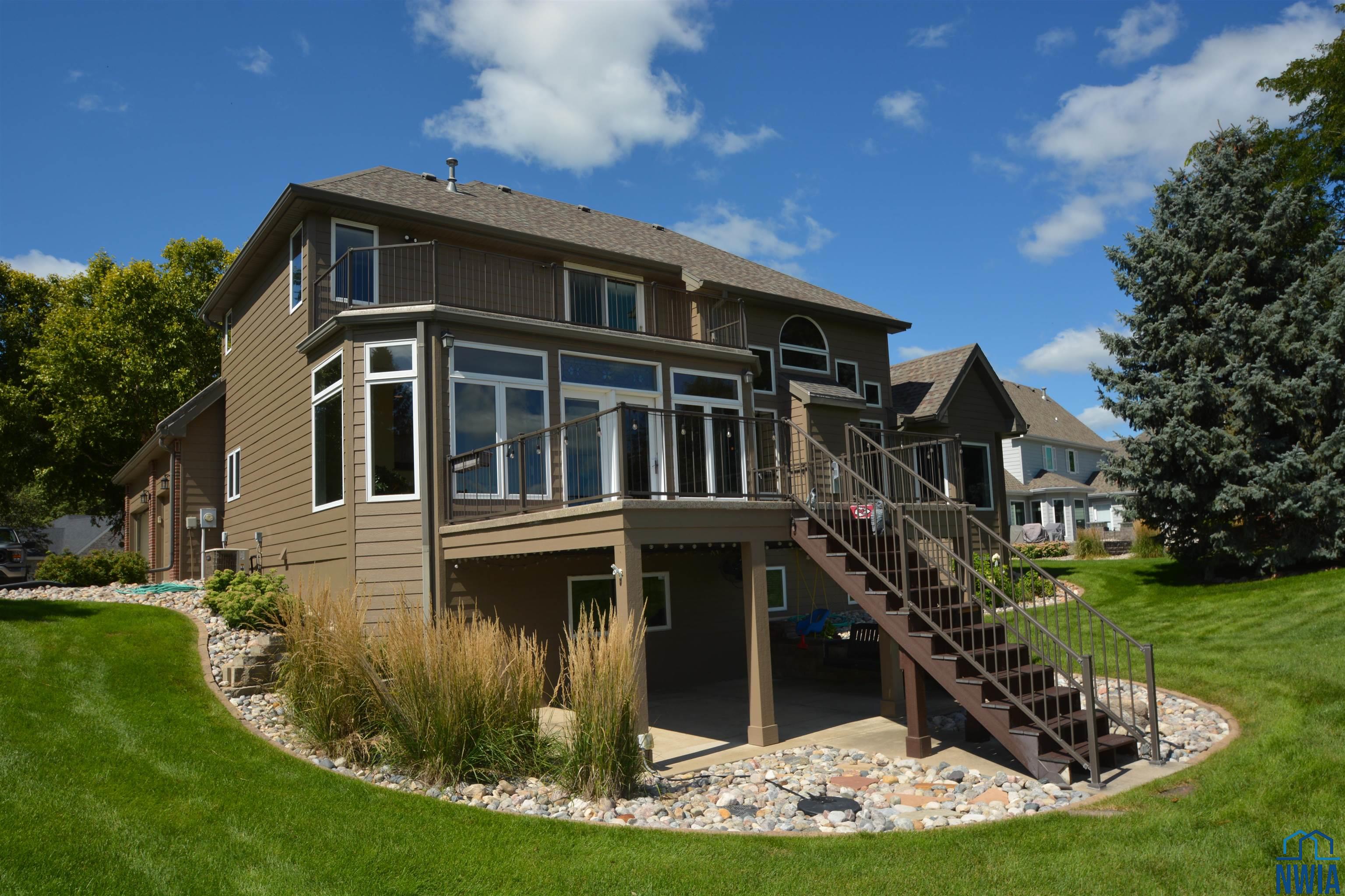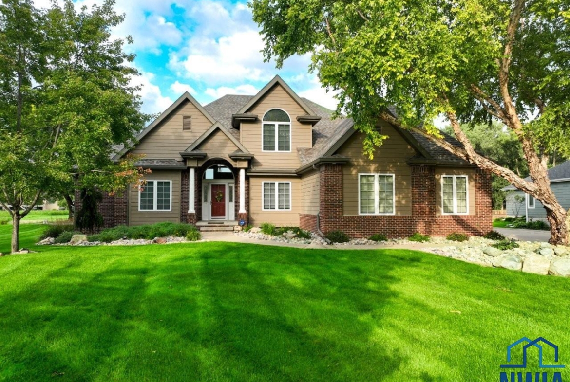 Stunning Golf Course Home with Panoramic Views. Enjoy sweeping views of the Dakota Dunes Golf Course, pond, bridge, and #5 green from this exceptional home on a private 1/3-acre lot. The 2023 updates kitchen boasts a walk-in pantry, crown molding, granite counters, tile backsplash, center island. The sunroom features lead-glass accents, filling the space with character and natural light with patio door to the deck. Upstairs, two bedrooms share a Jack & Jill bath, just off the loft office with access to a sundeck overlooking the course and pond. The spacious basement family room offers a wet bar, crown molding, built-in entertainment center and rope lighting in the tray ceiling. Recent upgrades include concrete decks (2015), siding (2016), 50 yr roof (2018), master bath (2021), and kitchen updates (2023). Storage is abundant with a full lower-level storage area plus a bonus storage room above the garage.