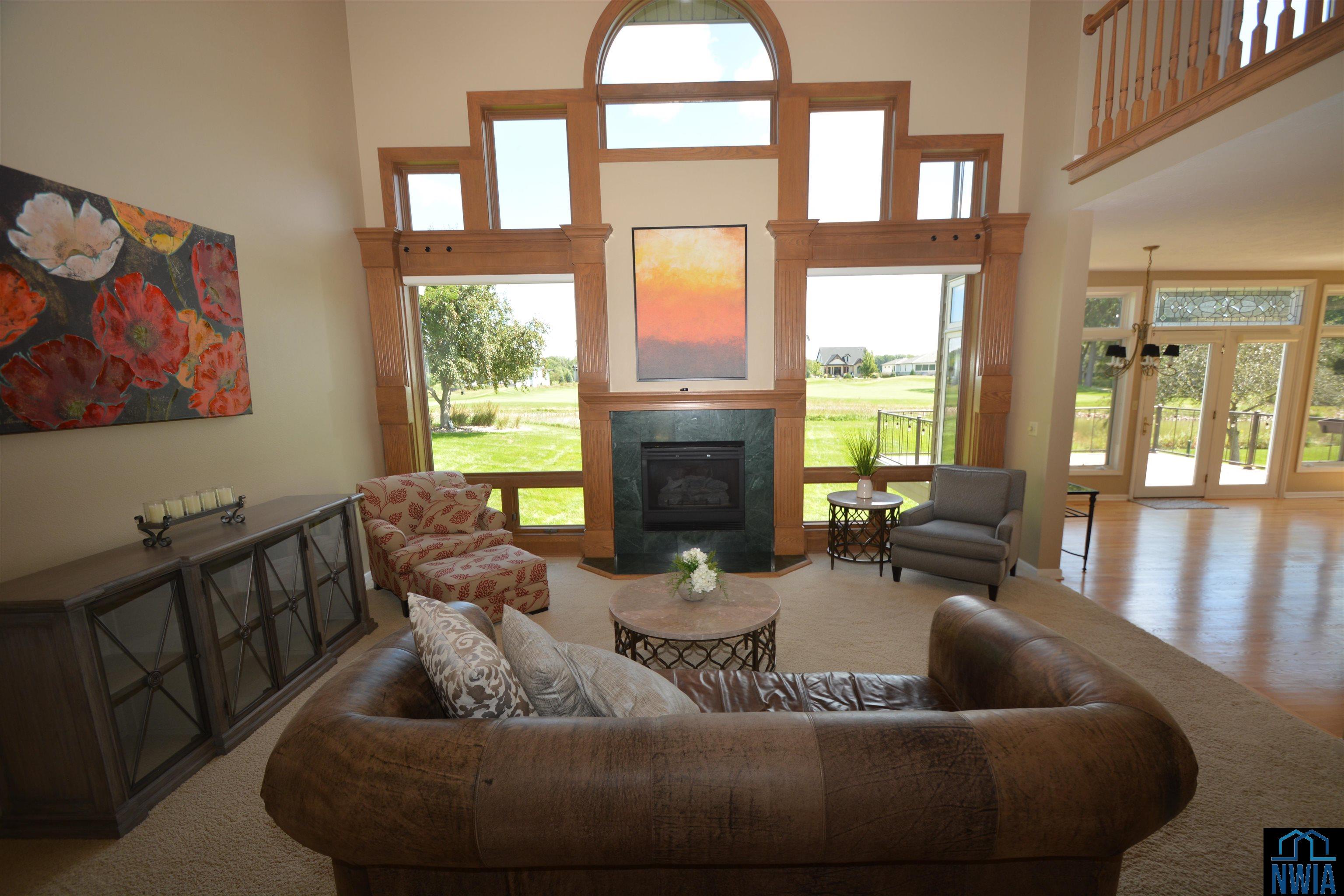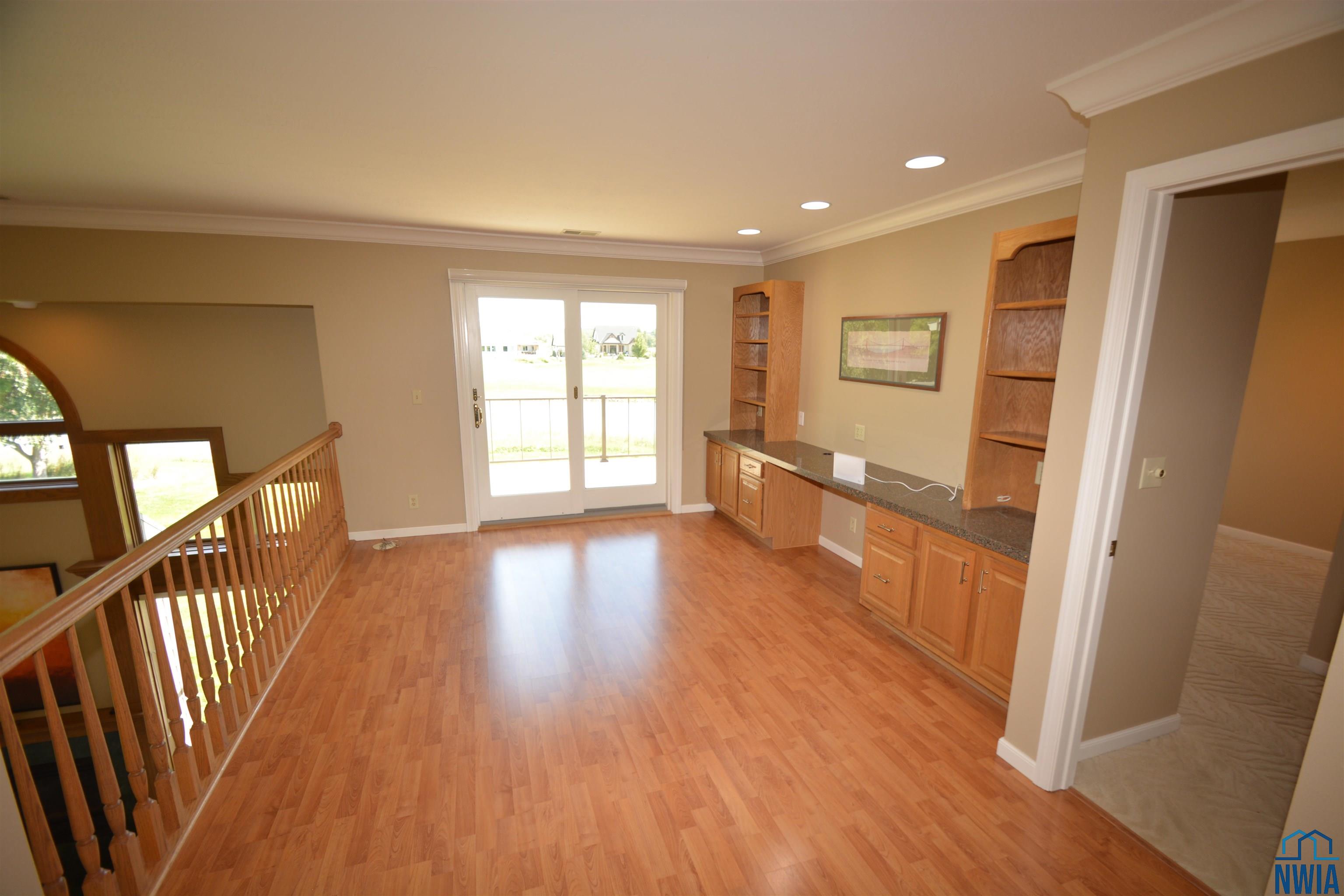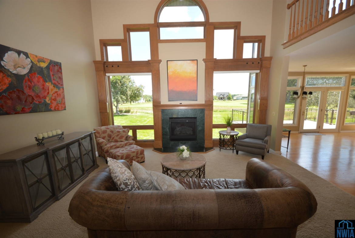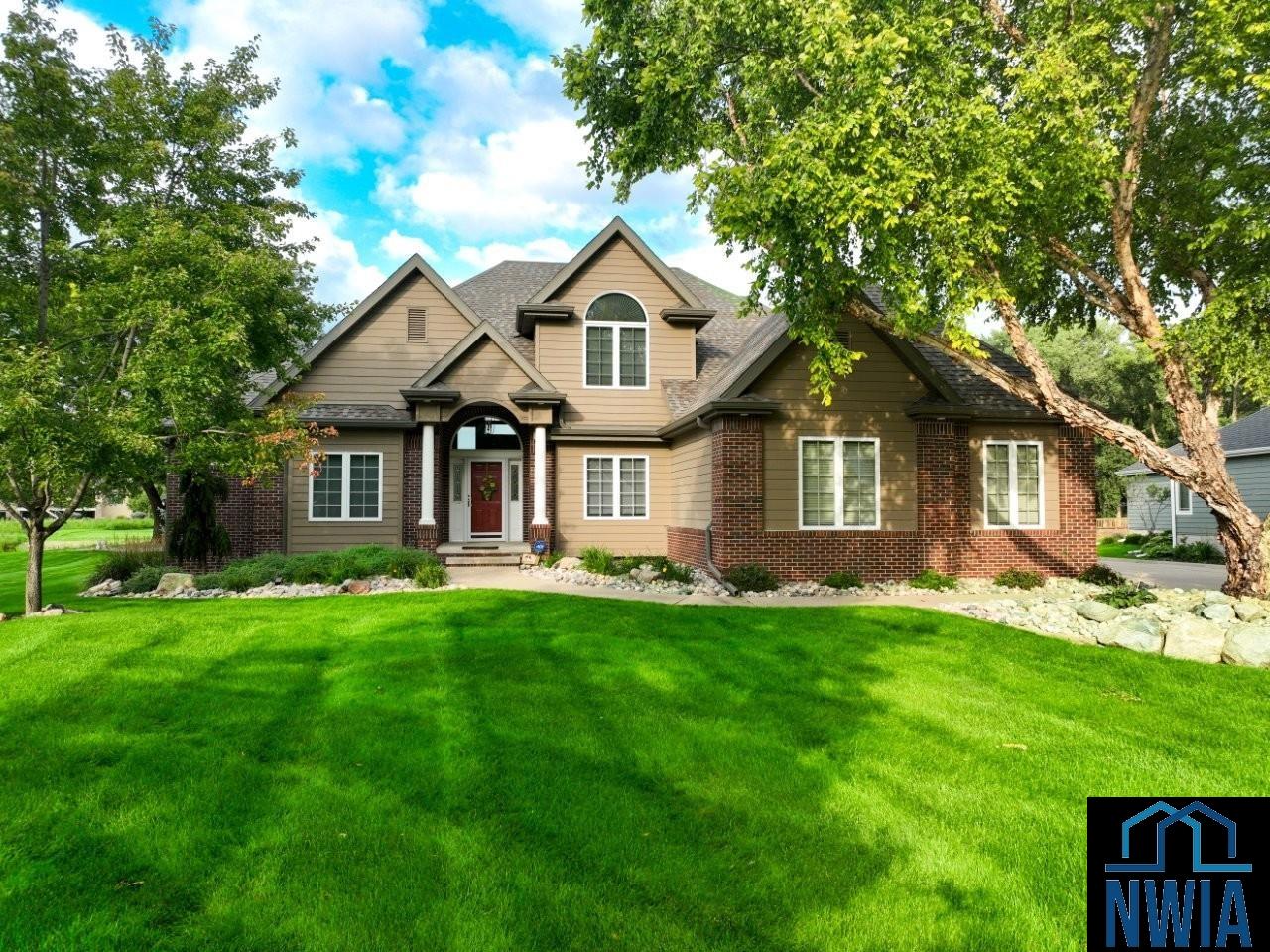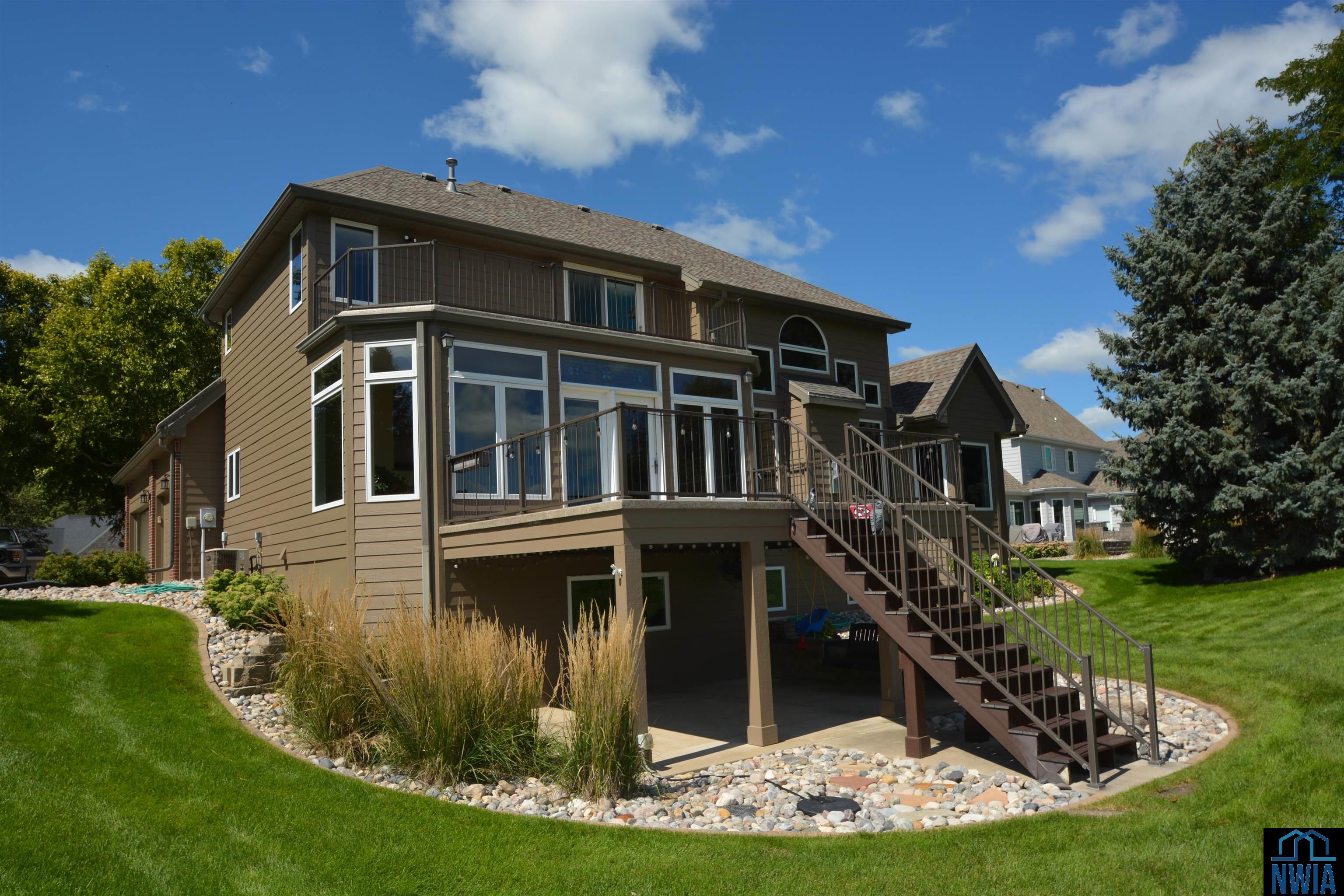 Stunning Golf Course Home with Panoramic Views. Enjoy sweeping views of the Dakota Dunes Golf Course, pond, bridge, and #5 green from this exceptional home on a private 1/3-acre lot. The 2023 updates kitchen boasts a walk-in pantry, crown molding, granite counters, tile backsplash, center island. The sunroom features lead-glass accents, filling the space with character and natural light with patio door to the deck. Upstairs, two bedrooms share a Jack & Jill bath, just off the loft office with access to a sundeck overlooking the course and pond. The spacious basement family room offers a wet bar, crown molding, built-in entertainment center and rope lighting in the tray ceiling. Recent upgrades include concrete decks (2015), siding (2016), 50 yr roof (2018), master bath (2021), and kitchen updates (2023). Storage is abundant with a full lower-level storage area plus a bonus storage room above the garage.