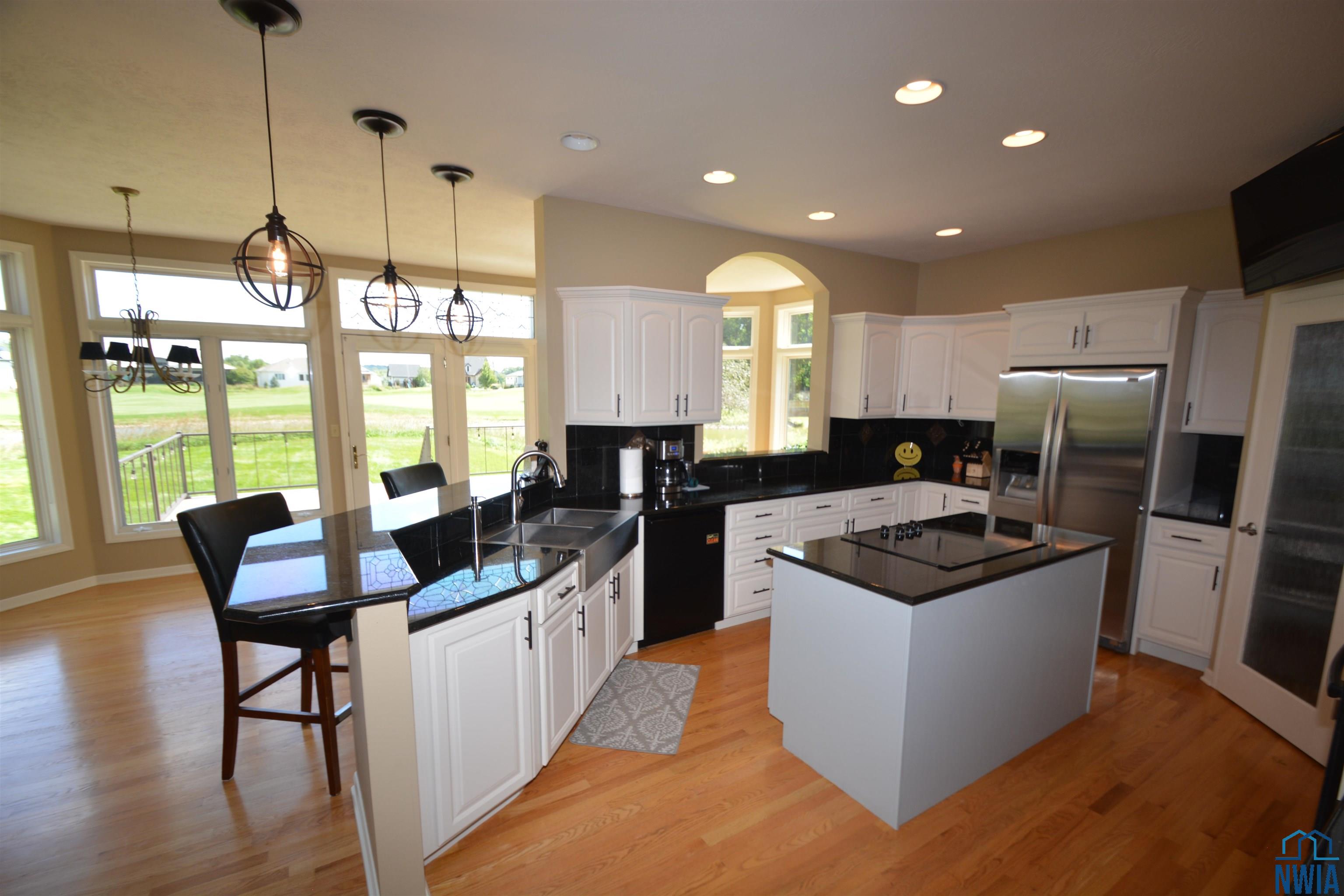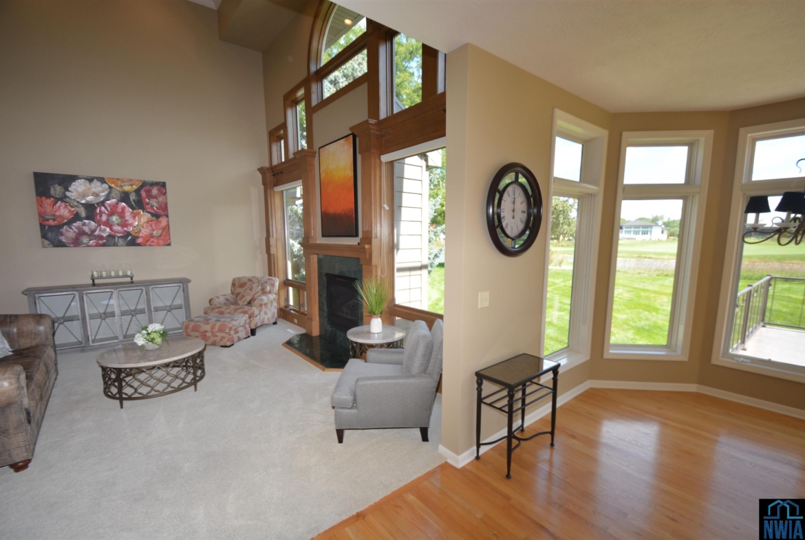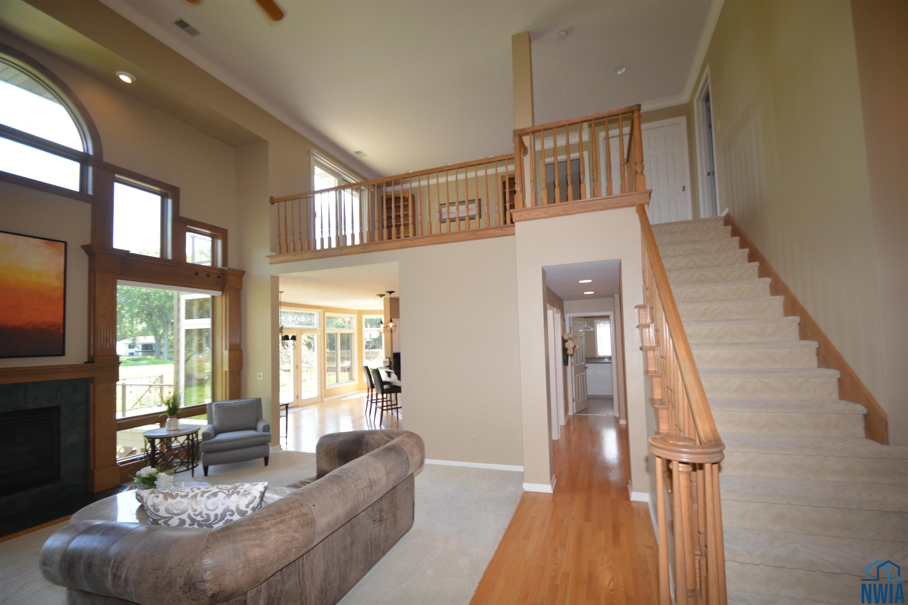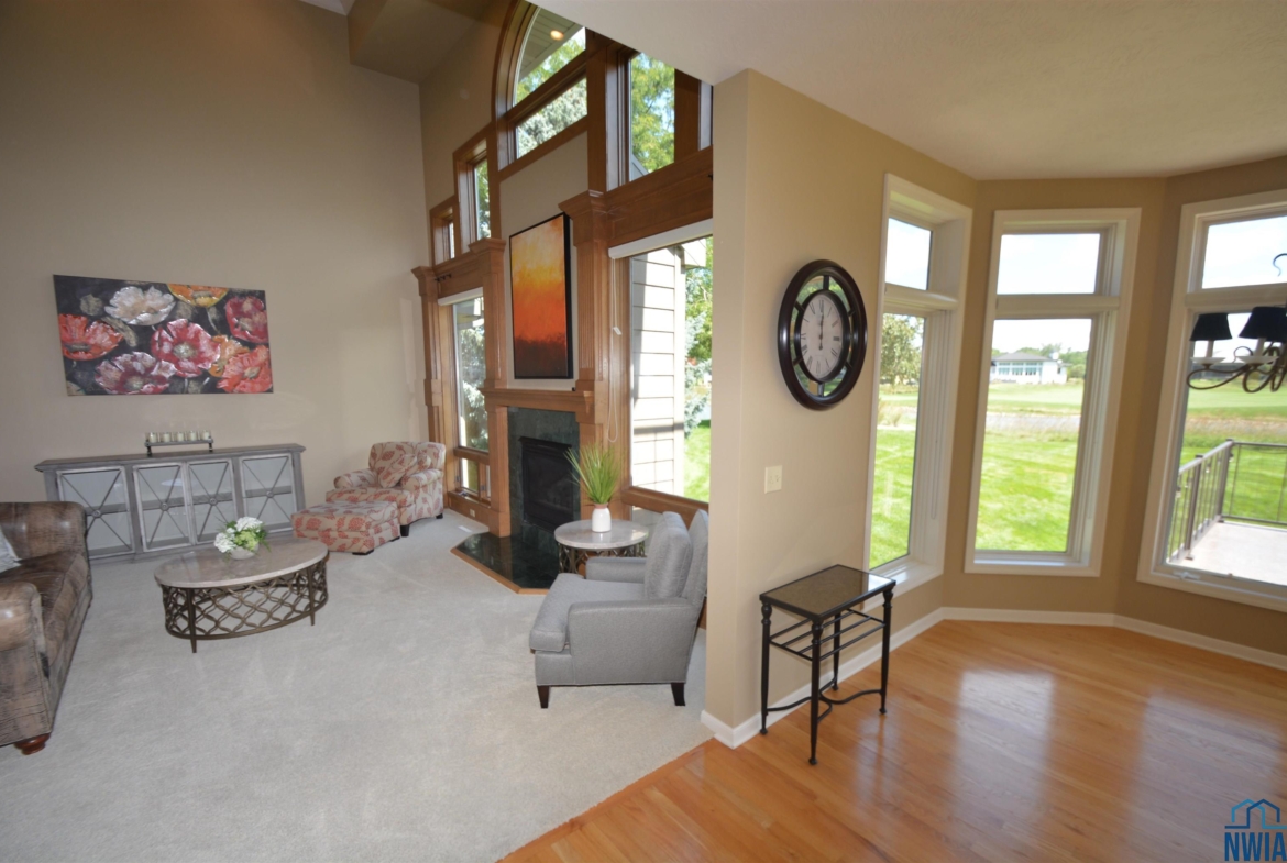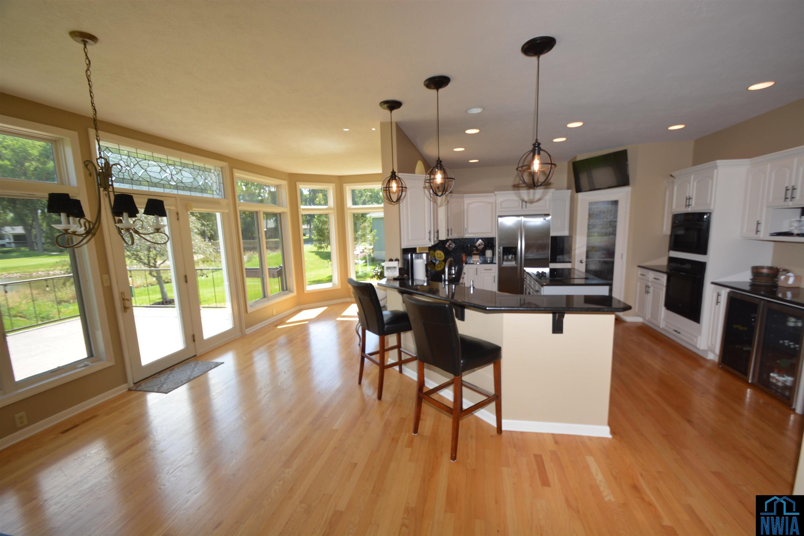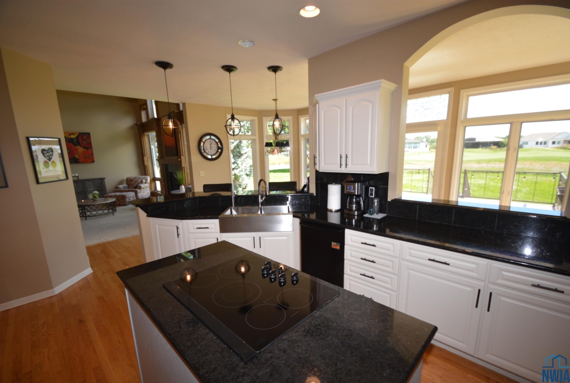 Stunning Golf Course Home with Panoramic Views. Enjoy sweeping views of the Dakota Dunes Golf Course, pond, bridge, and #5 green from this exceptional home on a private 1/3-acre lot. The 2023 updates kitchen boasts a walk-in pantry, crown molding, granite counters, tile backsplash, center island. The sunroom features lead-glass accents, filling the space with character and natural light with patio door to the deck. Upstairs, two bedrooms share a Jack & Jill bath, just off the loft office with access to a sundeck overlooking the course and pond. The spacious basement family room offers a wet bar, crown molding, built-in entertainment center and rope lighting in the tray ceiling. Recent upgrades include concrete decks (2015), siding (2016), 50 yr roof (2018), master bath (2021), and kitchen updates (2023). Storage is abundant with a full lower-level storage area plus a bonus storage room above the garage.