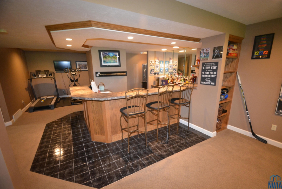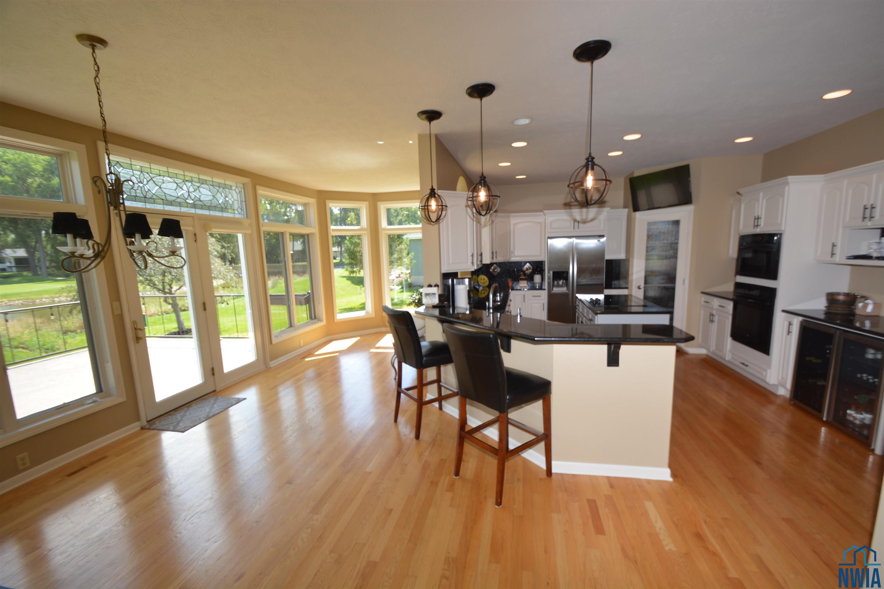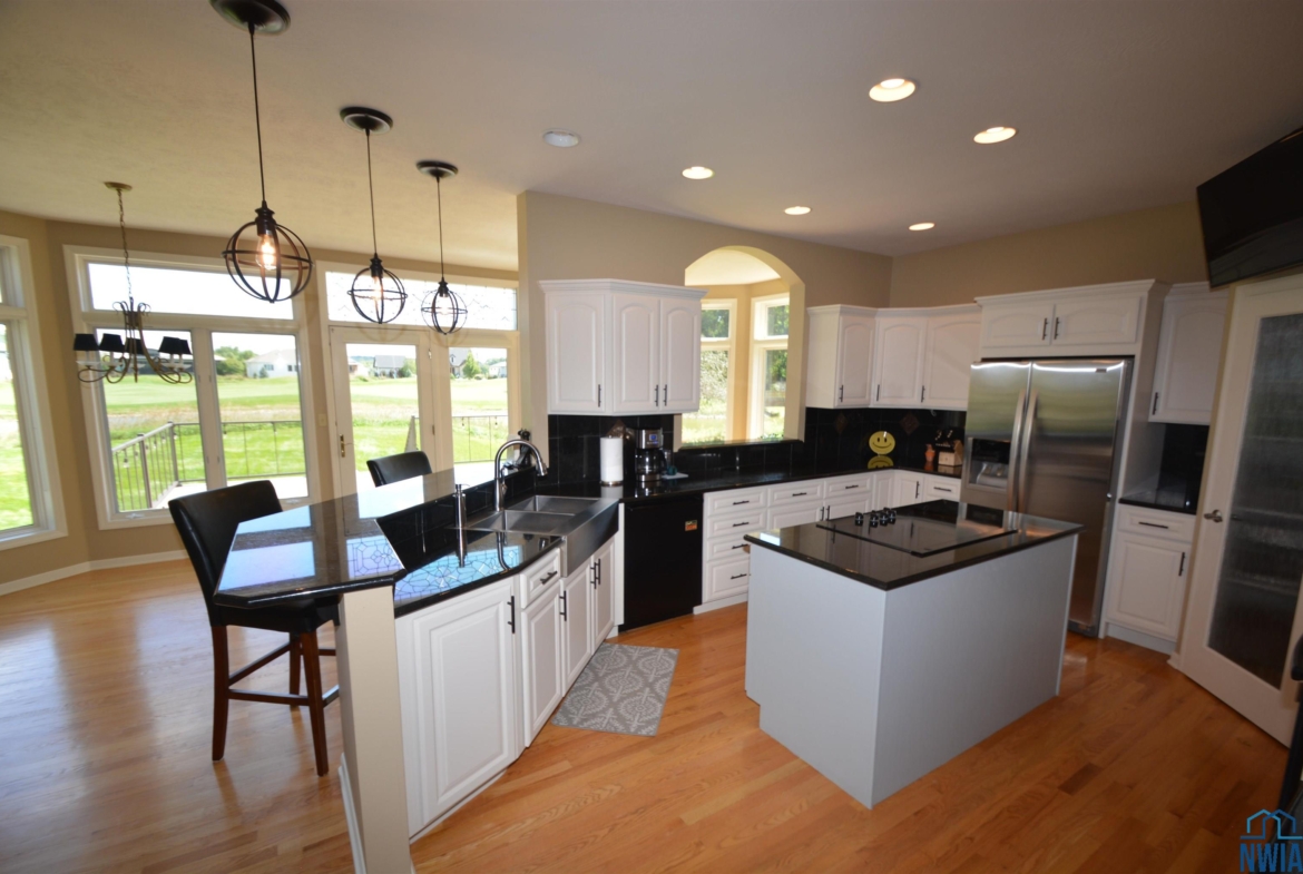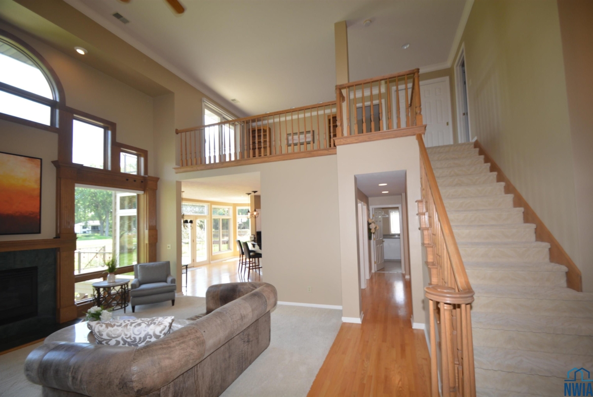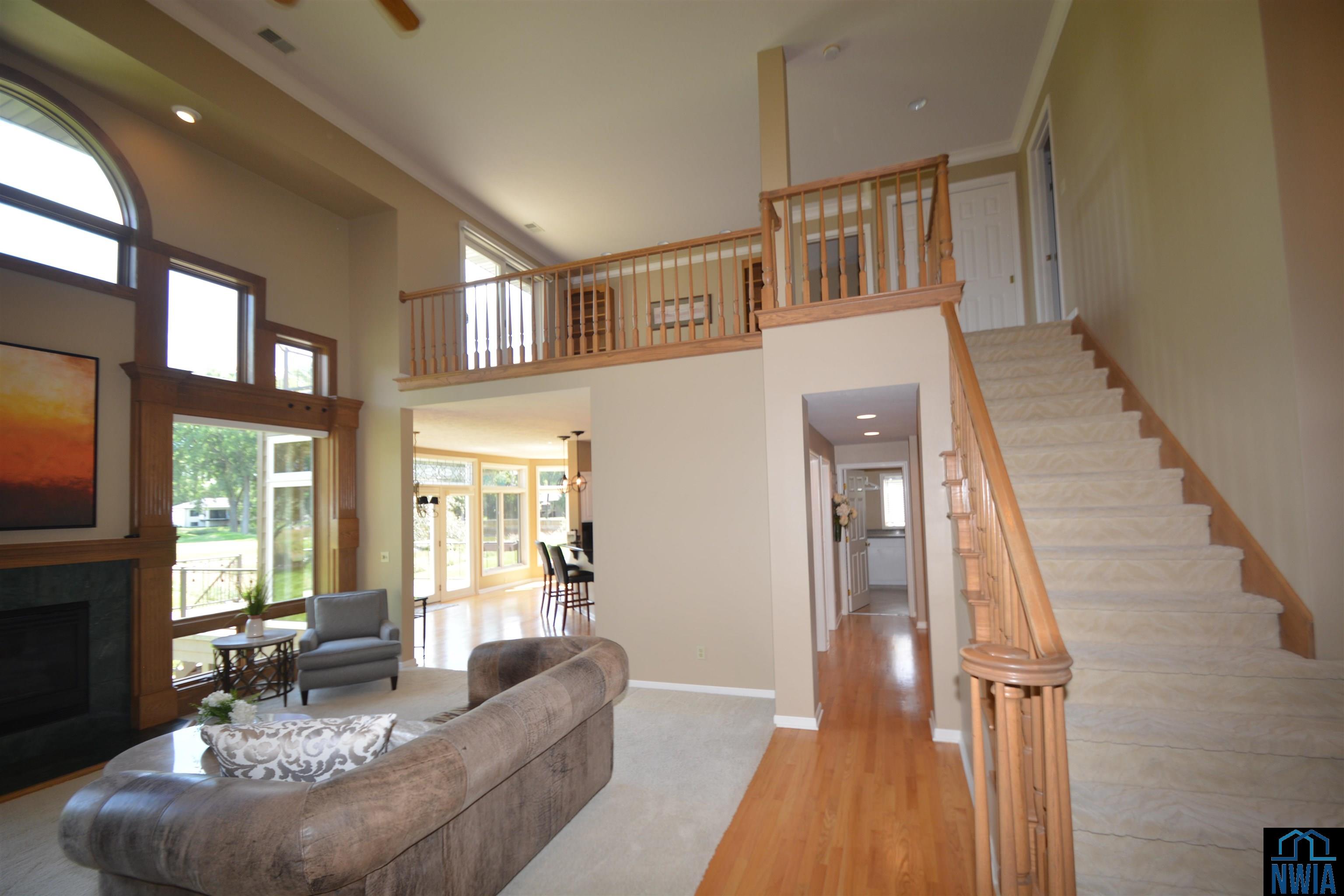 Stunning Golf Course Home with Panoramic Views. Enjoy sweeping views of the Dakota Dunes Golf Course, pond, bridge, and #5 green from this exceptional home on a private 1/3-acre lot. The 2023 updates kitchen boasts a walk-in pantry, crown molding, granite counters, tile backsplash, center island. The sunroom features lead-glass accents, filling the space with character and natural light with patio door to the deck. Upstairs, two bedrooms share a Jack & Jill bath, just off the loft office with access to a sundeck overlooking the course and pond. The spacious basement family room offers a wet bar, crown molding, built-in entertainment center and rope lighting in the tray ceiling. Recent upgrades include concrete decks (2015), siding (2016), 50 yr roof (2018), master bath (2021), and kitchen updates (2023). Storage is abundant with a full lower-level storage area plus a bonus storage room above the garage.